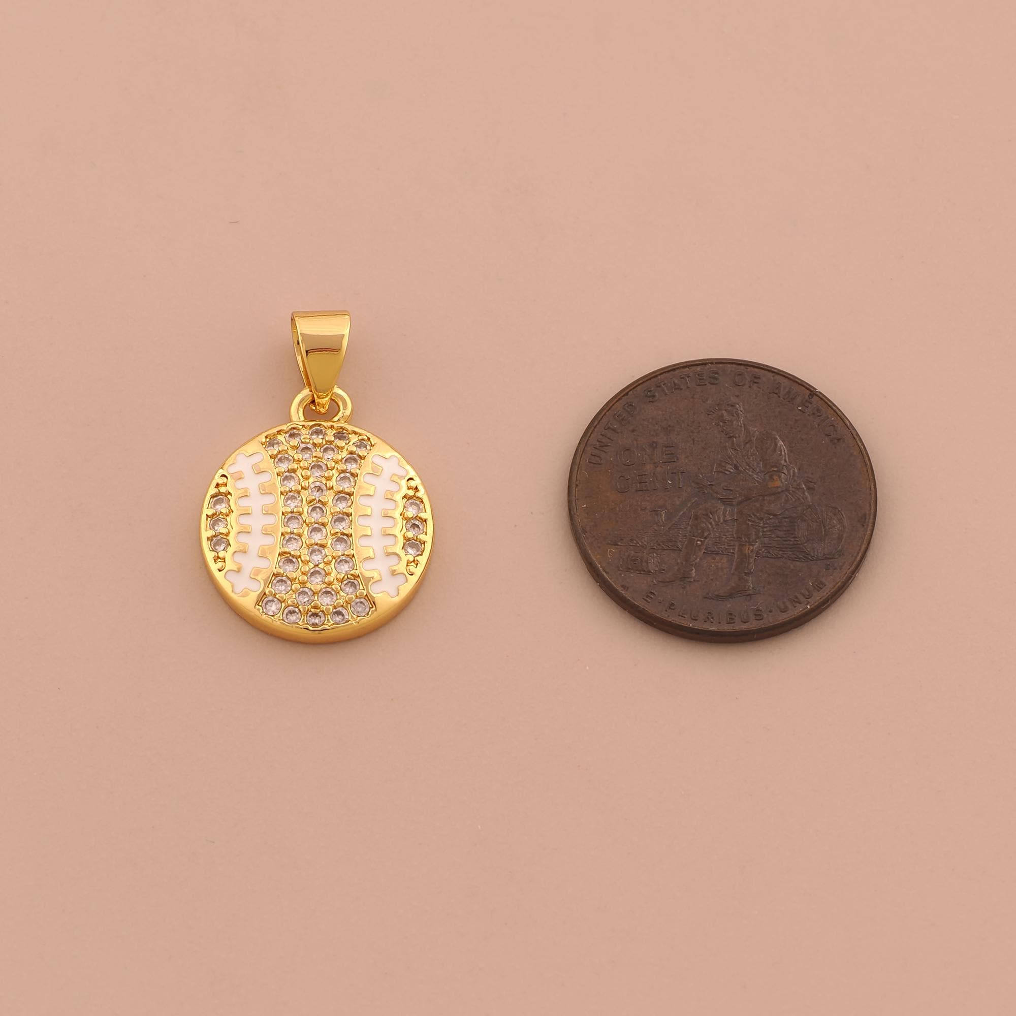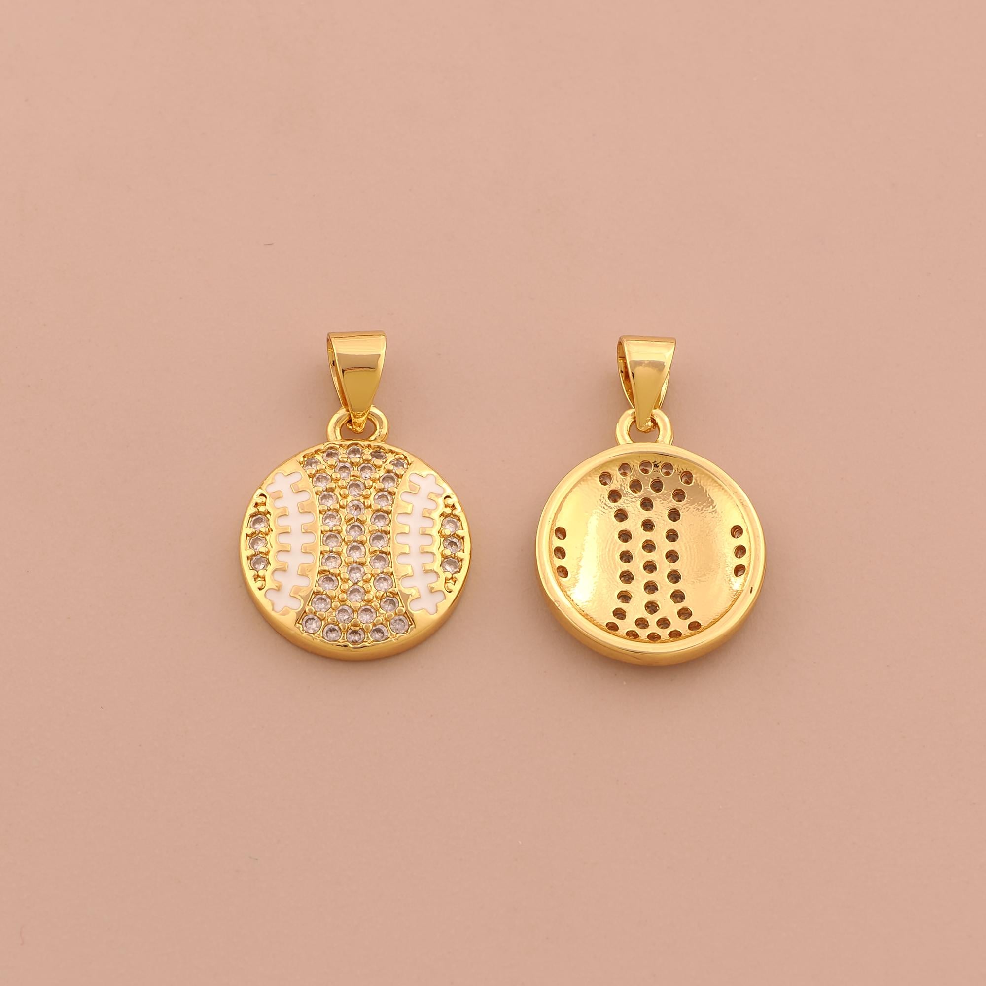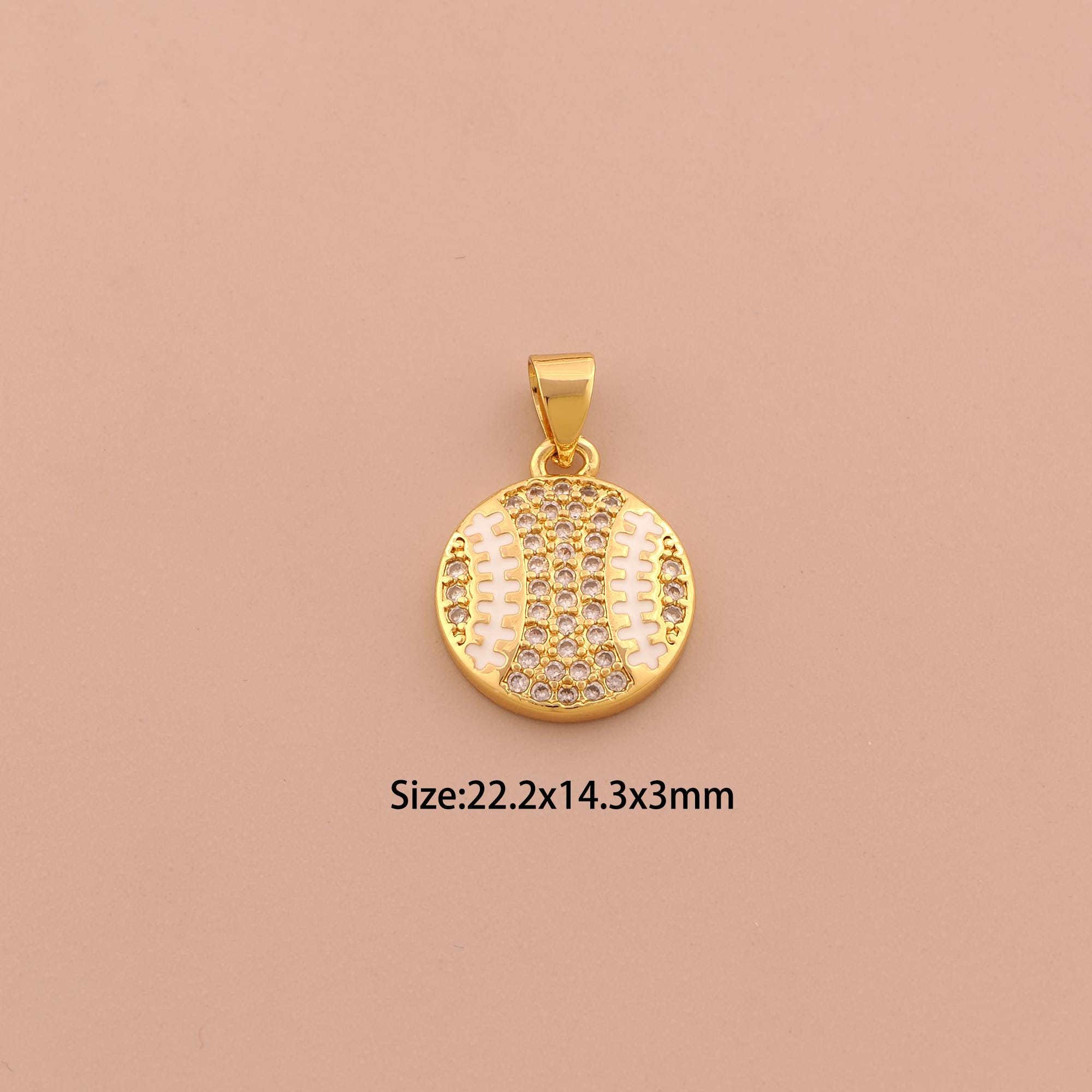 18K Gold Tennis Charms,Sports Charms Pendants,CZ Pave Round Charm for DIY Jewelry Making Supply