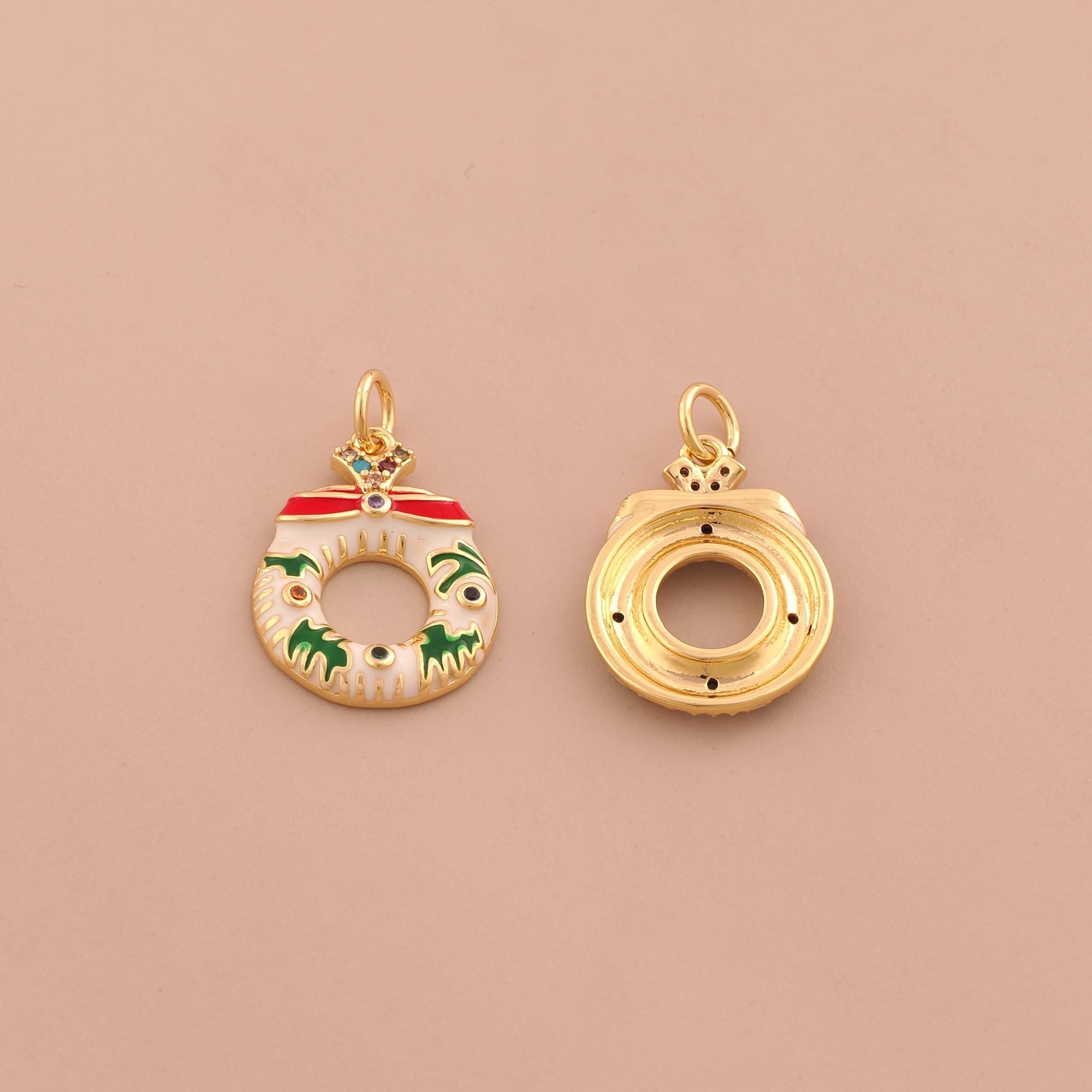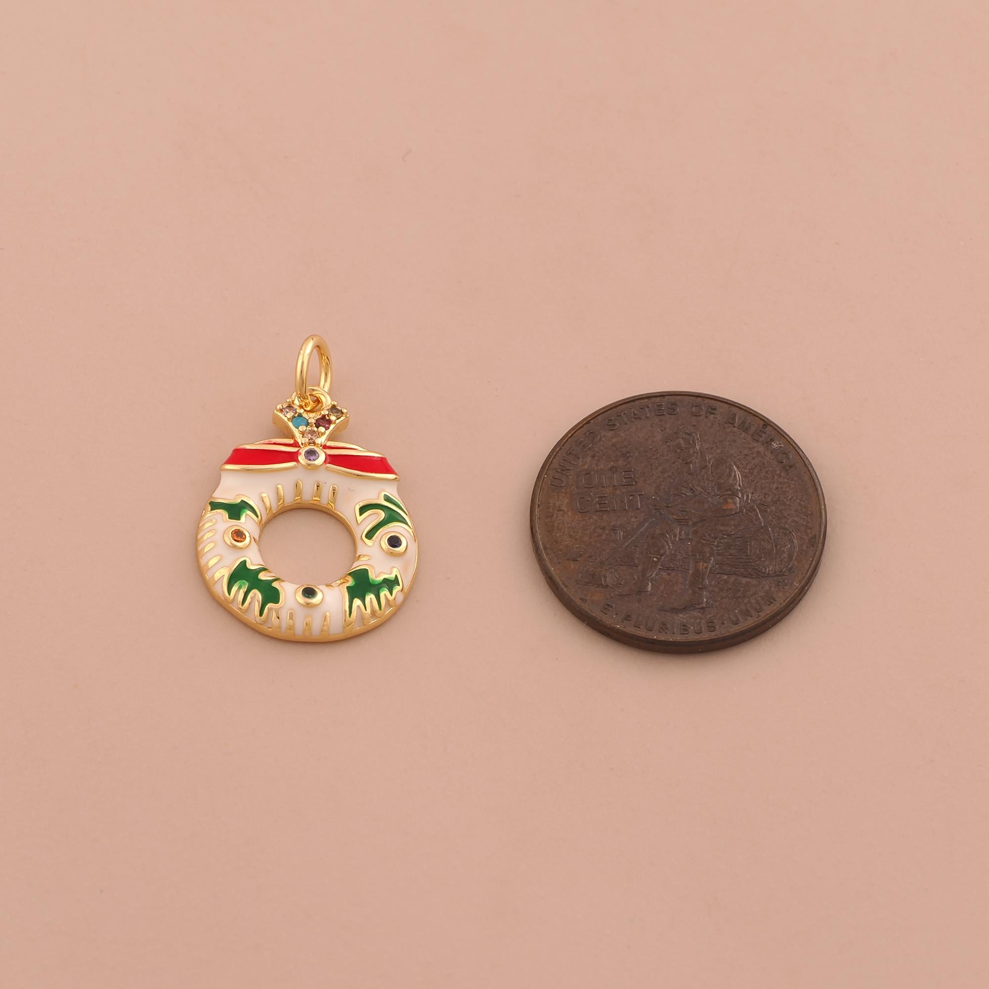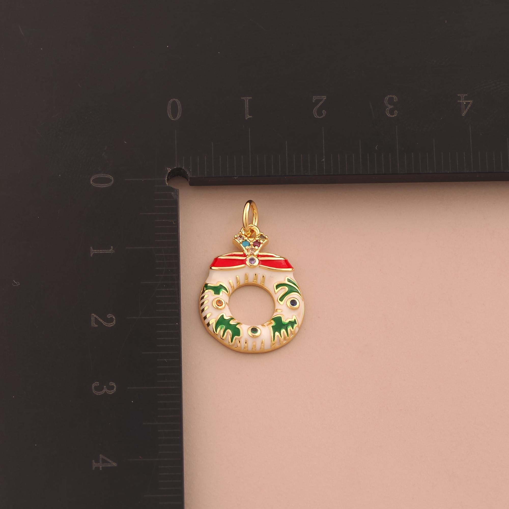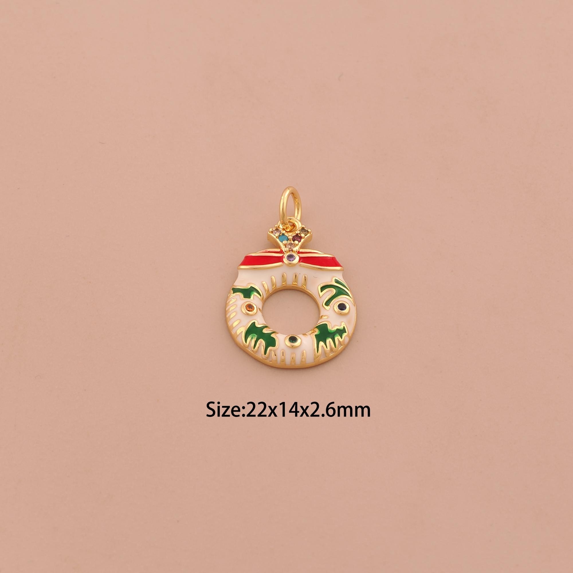 18K Gold Christmas Donut Charms,CZ Pave Christmas Charms Pendants,Enamel Donut Charm for DIY Jewelry Making Supply