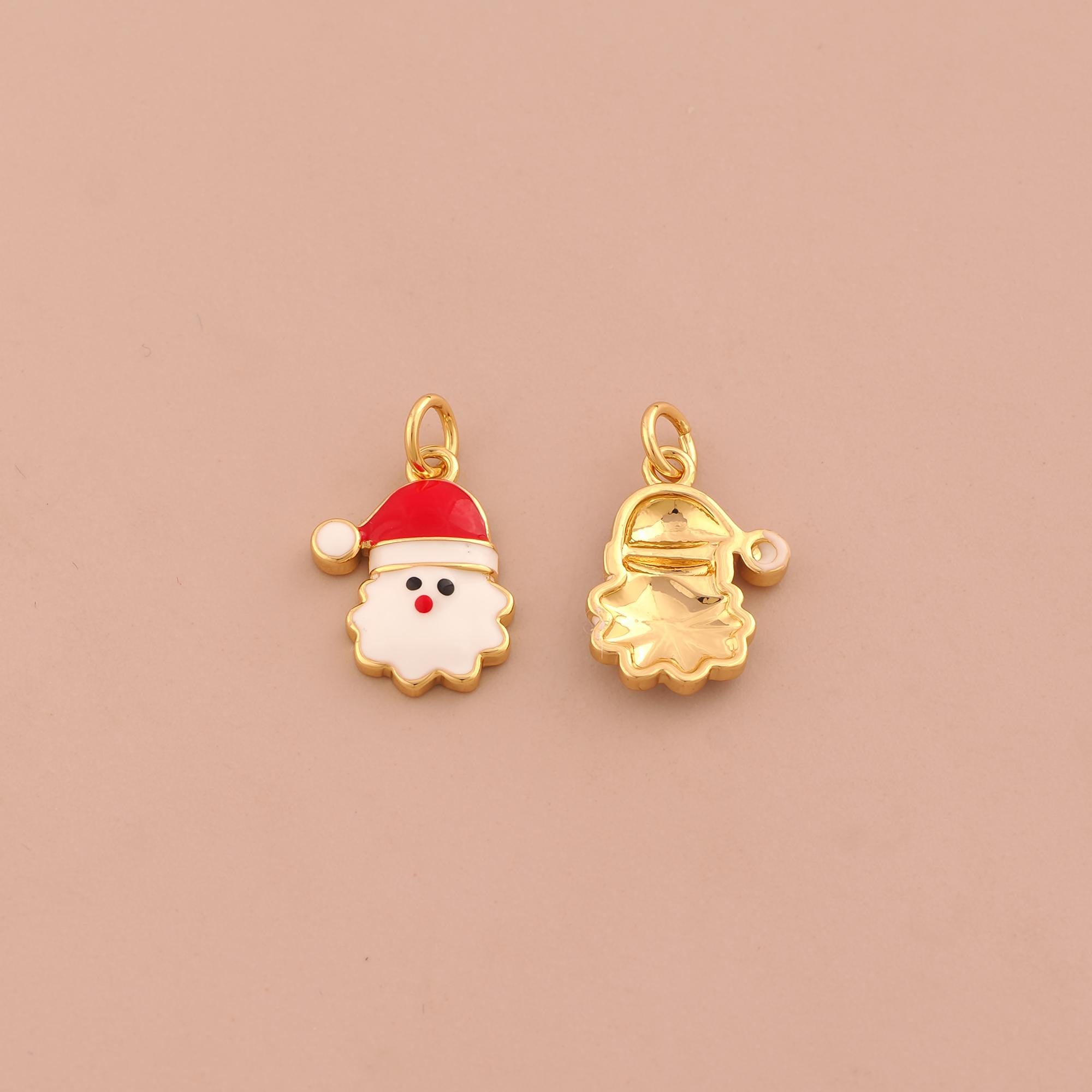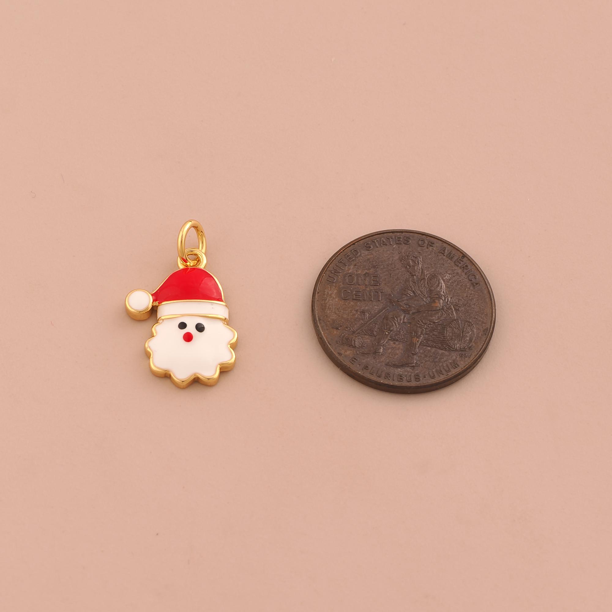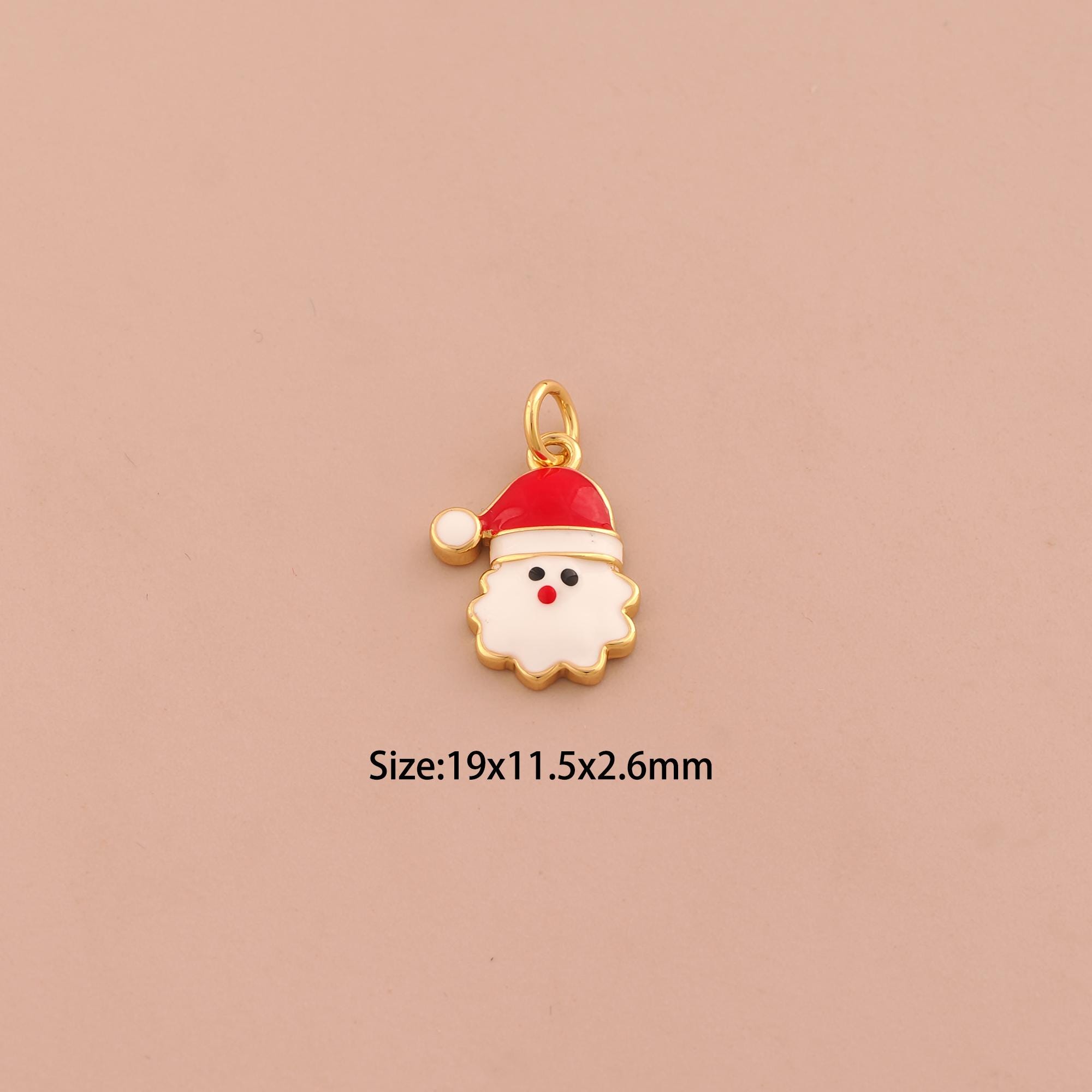 18K Gold Christmas Hat Charms,Christmas Charms Pendants,Enamel Snowman Charm for DIY Jewelry Making Supply
