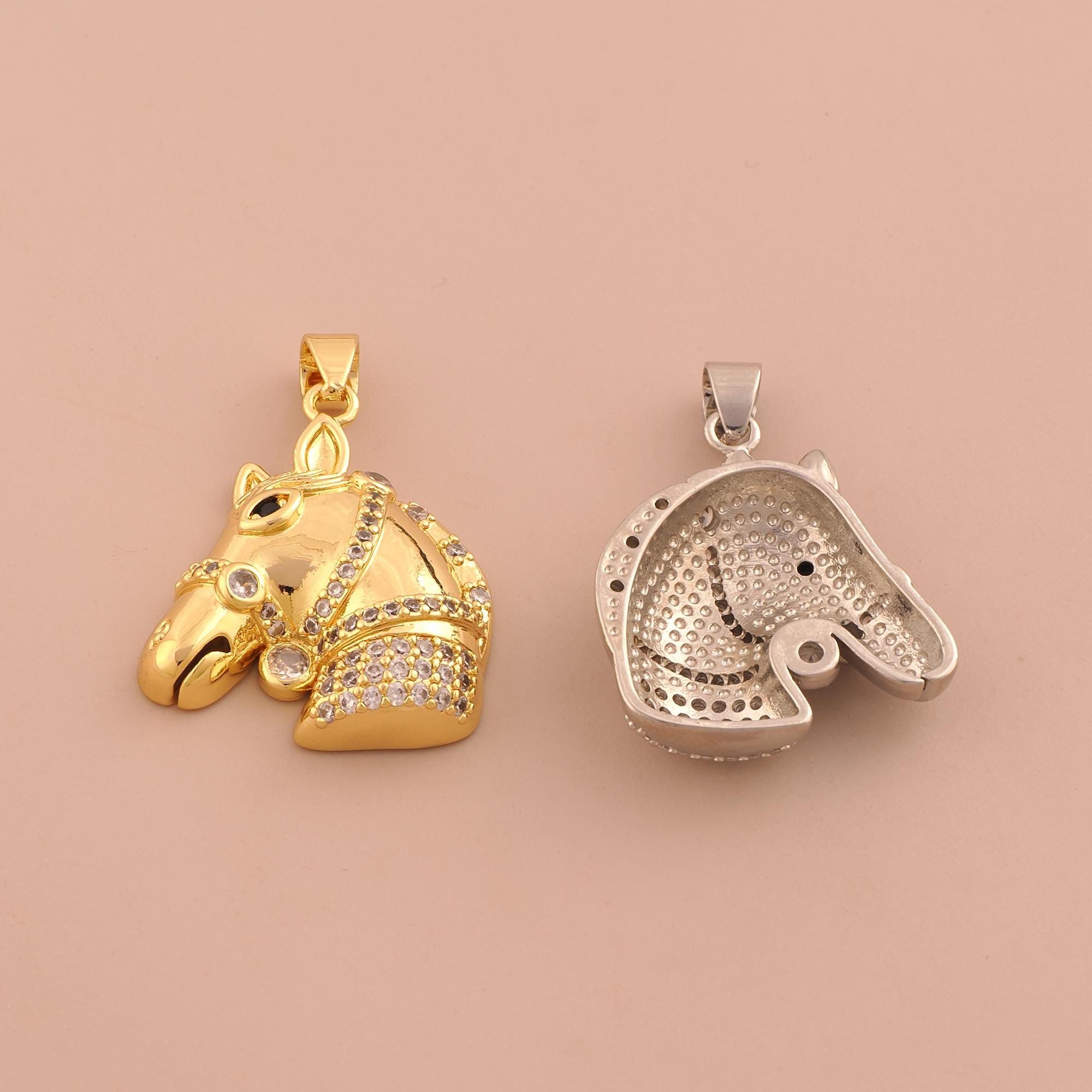 18K Gold Horse Charms,CZ Pave Animal Charms Pendants,Horse Charm for DIY Jewelry Making Supply