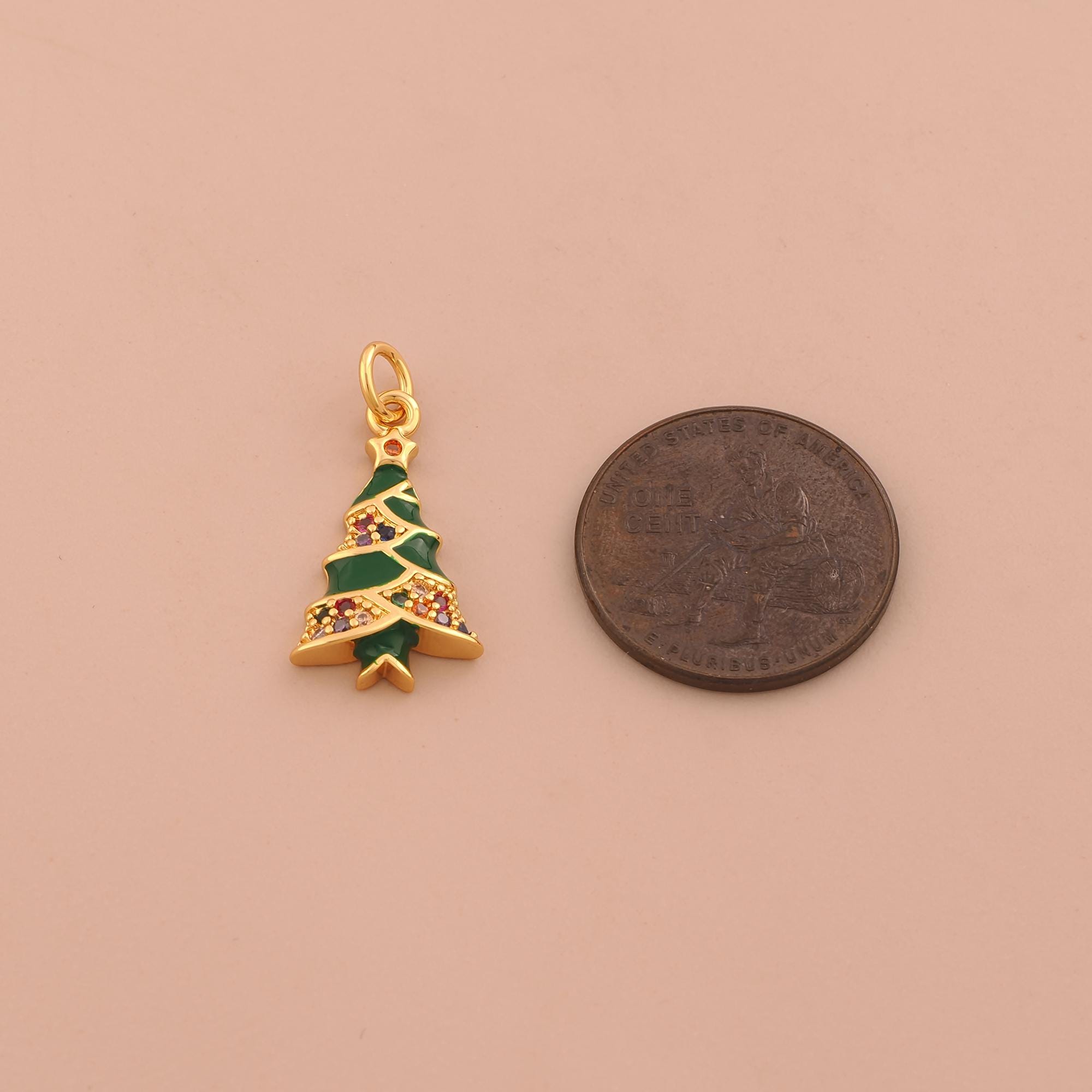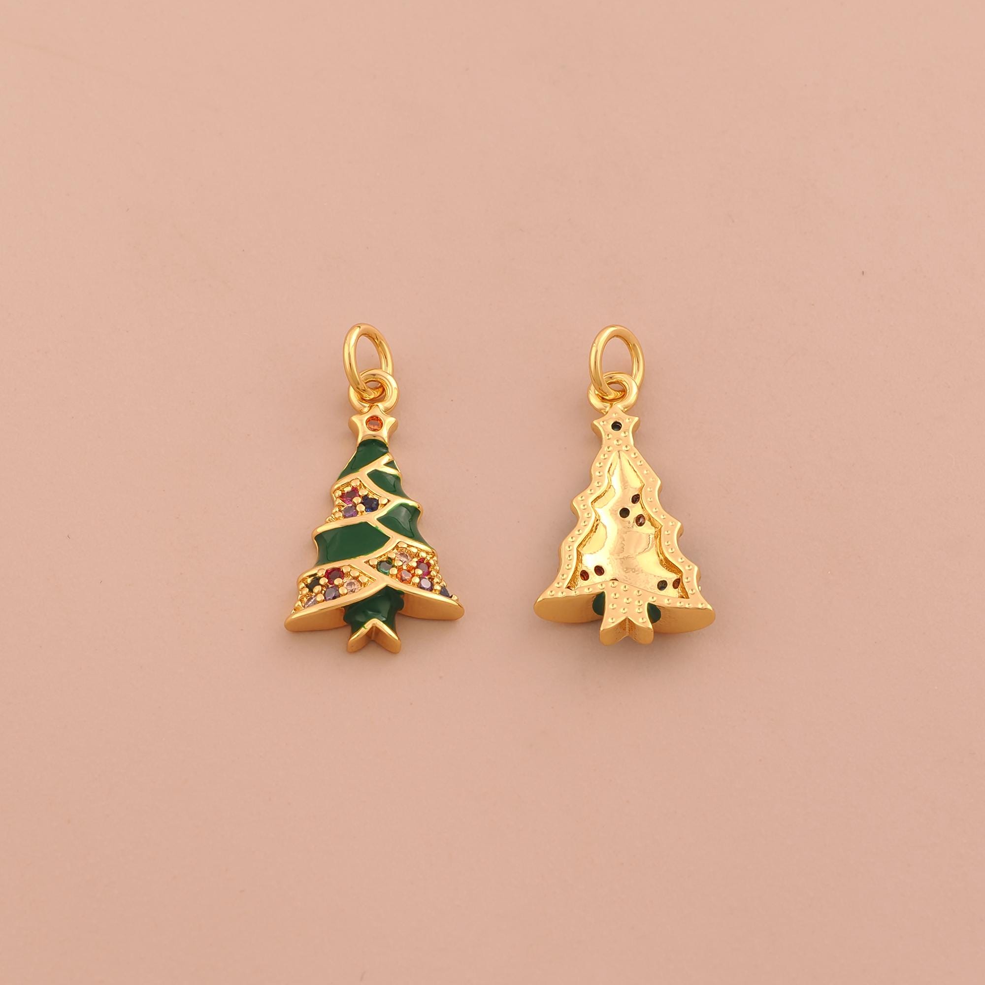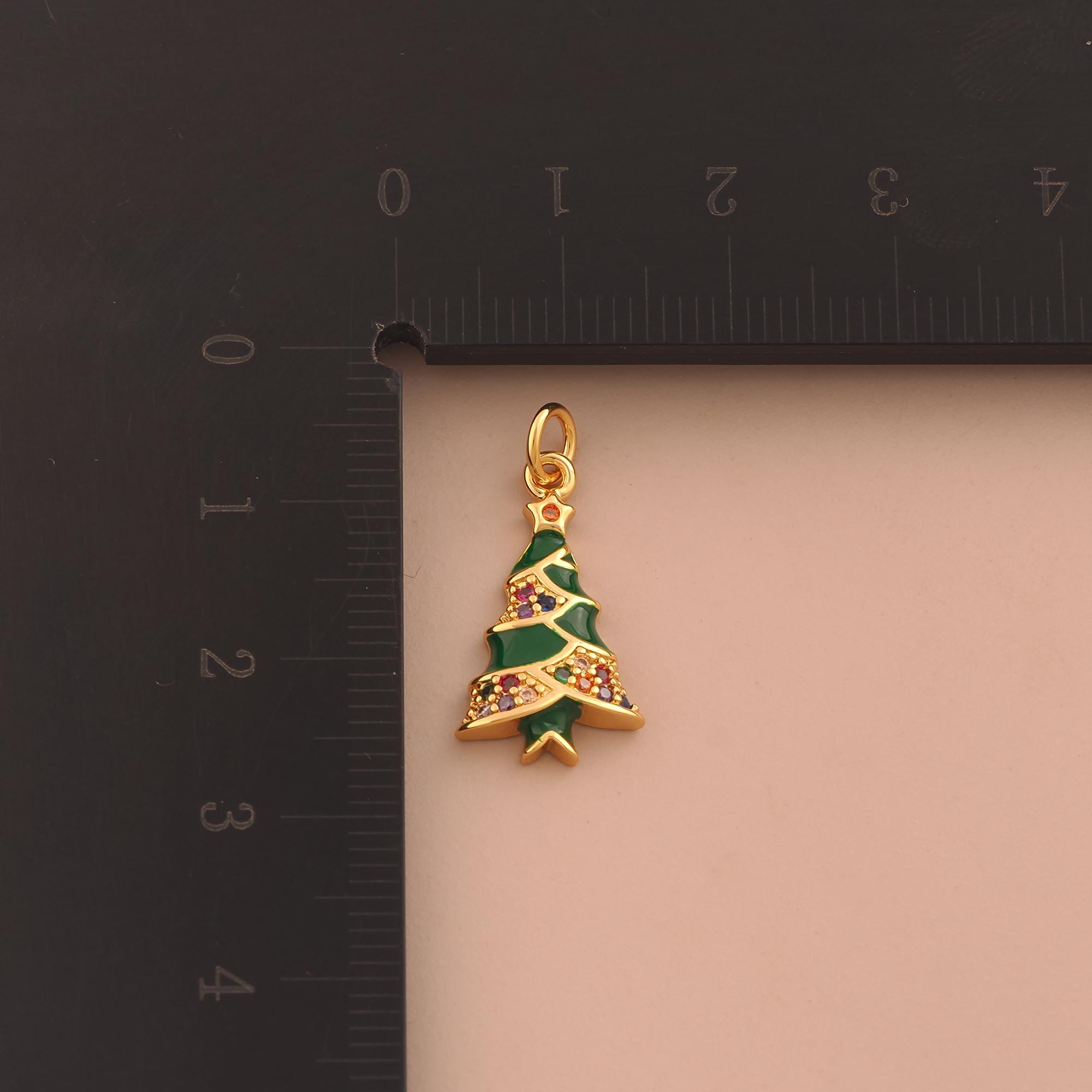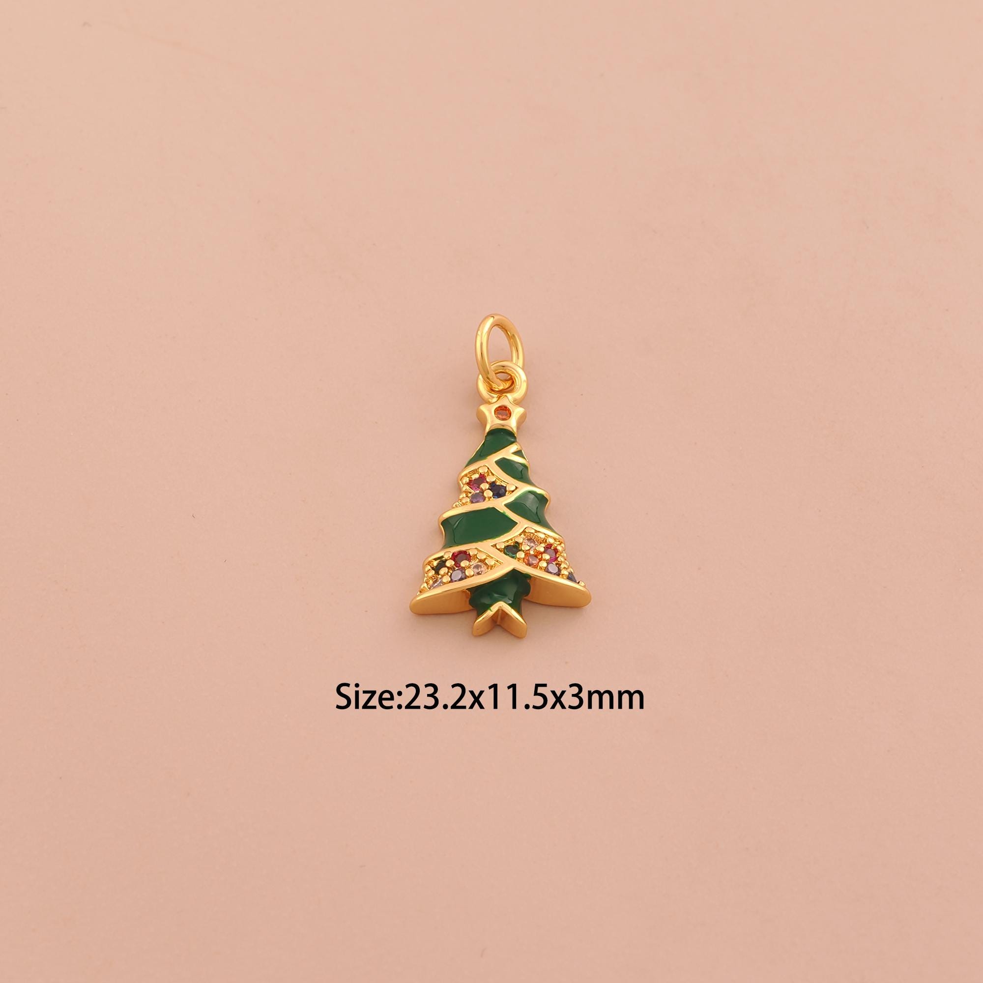 18K Gold Christmas Tree Charms,CZ Pave Christmas Charms Pendants,Enamel Tree Charm for DIY Jewelry Making Supply