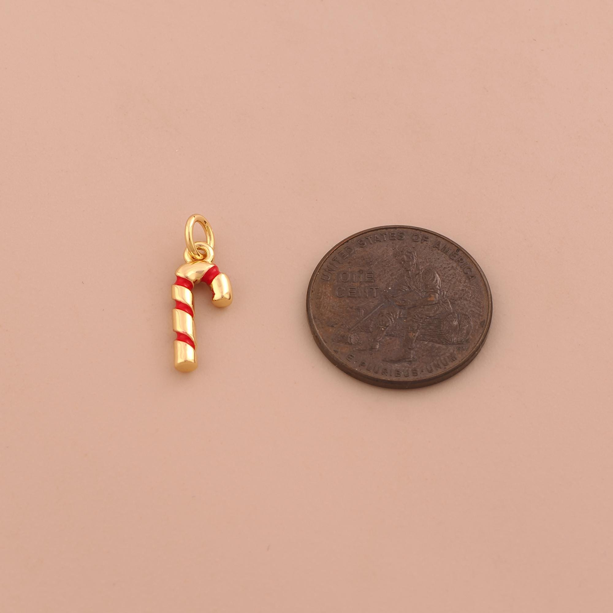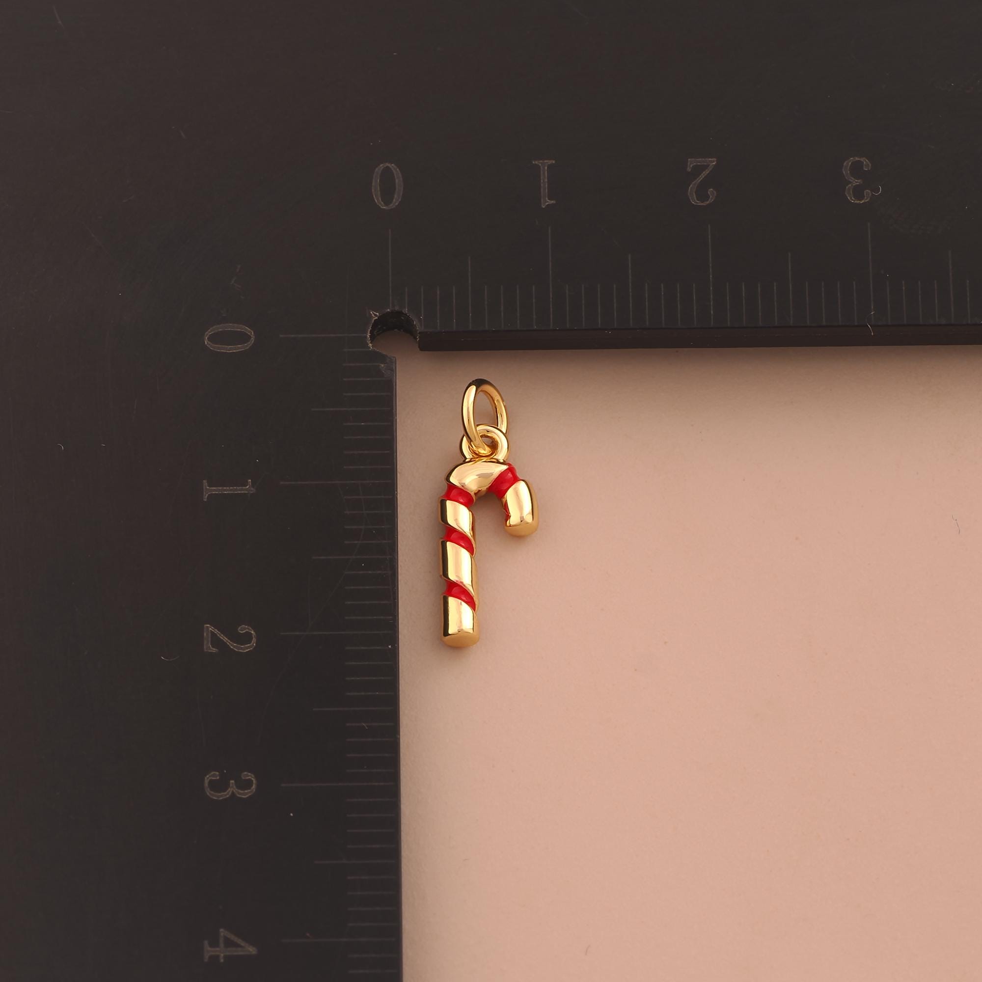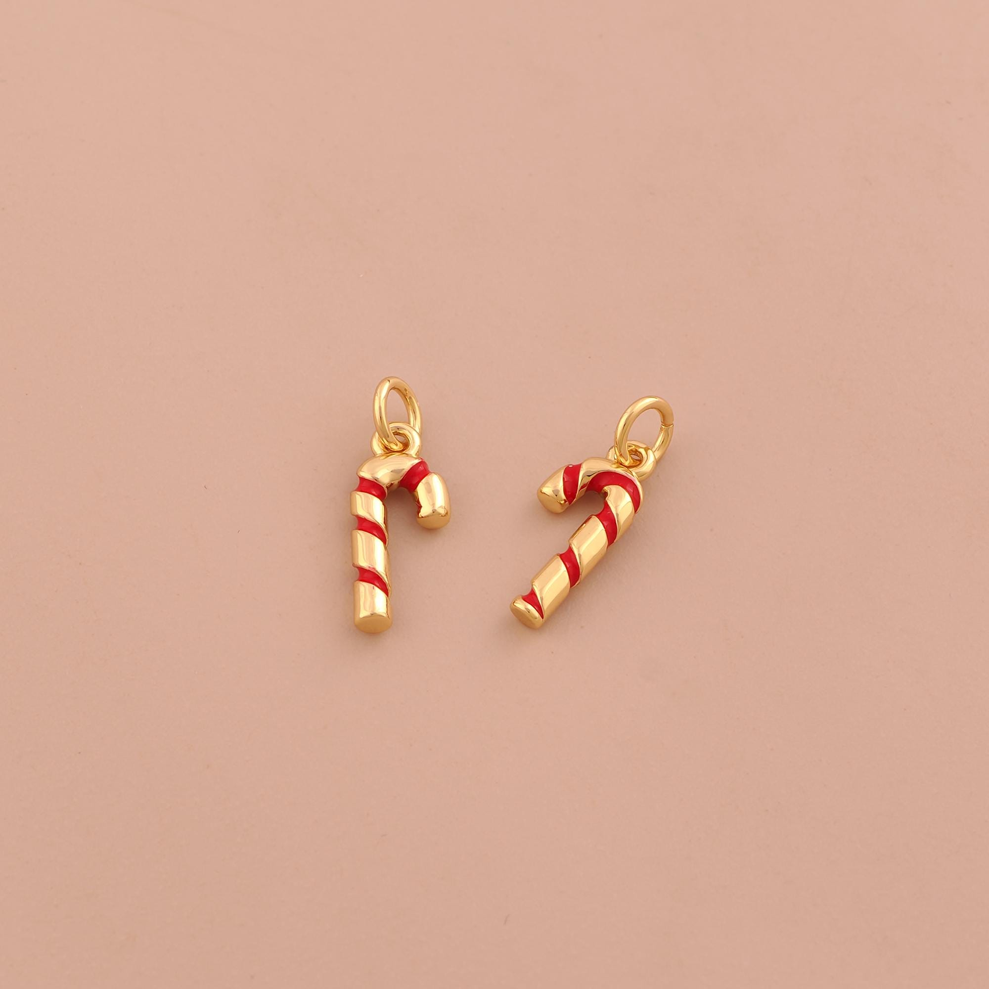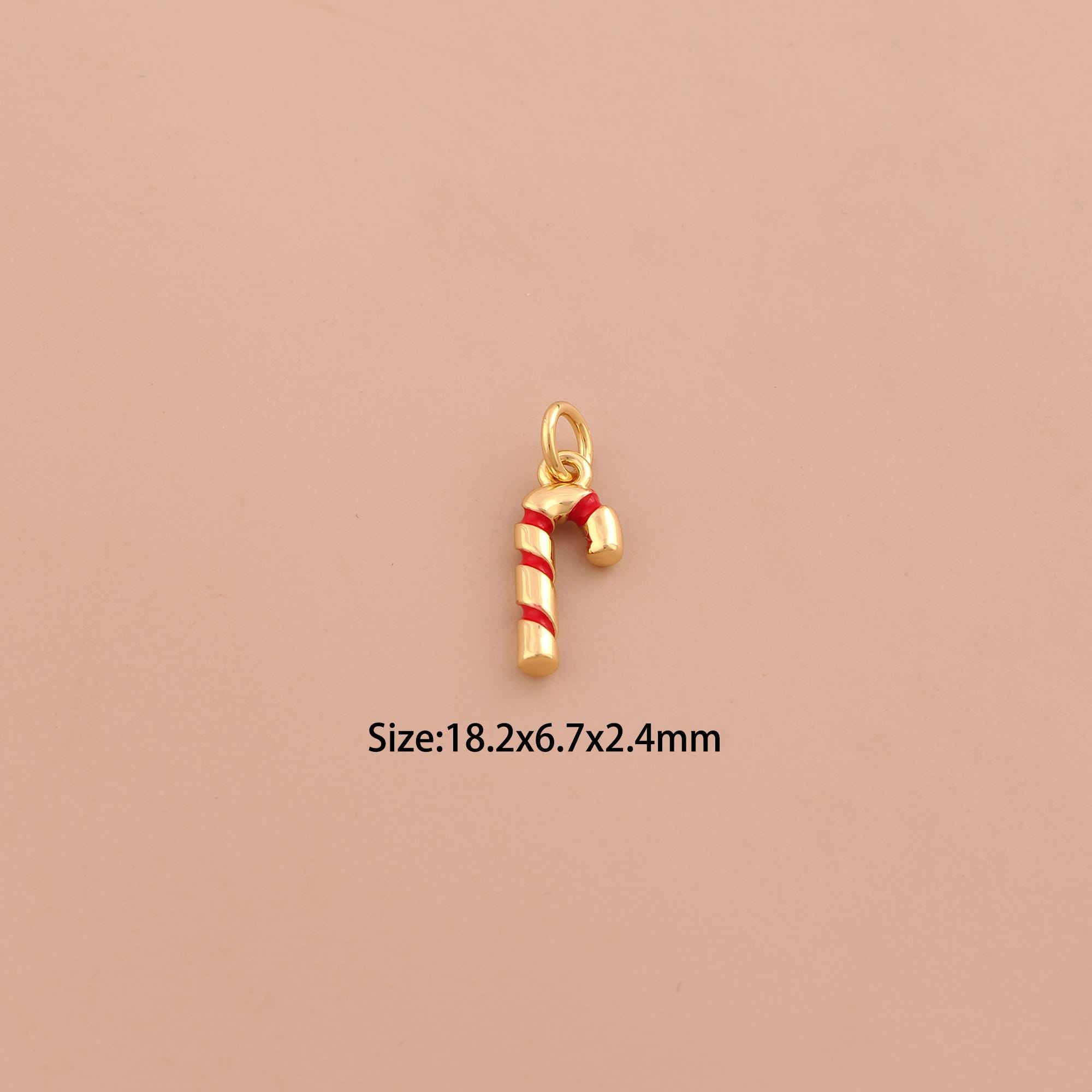 18K Gold Christmas Cane Charms,Christmas Charms Pendants,Enamel Cane Charm for DIY Jewelry Making Supply