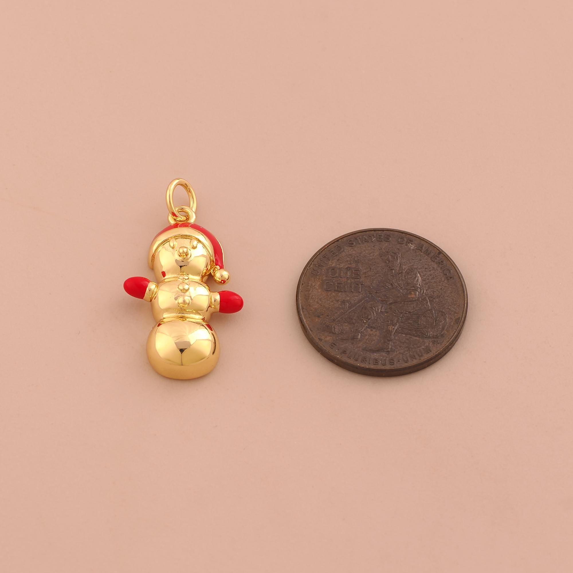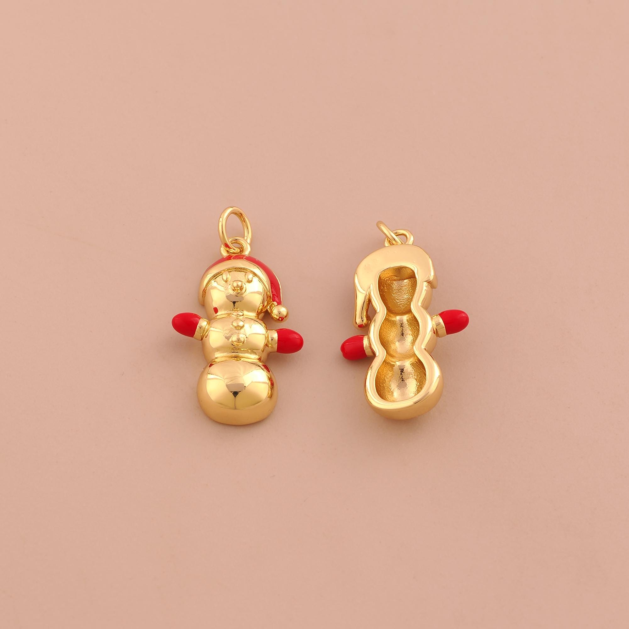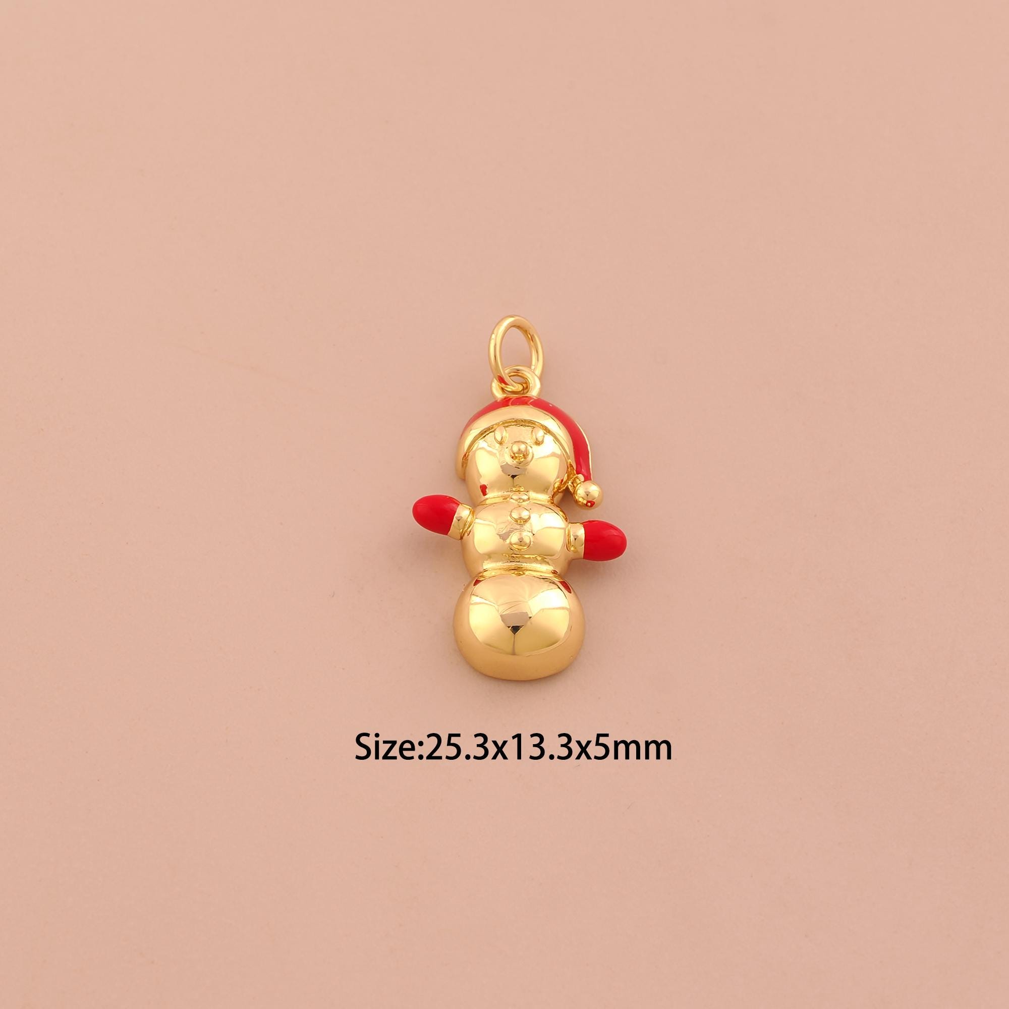 18K Gold Christmas Hat Charms,Christmas Charms Pendants,Enamel Snowman Charm for DIY Jewelry Making Supply