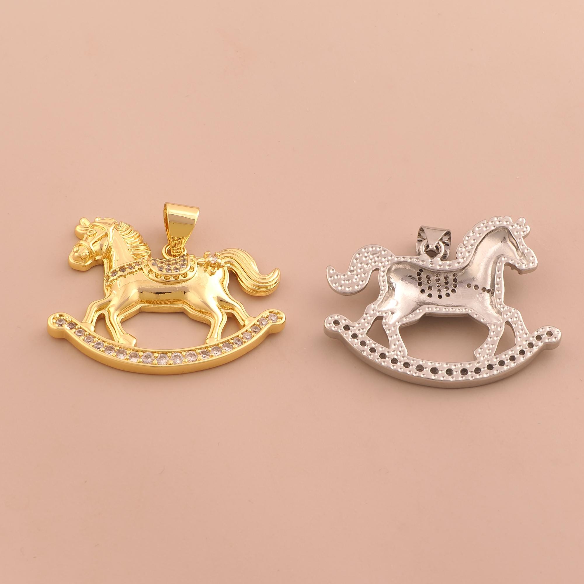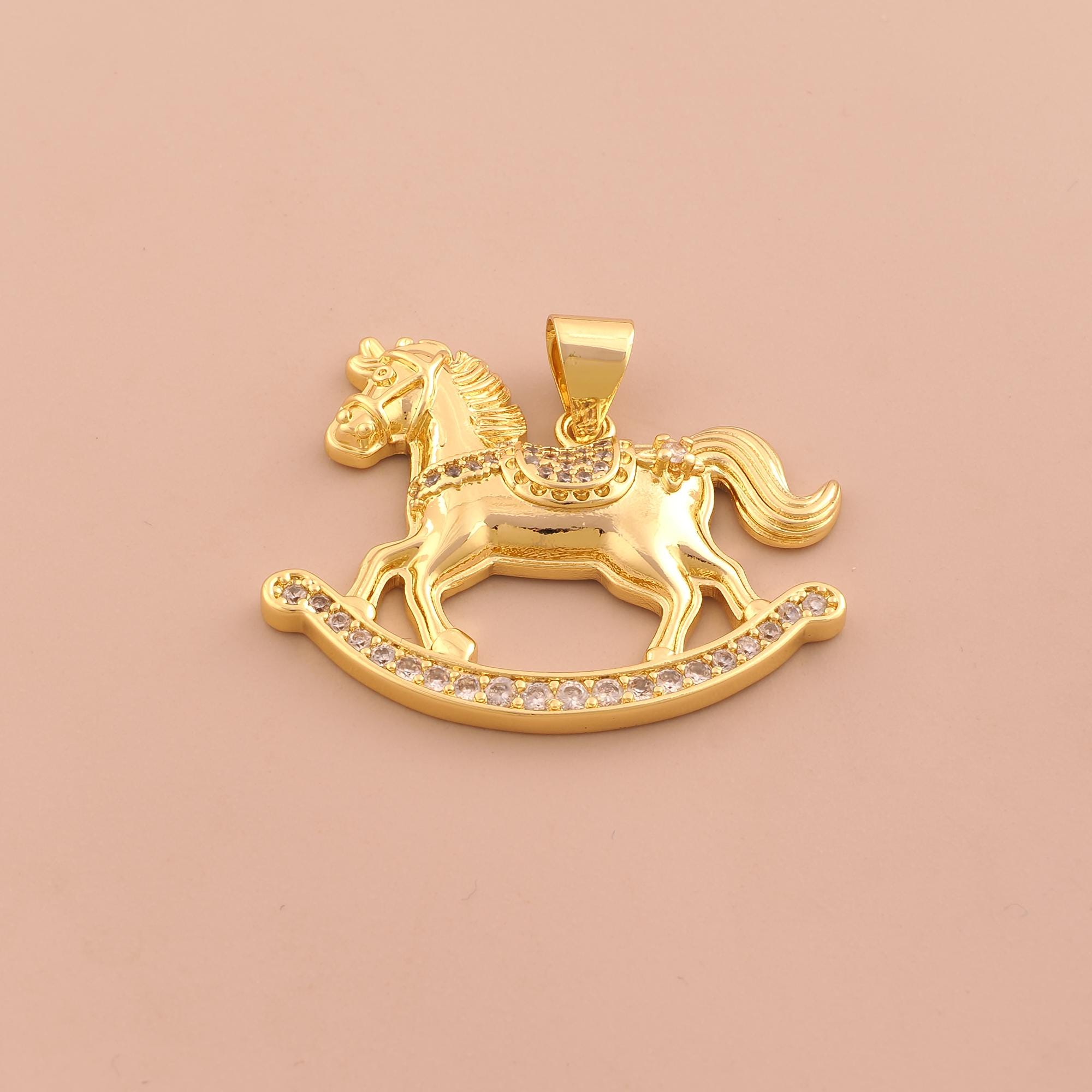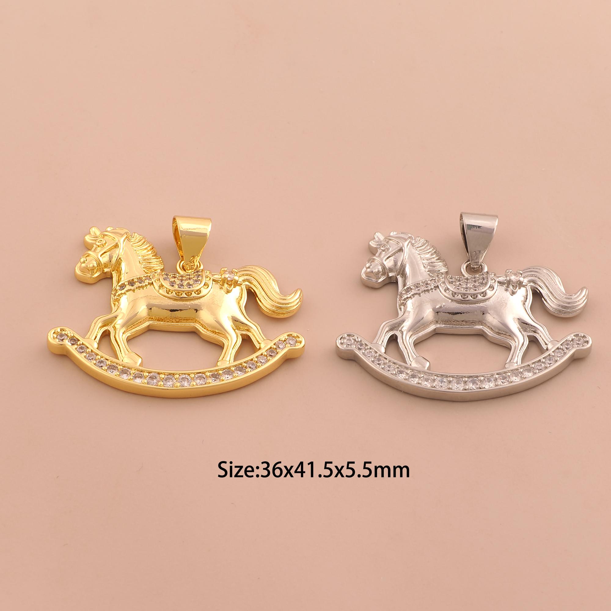 18K Gold Rocking Horse Charms,Horse Charms Pendants,CZ Pave Animal Charm for DIY Jewelry Making Supply