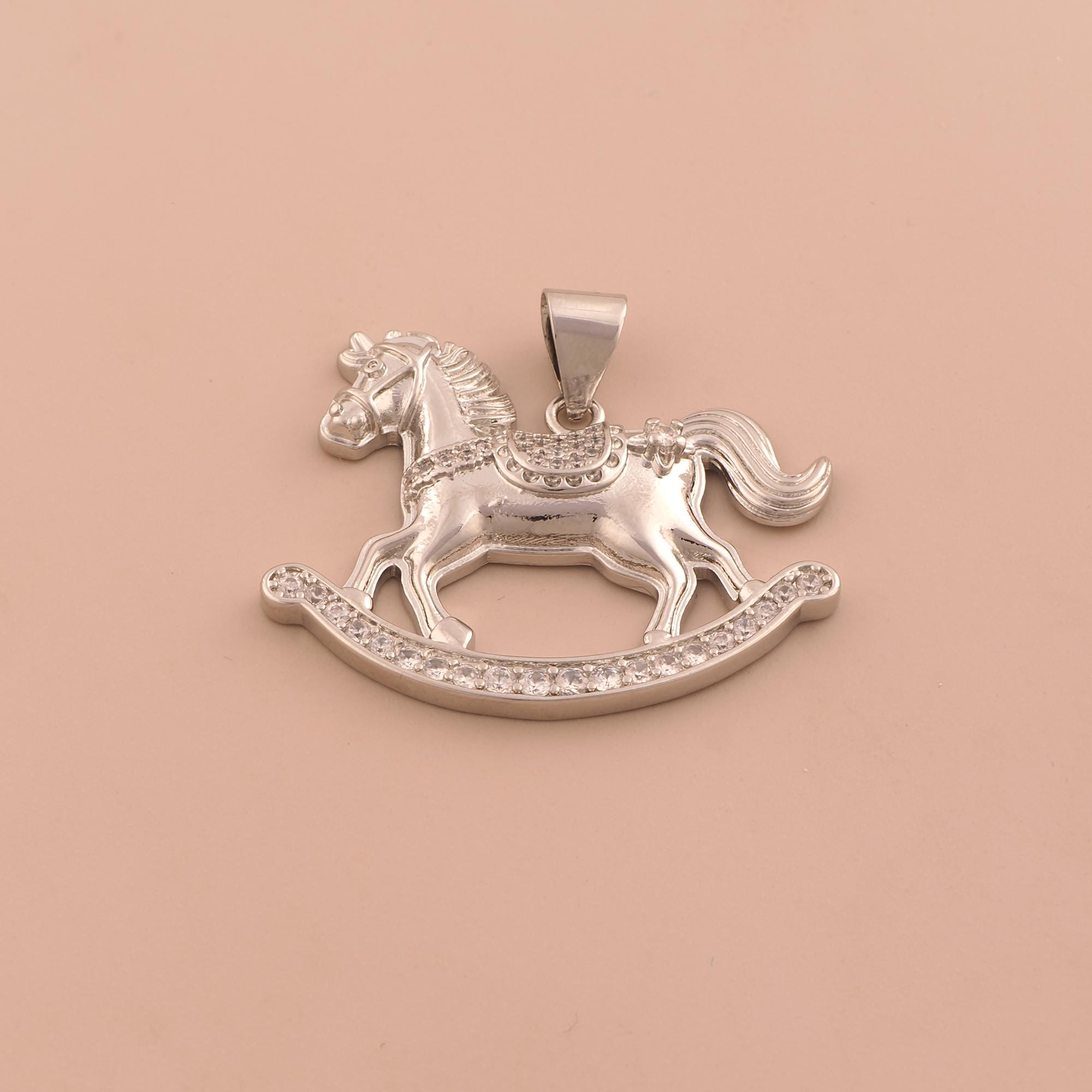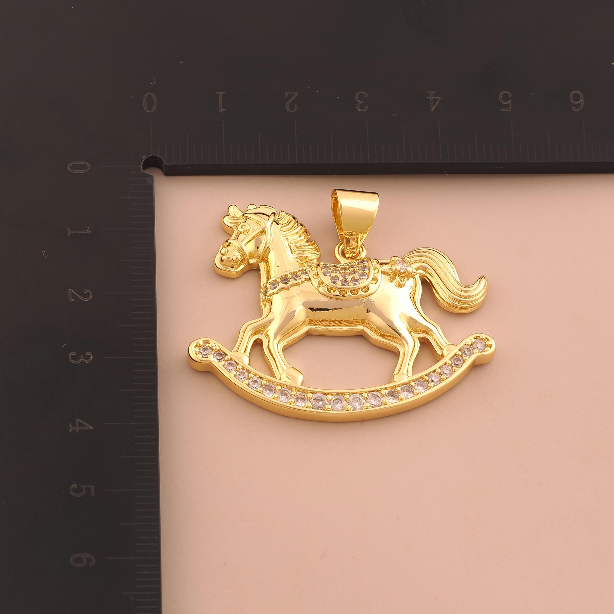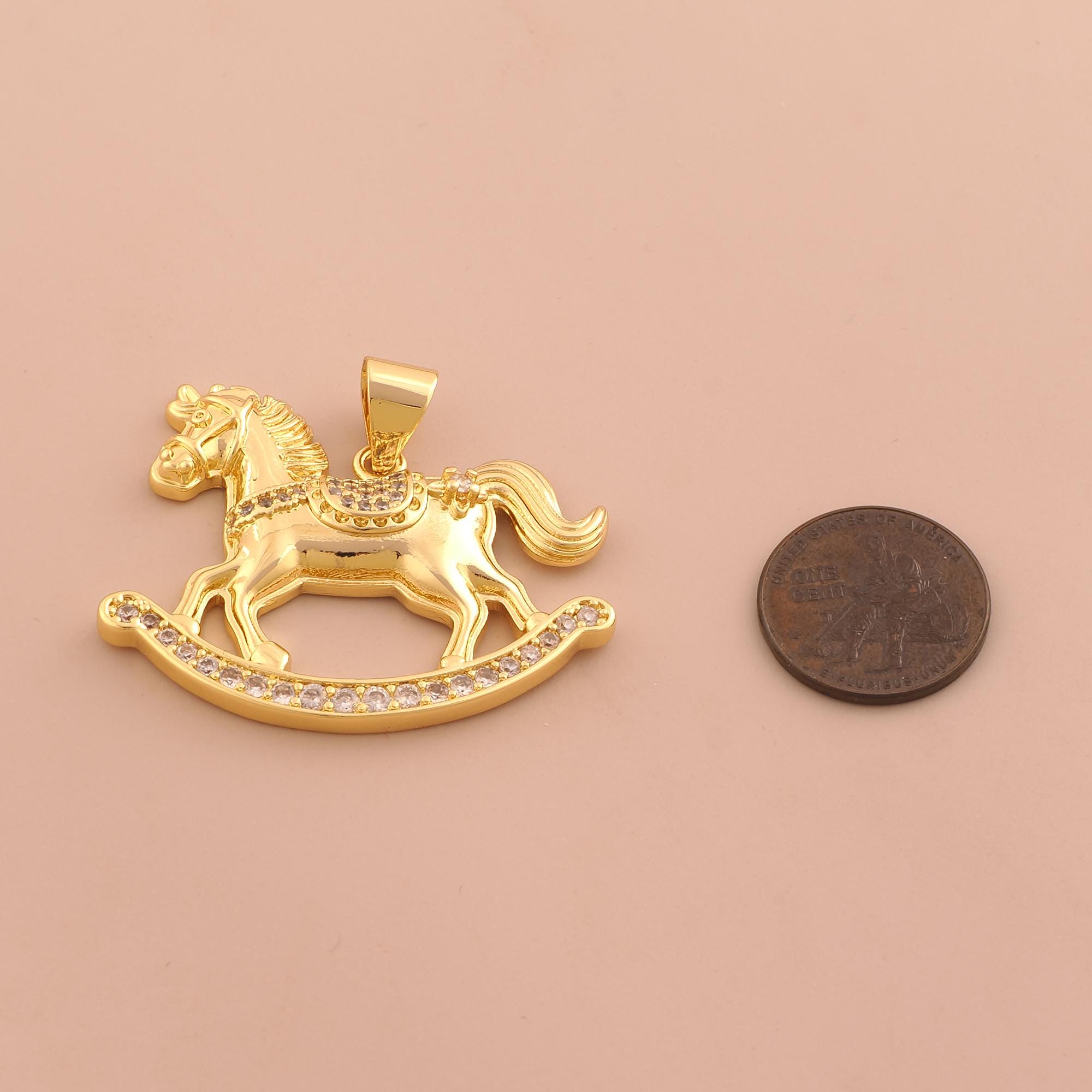 18K Gold Rocking Horse Charms,Horse Charms Pendants,CZ Pave Animal Charm for DIY Jewelry Making Supply
