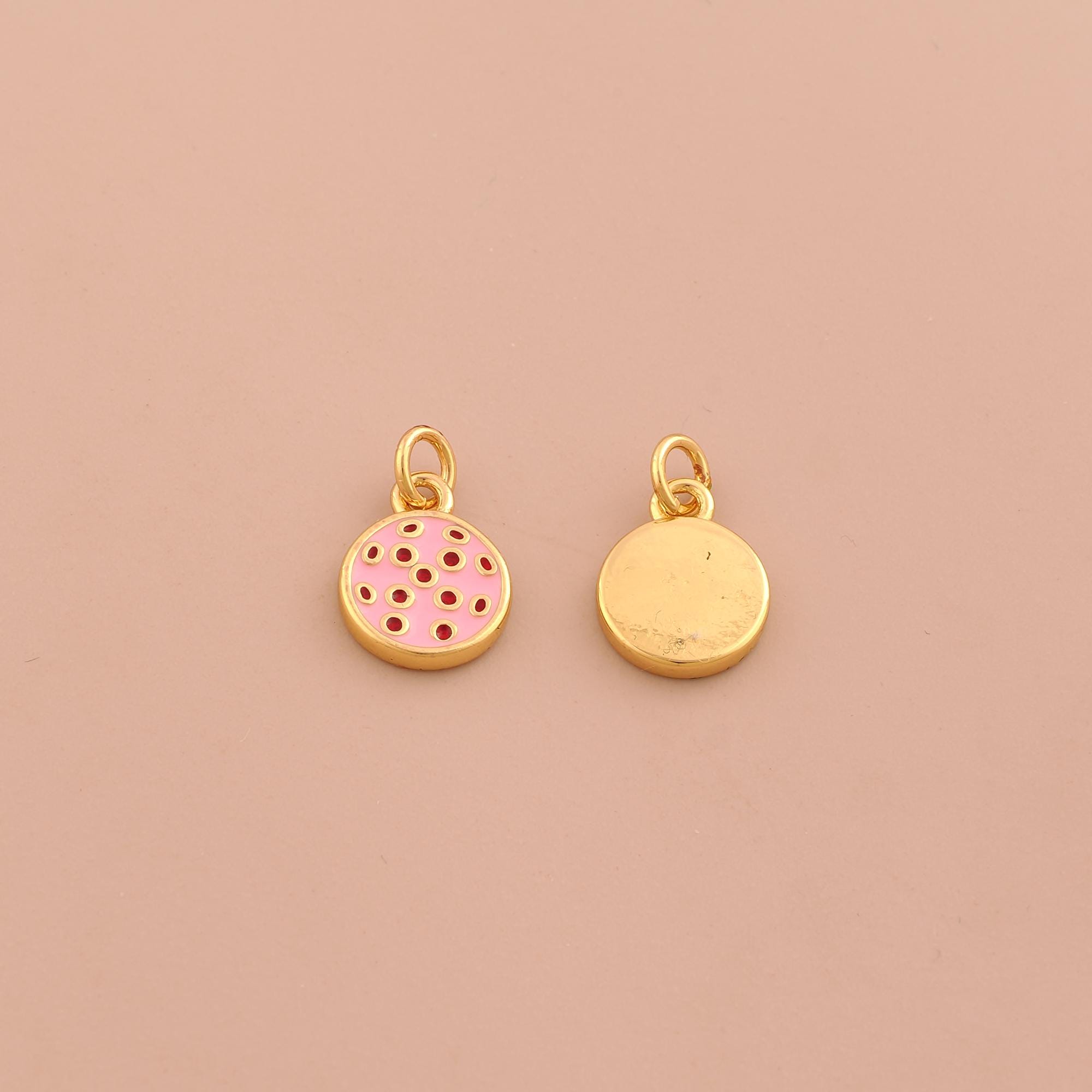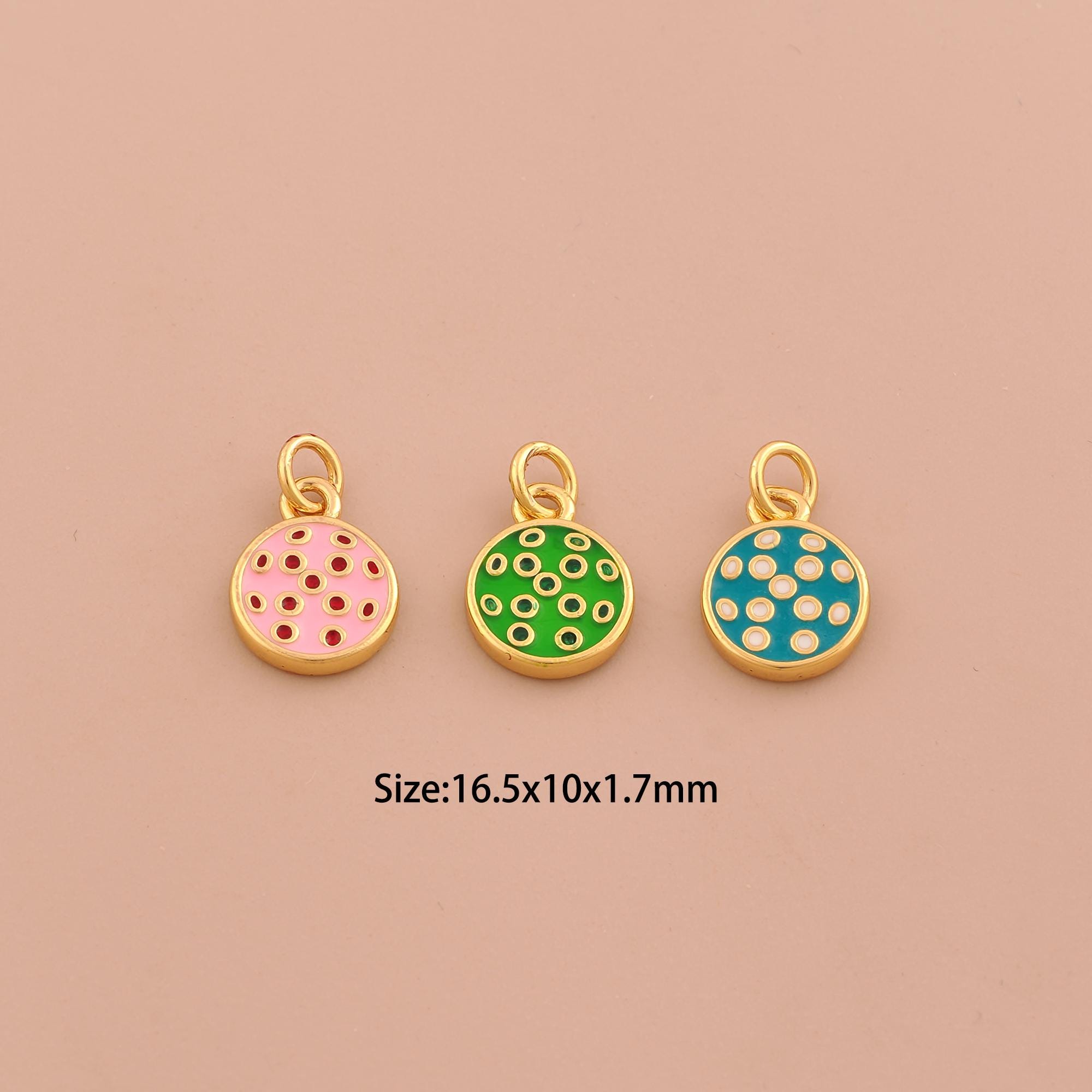 18K Gold Enamel Round Charms,Coin Charms Pendants,Disc Charm for DIY Jewelry Making Supply