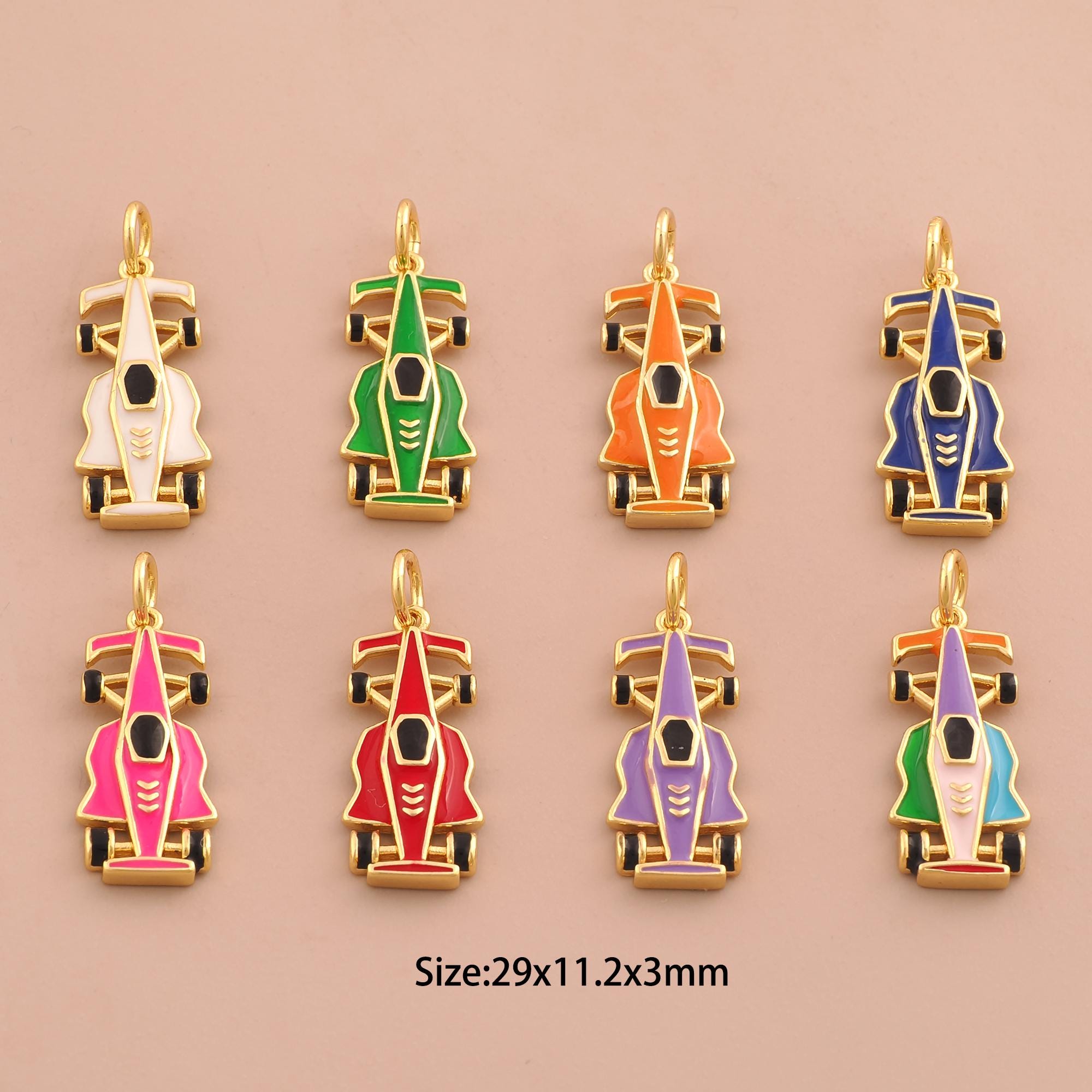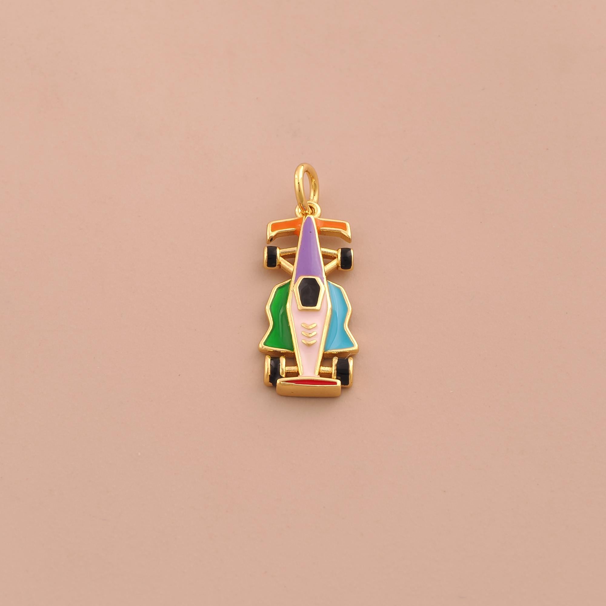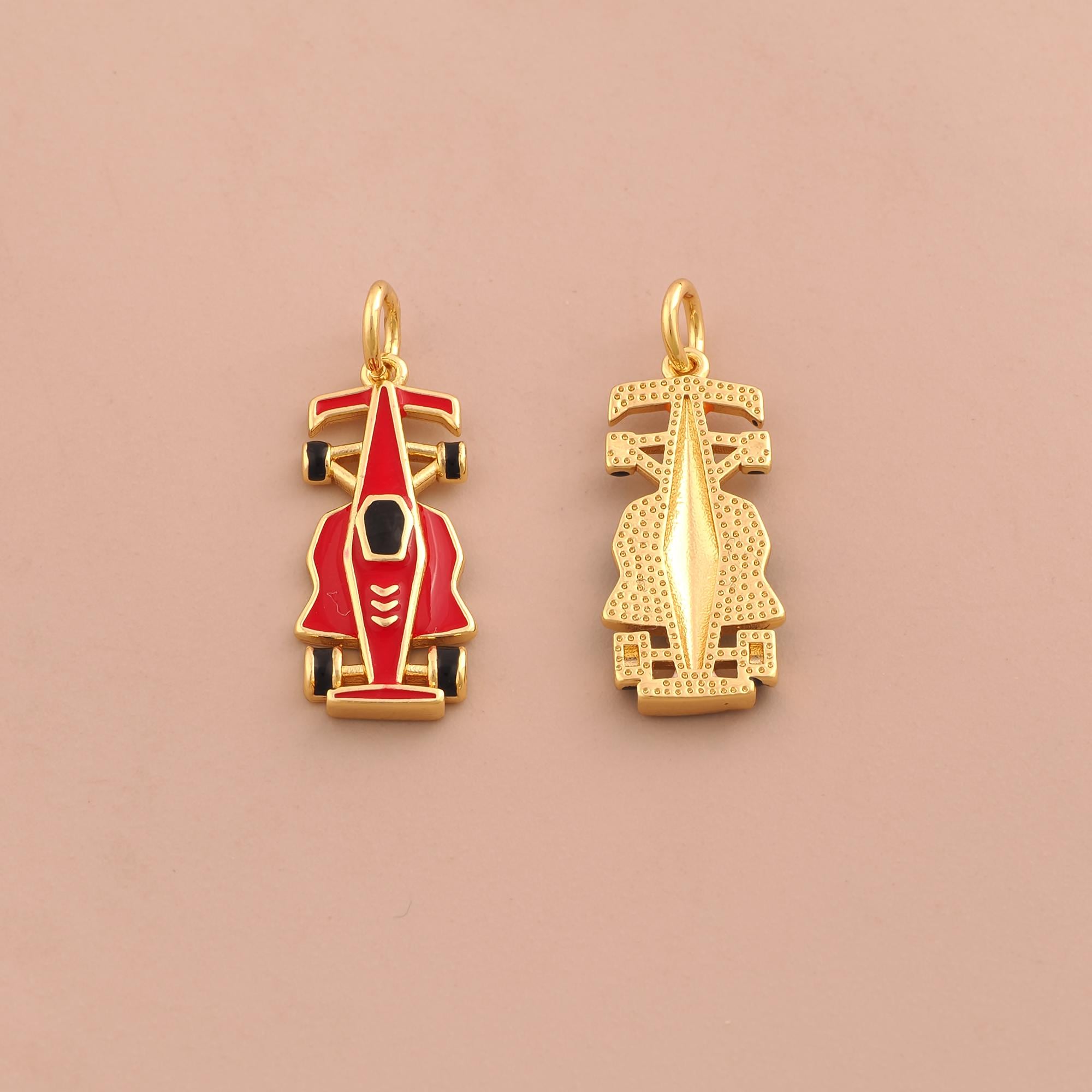 18K Gold Racing Charms,F1 Racing Charms Pendants,Enamel Racing Charm for DIY Jewelry Making Supply