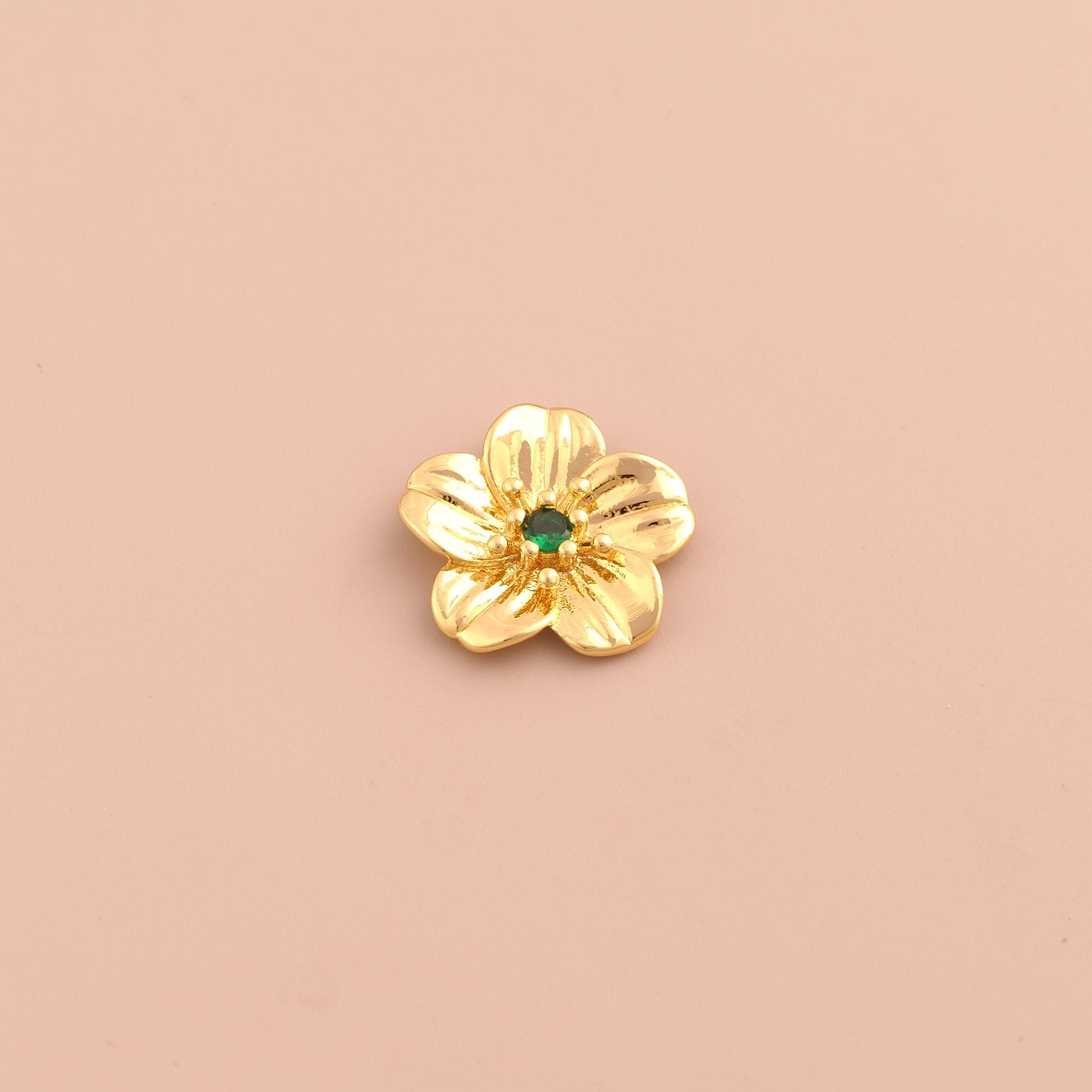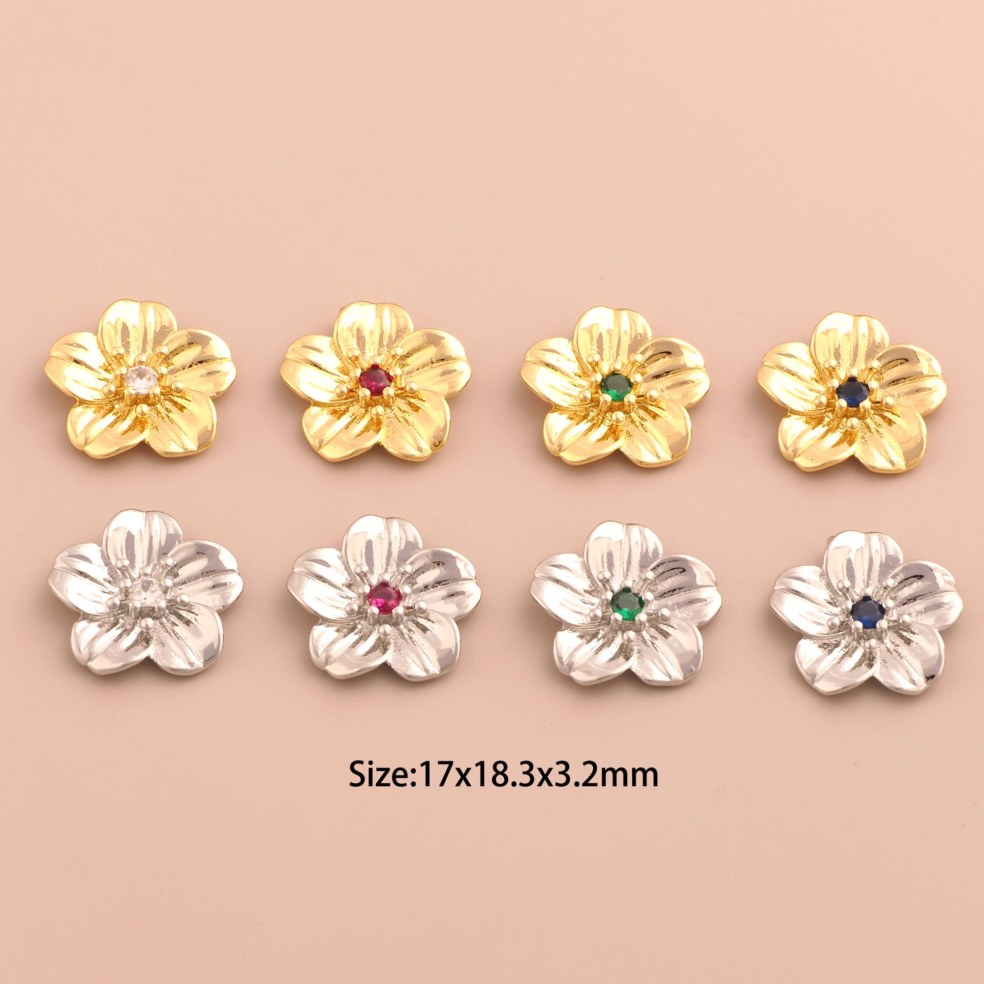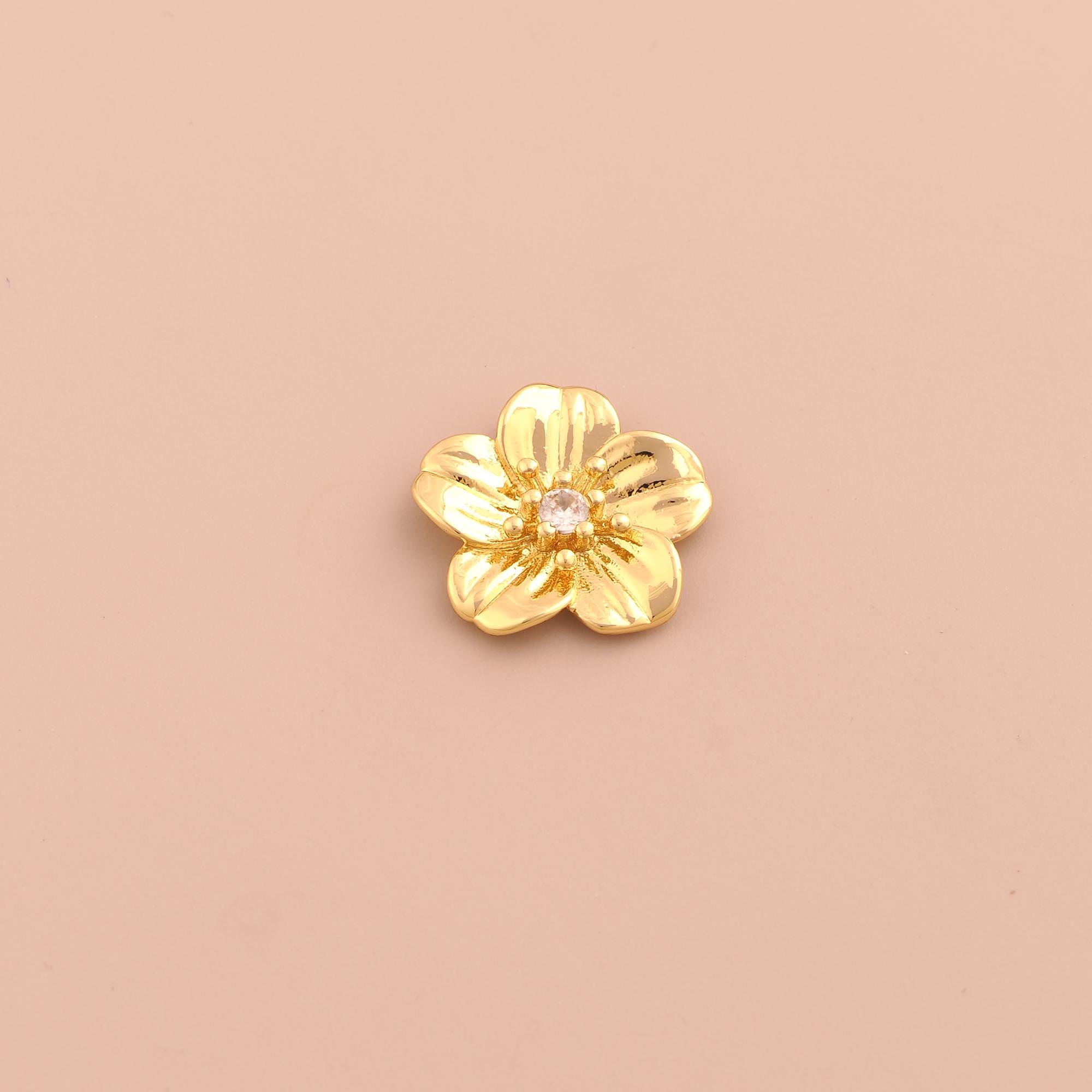 18K Gold Cherry Blossom Charms,CZ Pave Flower Charms Pendants,Cherry Blossom Charm for DIY Jewelry Making Supply