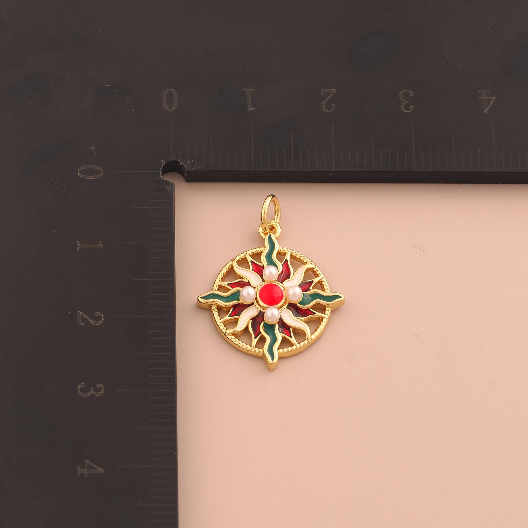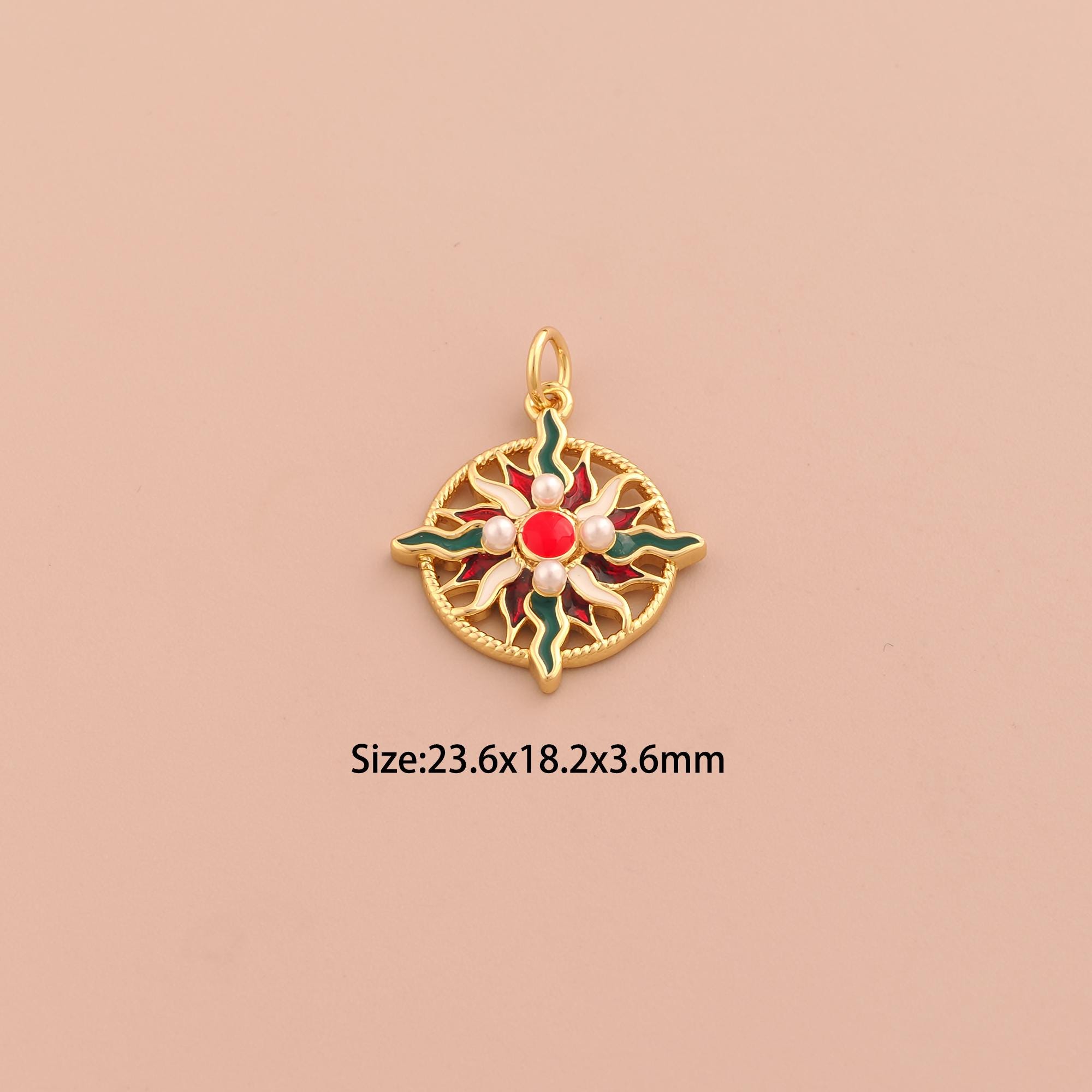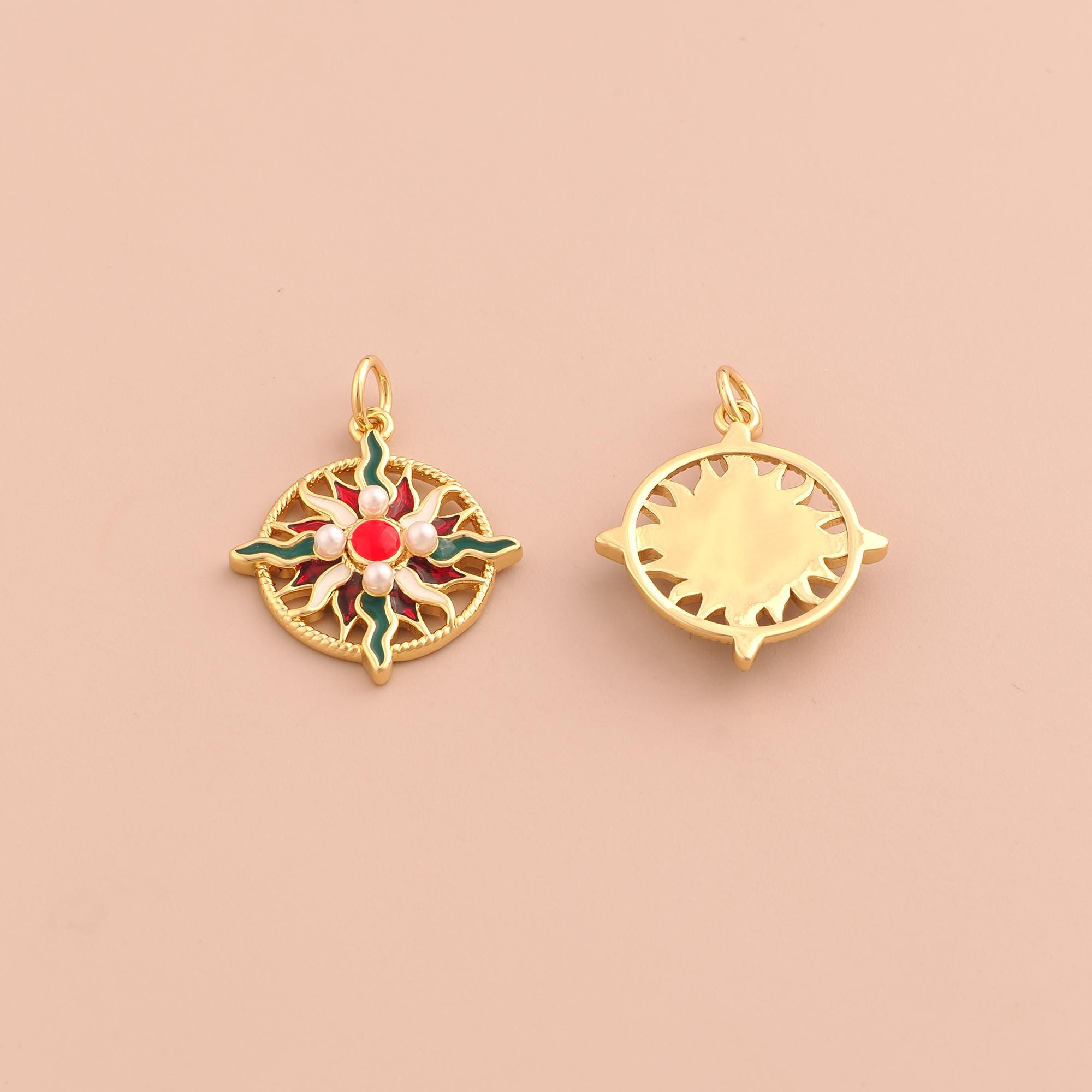 18K Gold Sun Charms,Celestial Charms Pendants,Enamel Sunburst Charm for DIY Jewelry Making Supply