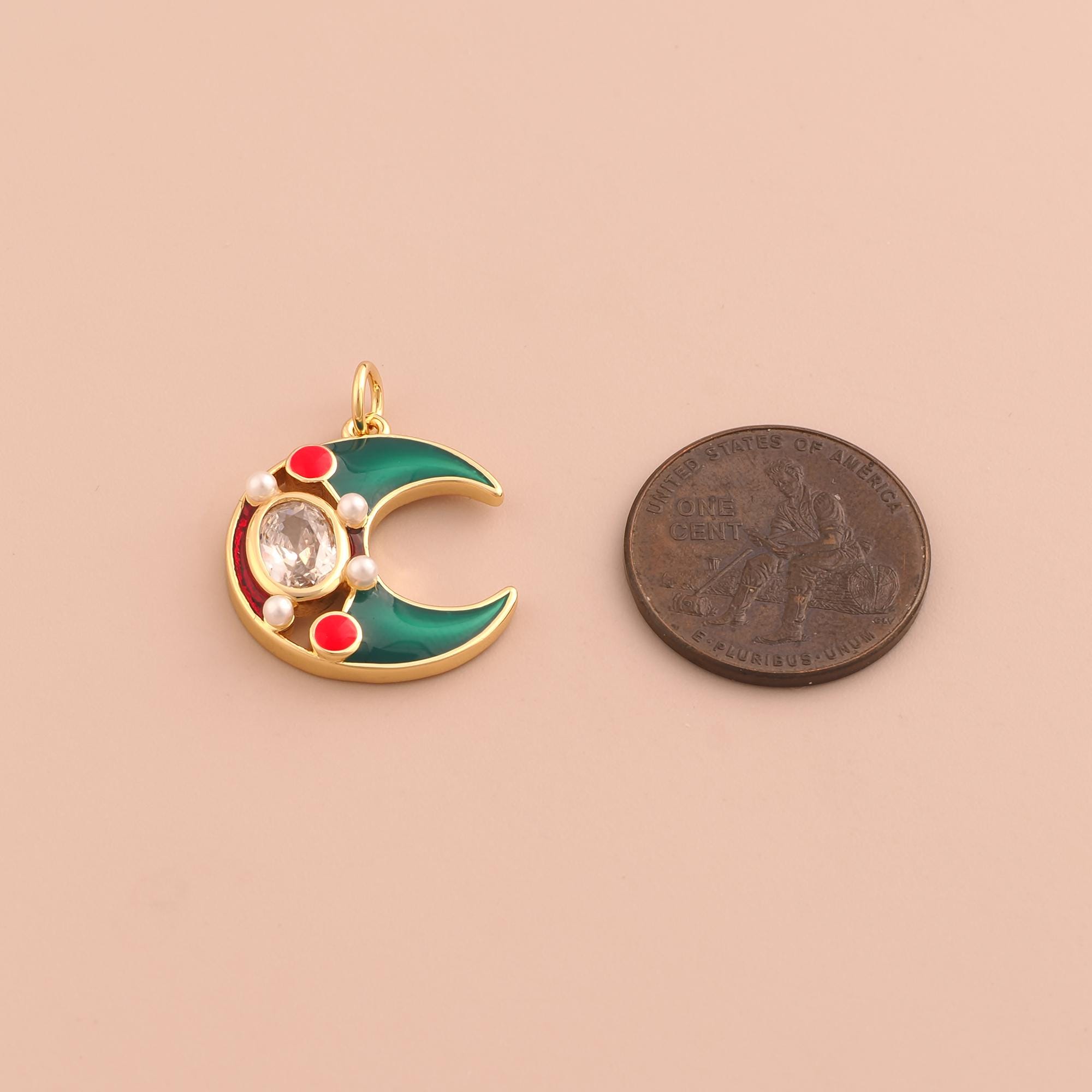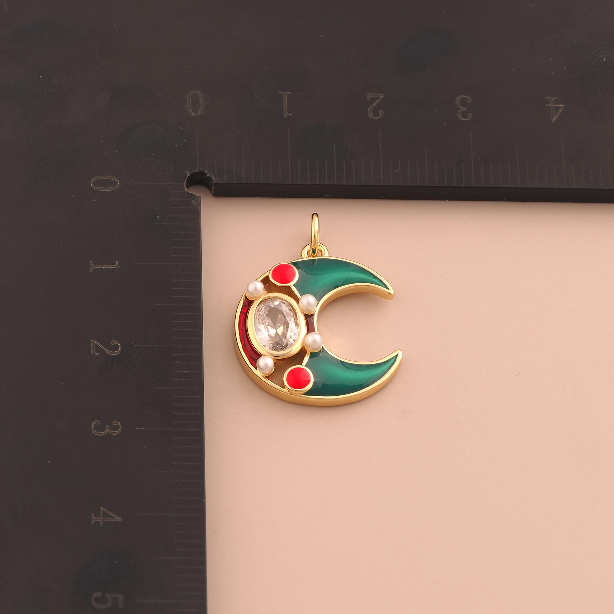 18K Gold Crescent Moon Charms,CZ Pave Celestial Charms Pendants,Enamel Moon Charm for DIY Jewelry Making Supply