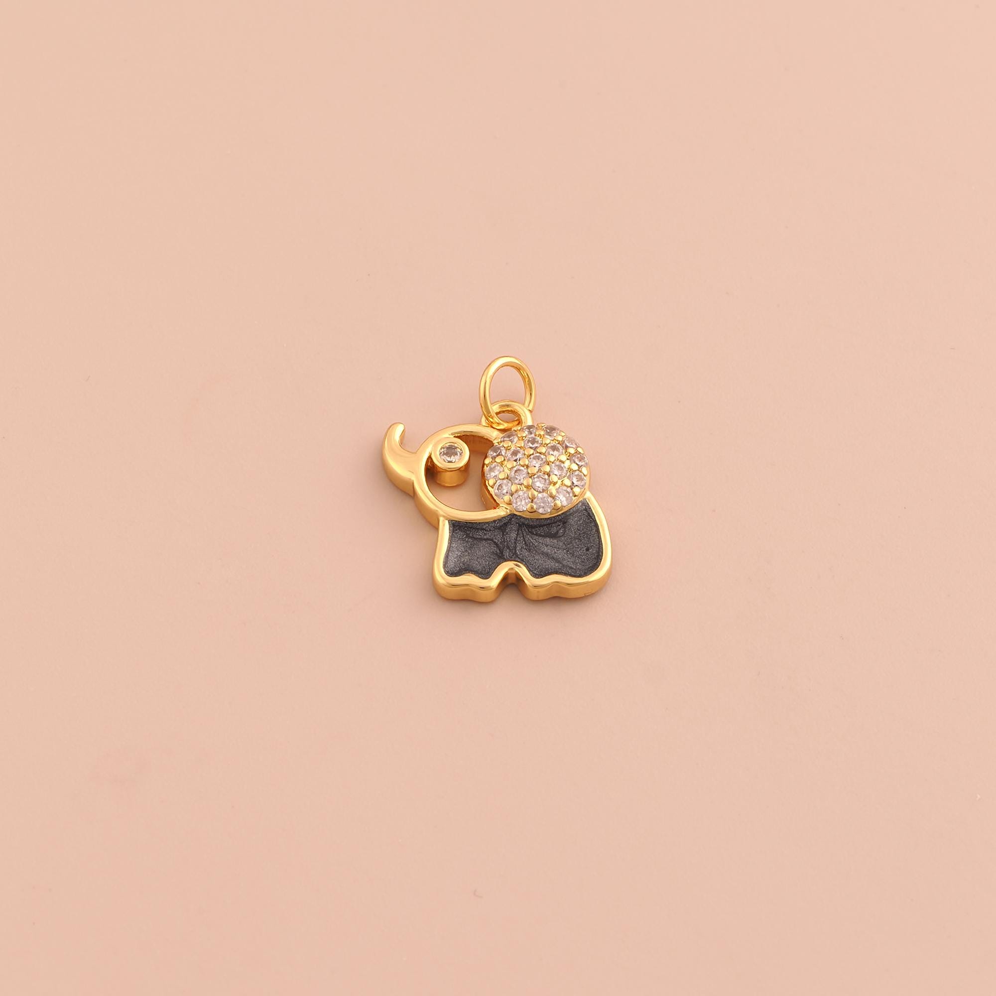 18K Gold Elephant Charms,CZ Pave Animal Charms Pendants,Enamel Elephant Charm for DIY Jewelry Making Supply