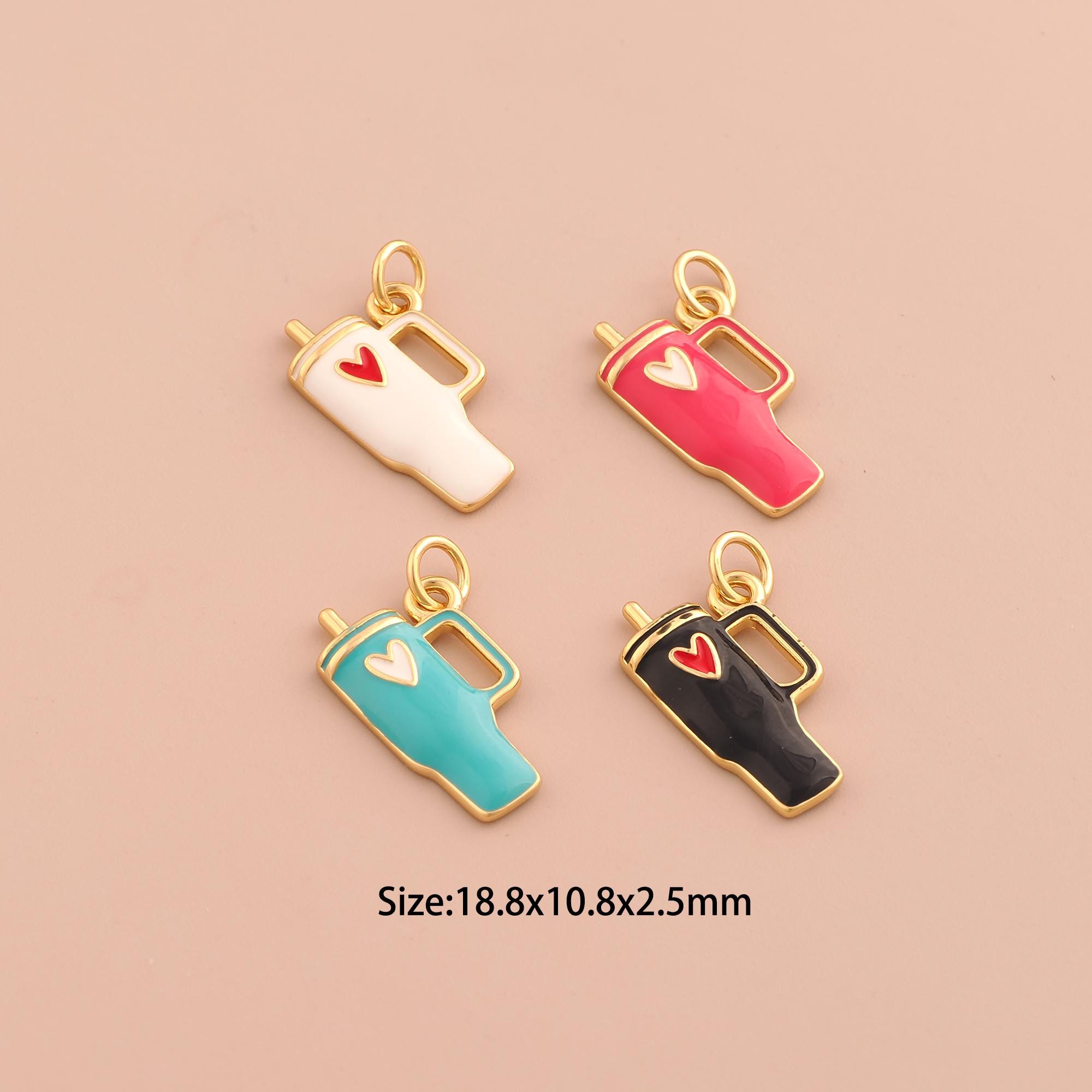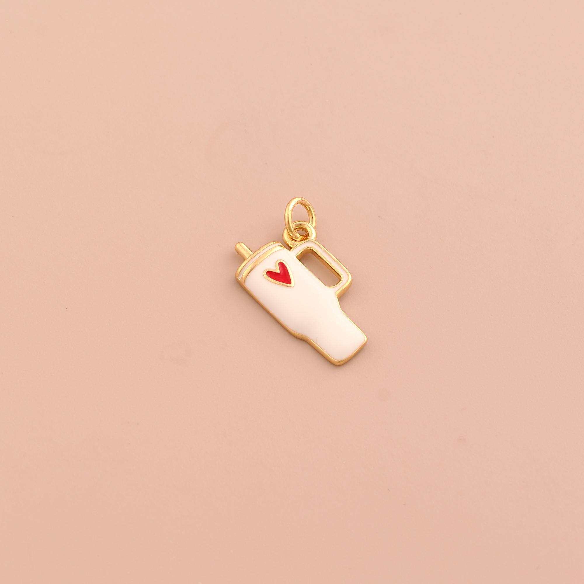 18K Gold Water Cup Charms,Heart Charms Pendants,Enamel Cup Charm for DIY Jewelry Making Supply