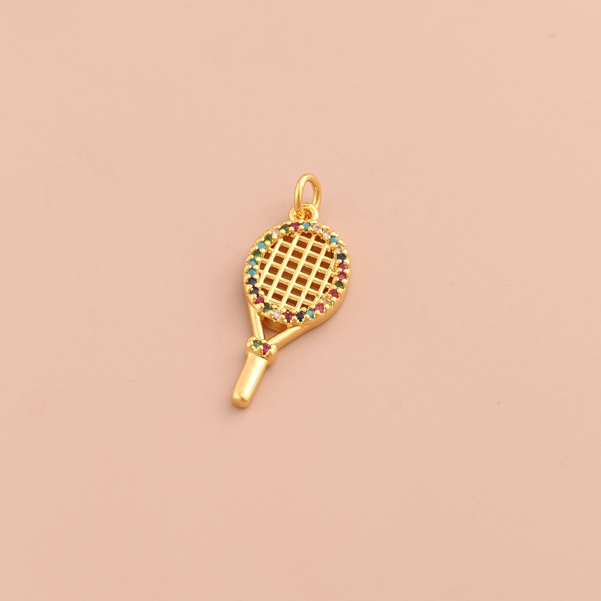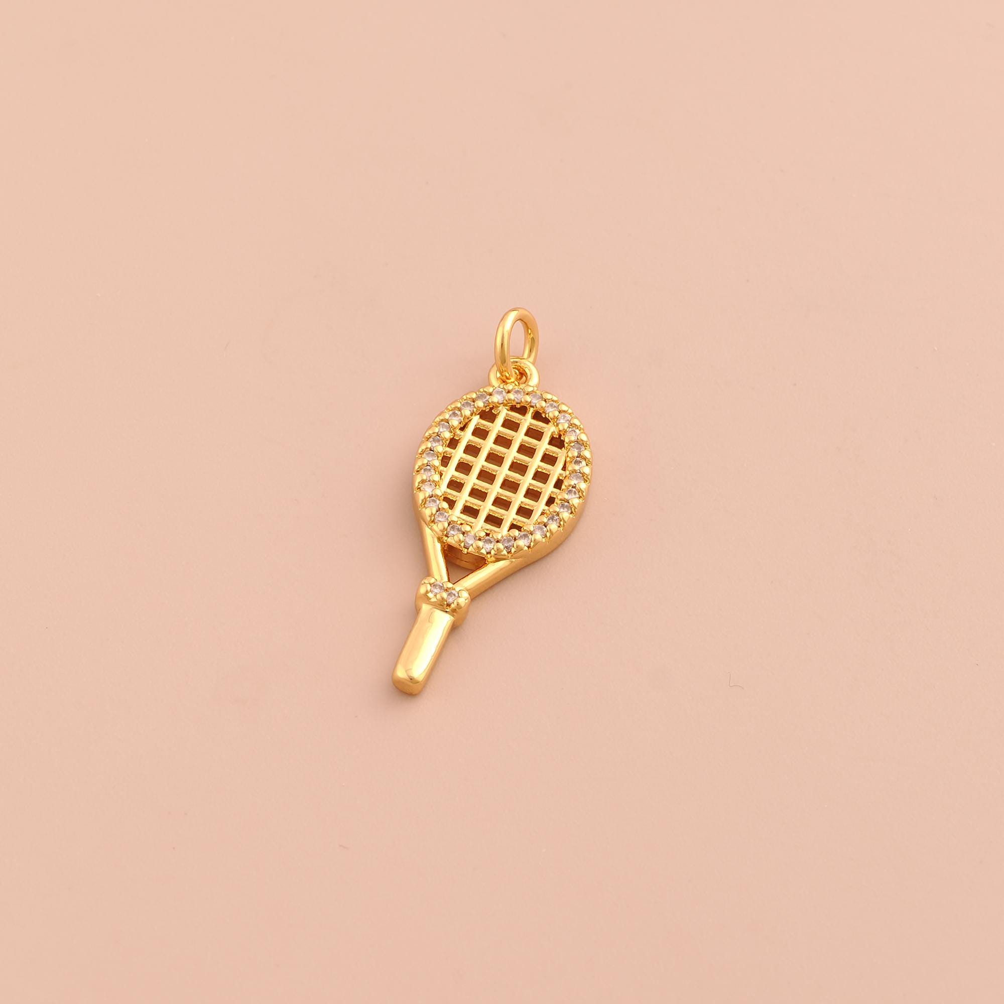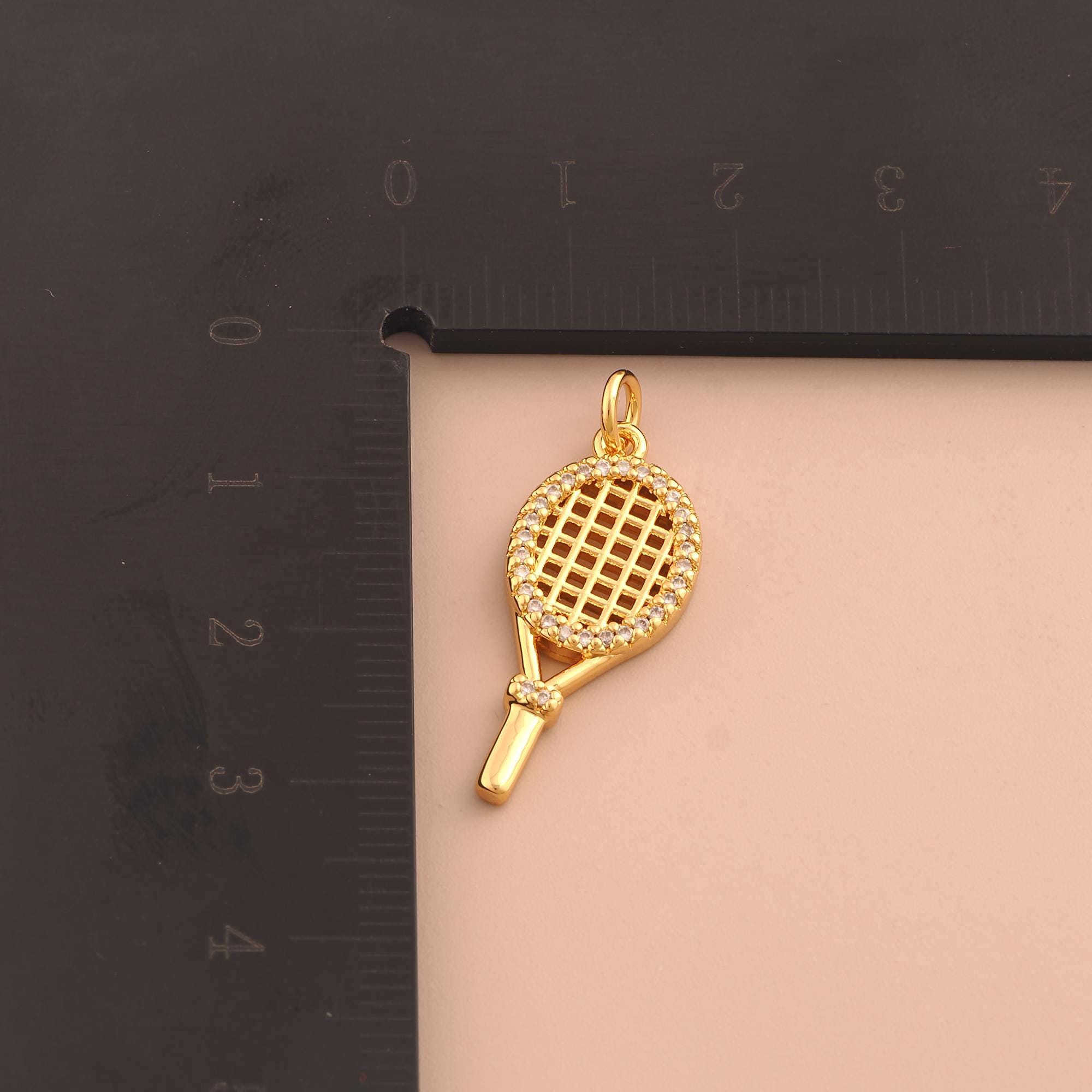 18K Gold Racket Charms,CZ Pave Sports Charms Pendants,Racket Charm for DIY Jewelry Making Supply