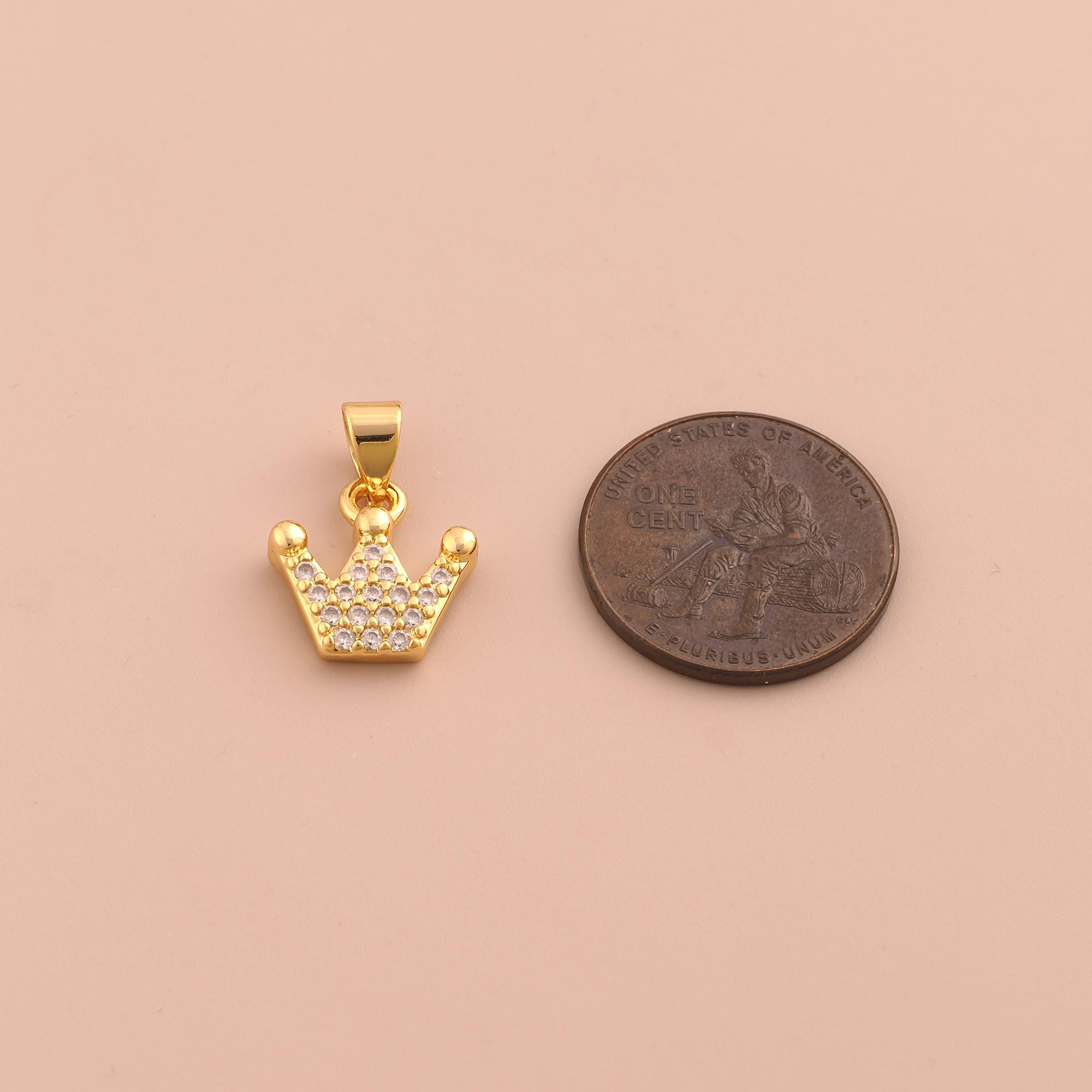 18K Gold Crown Charms,CZ Pave Crown Charms Pendants,Crown Charm for DIY Jewelry Making Supply