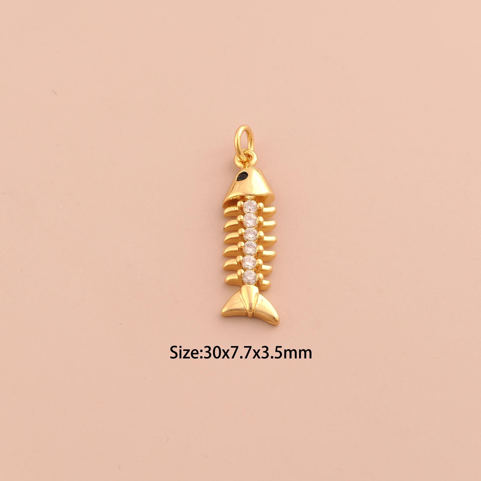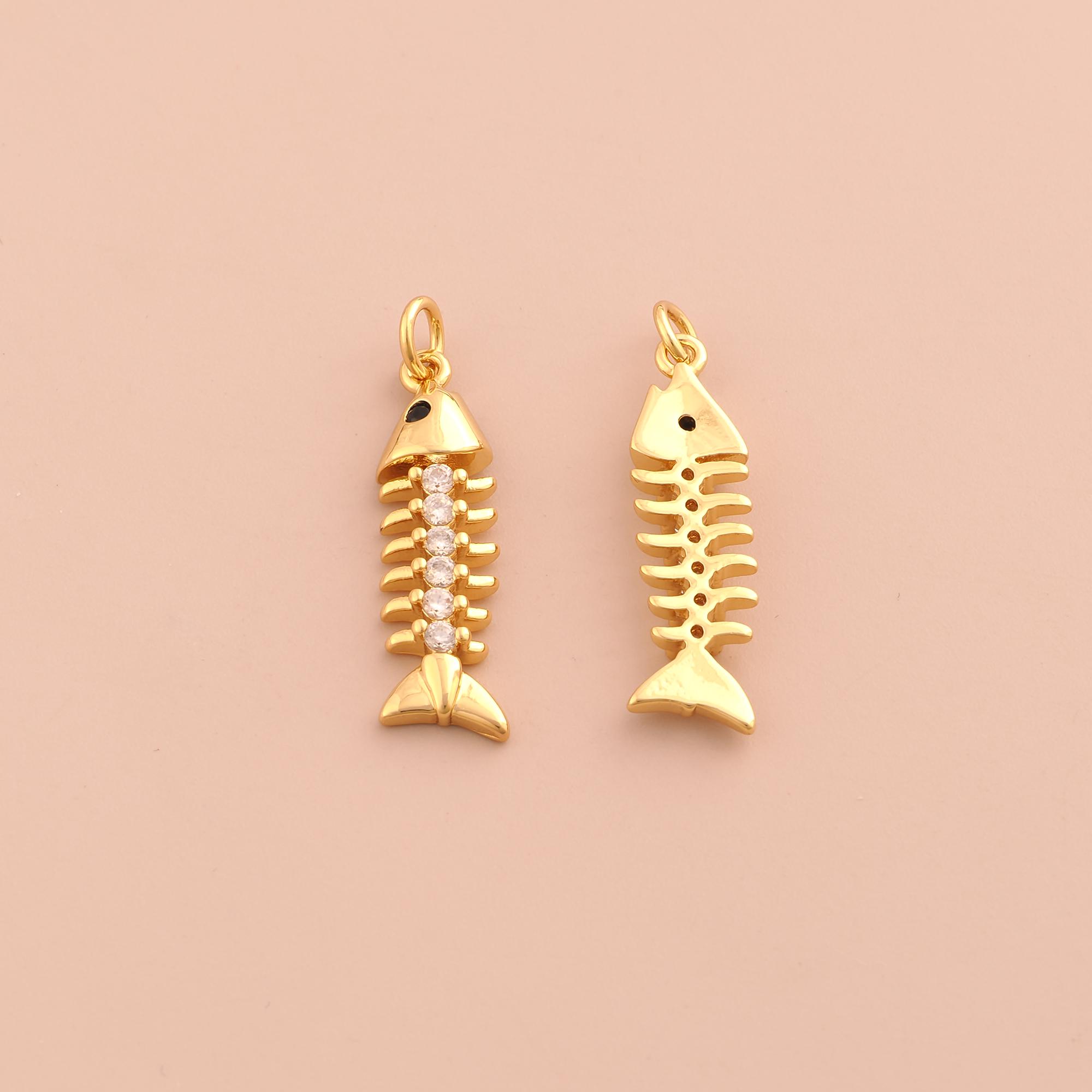 18K Gold Fishbone Charms,CZ Pave Fishbone Charms Pendants,Fishbone Charm for DIY Jewelry Making Supply