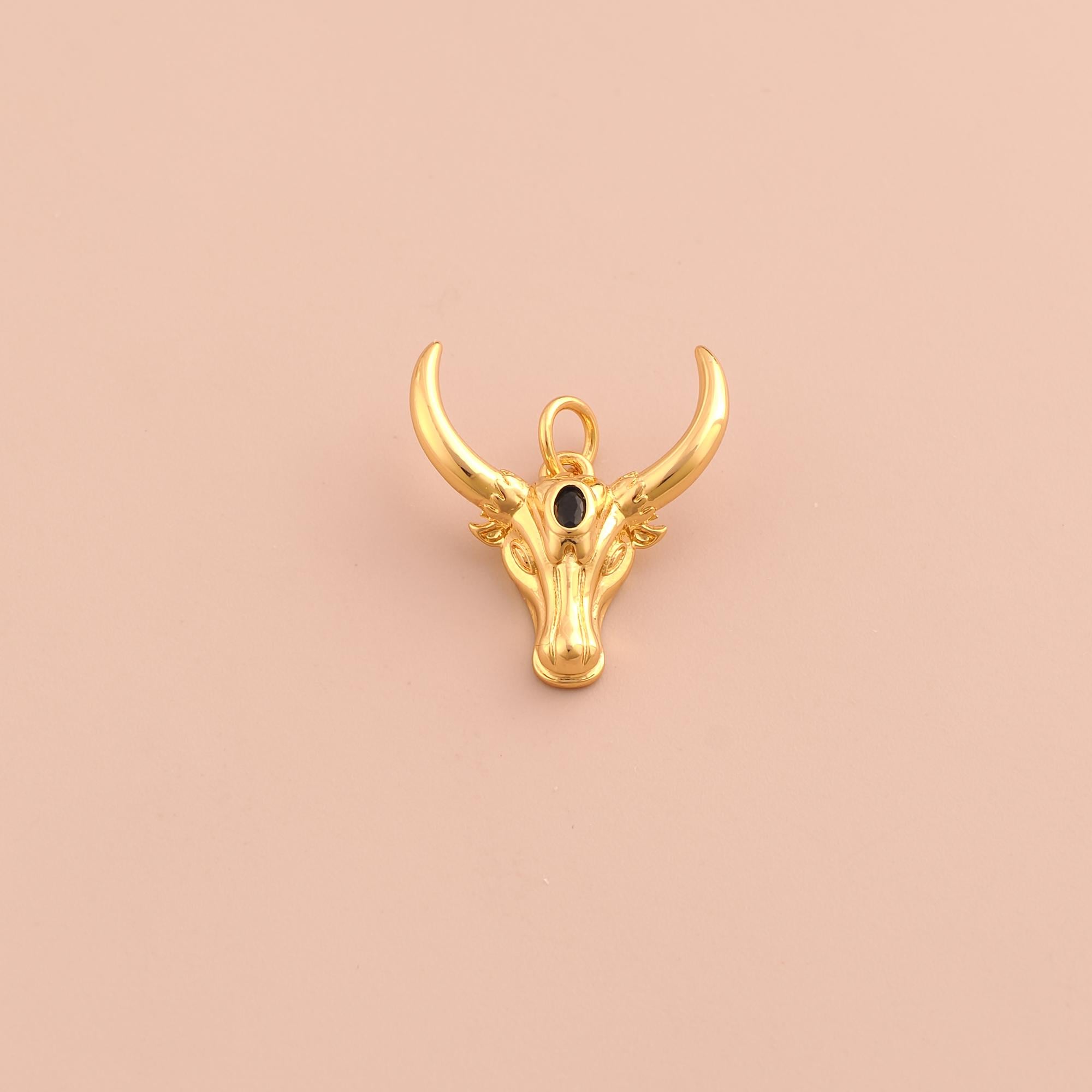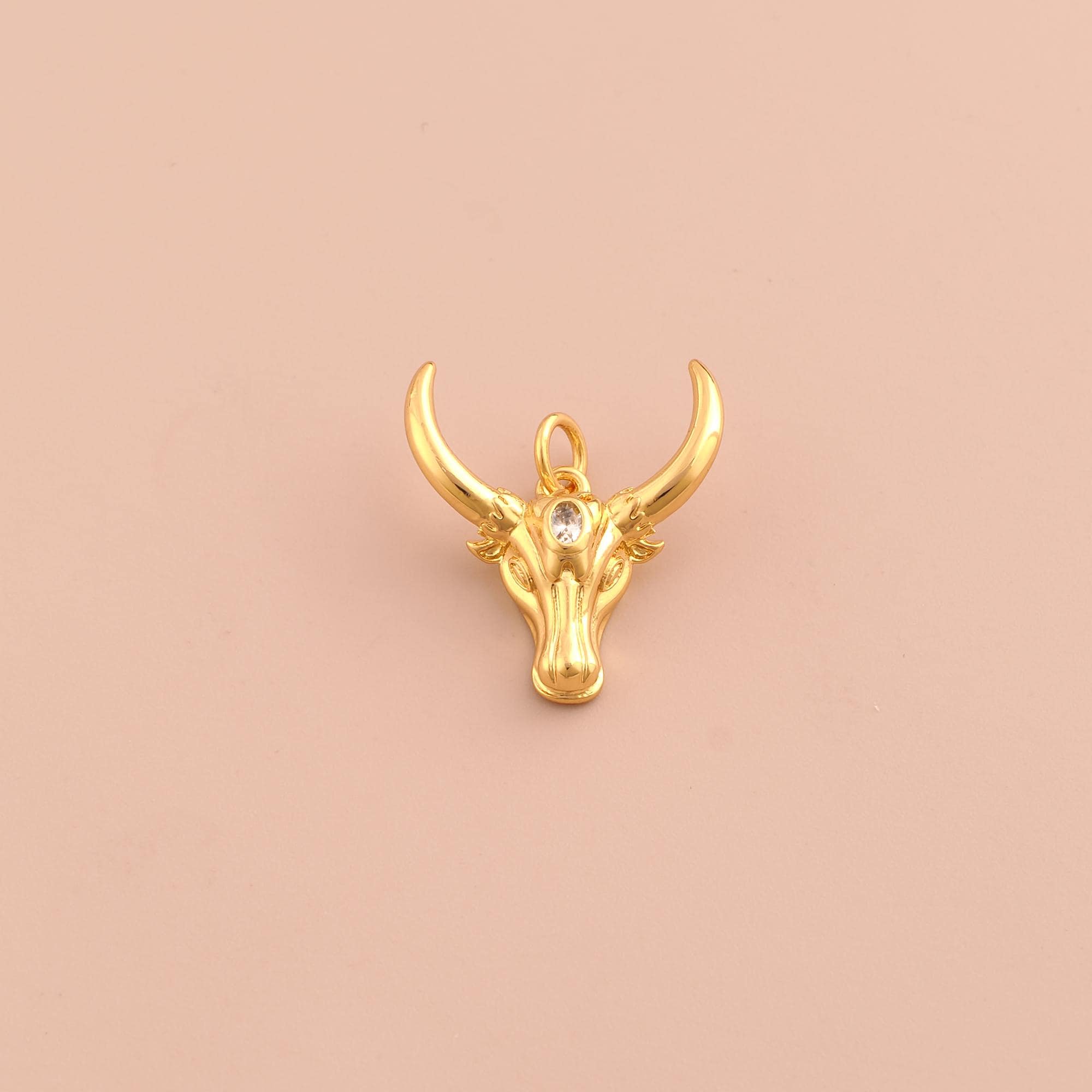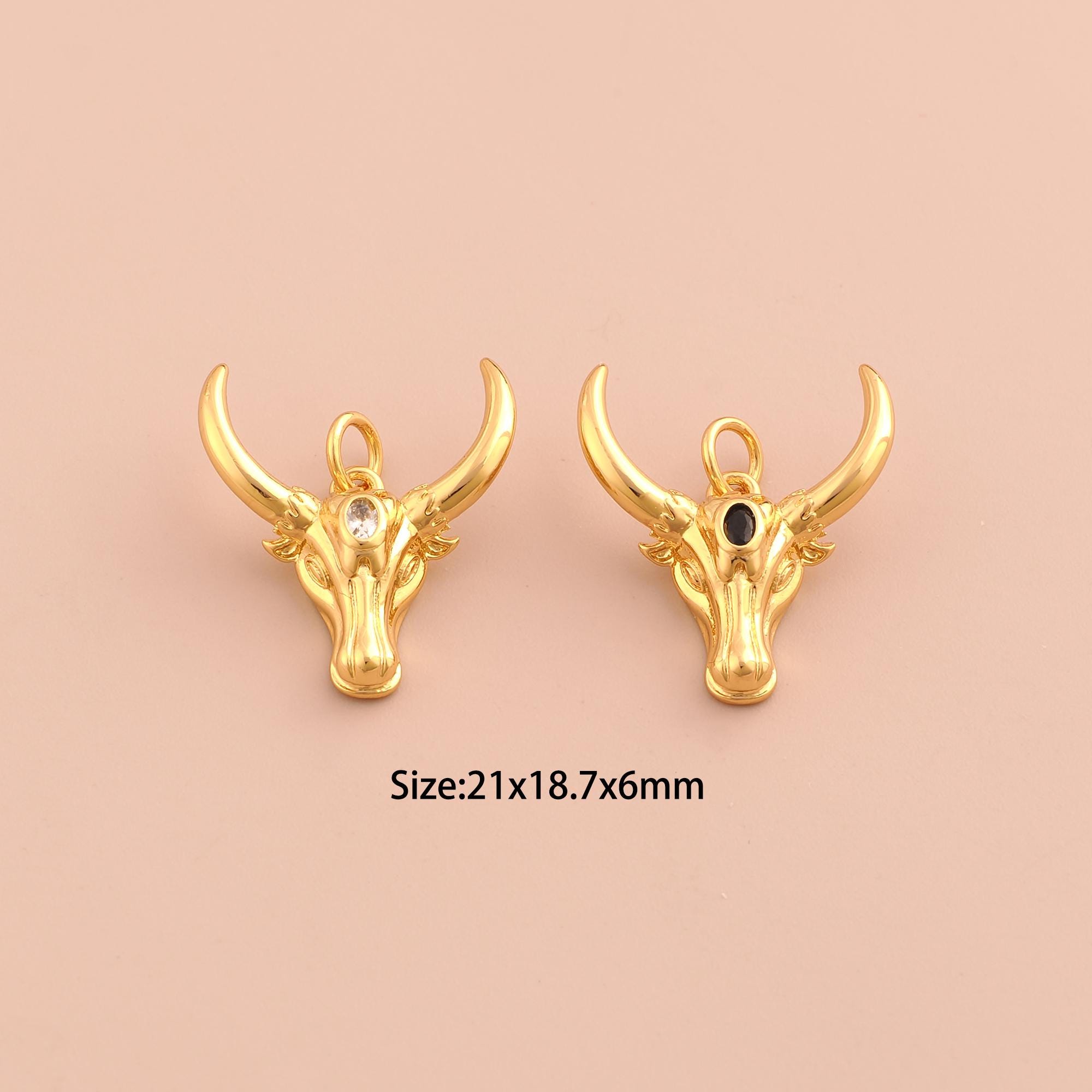 18K Gold Cow Head Charms,CZ Pave Animal Charms Pendants,Cow Charm for DIY Jewelry Making Supply