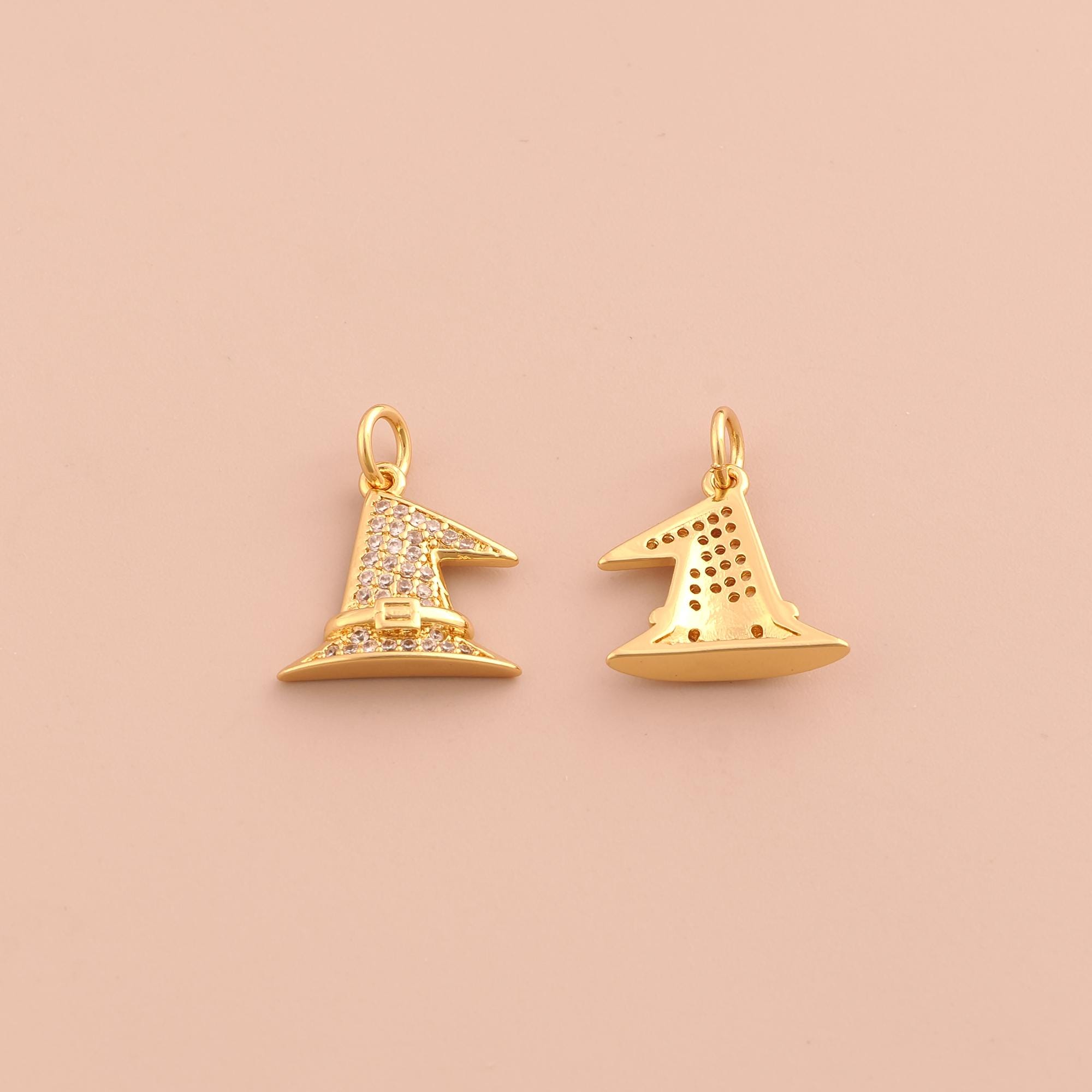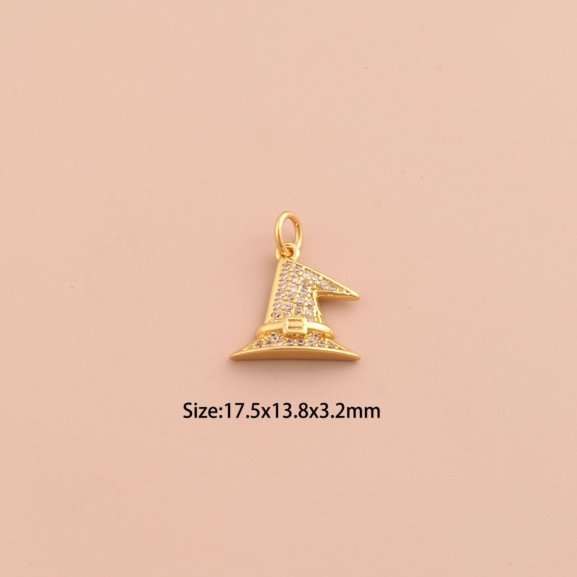 18K Gold Magic Hat Charms,CZ Pave Magic Hat Charms Pendants,Magic Hat Charm for DIY Jewelry Making Supply