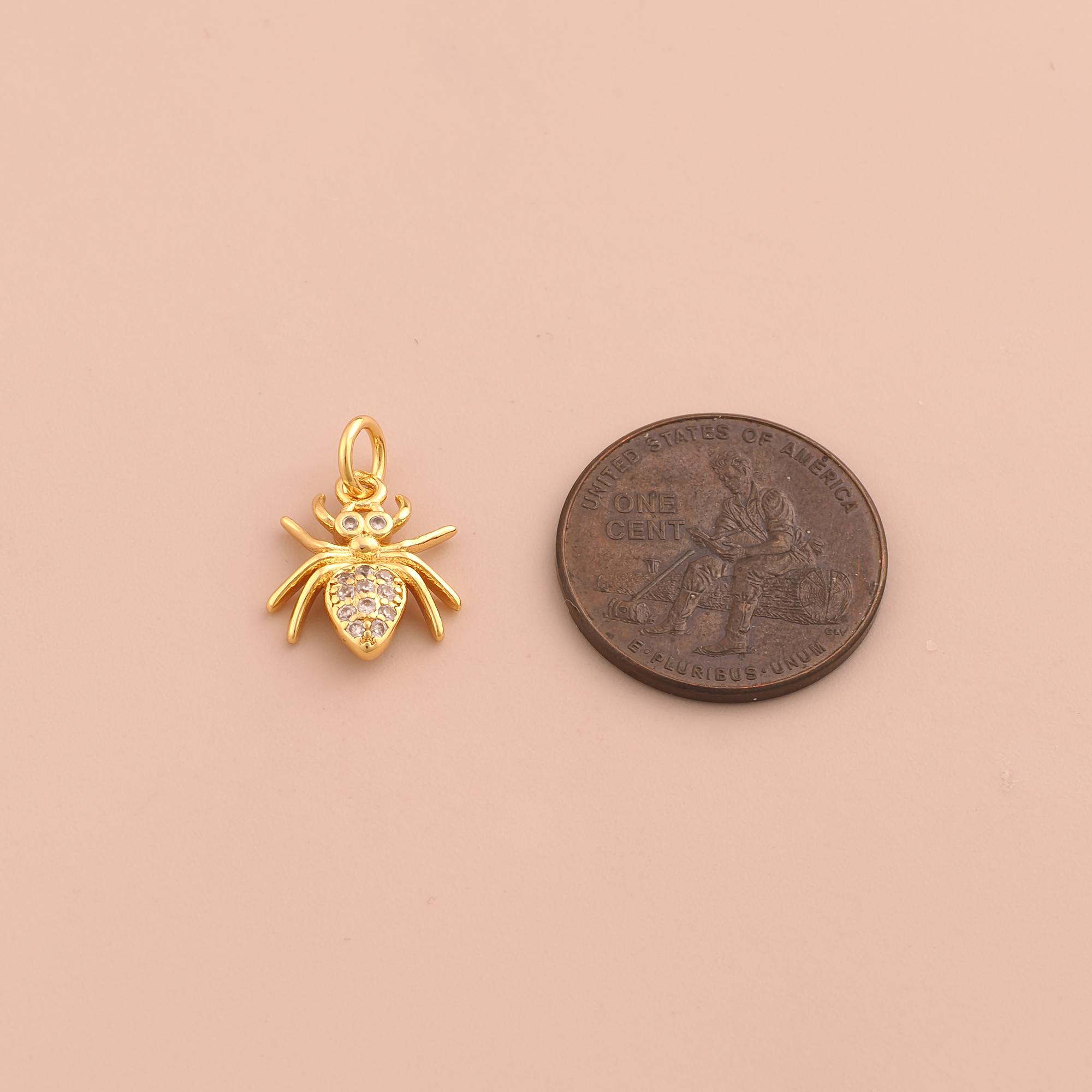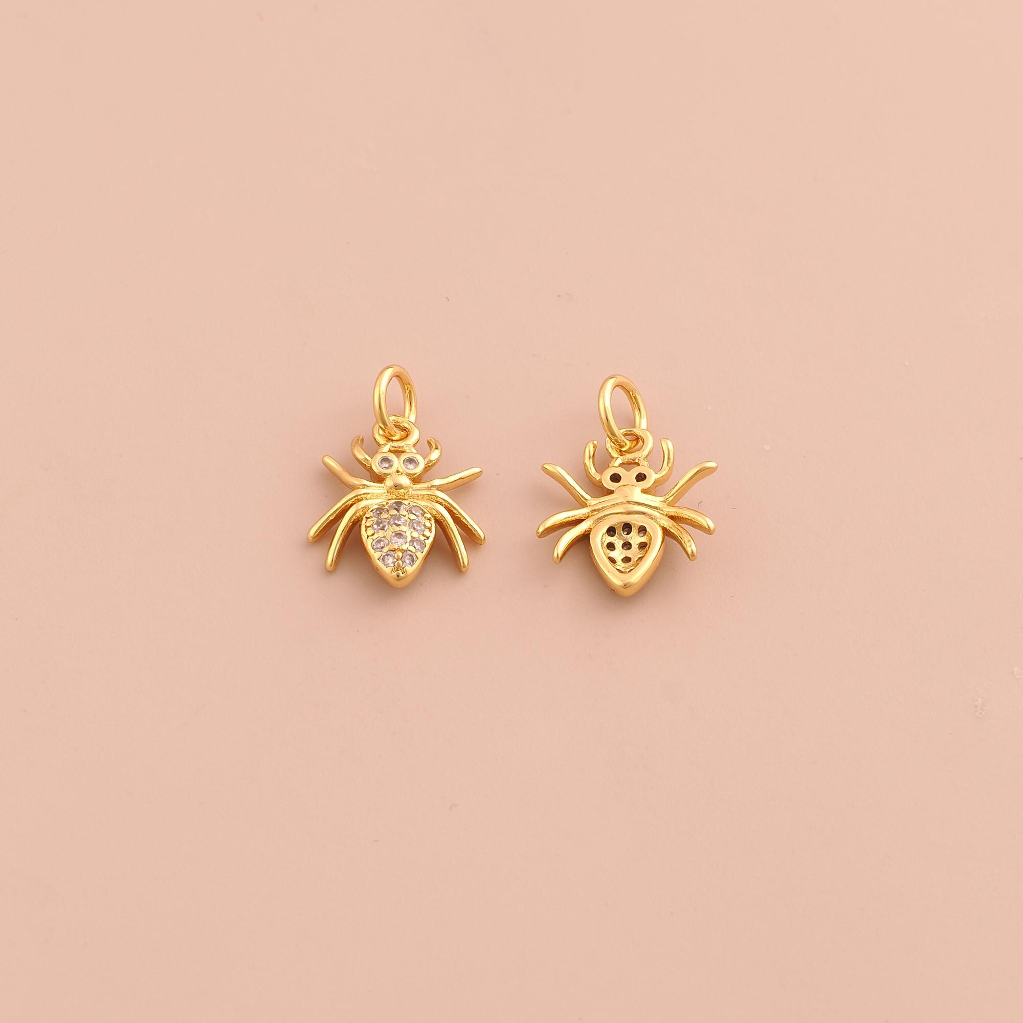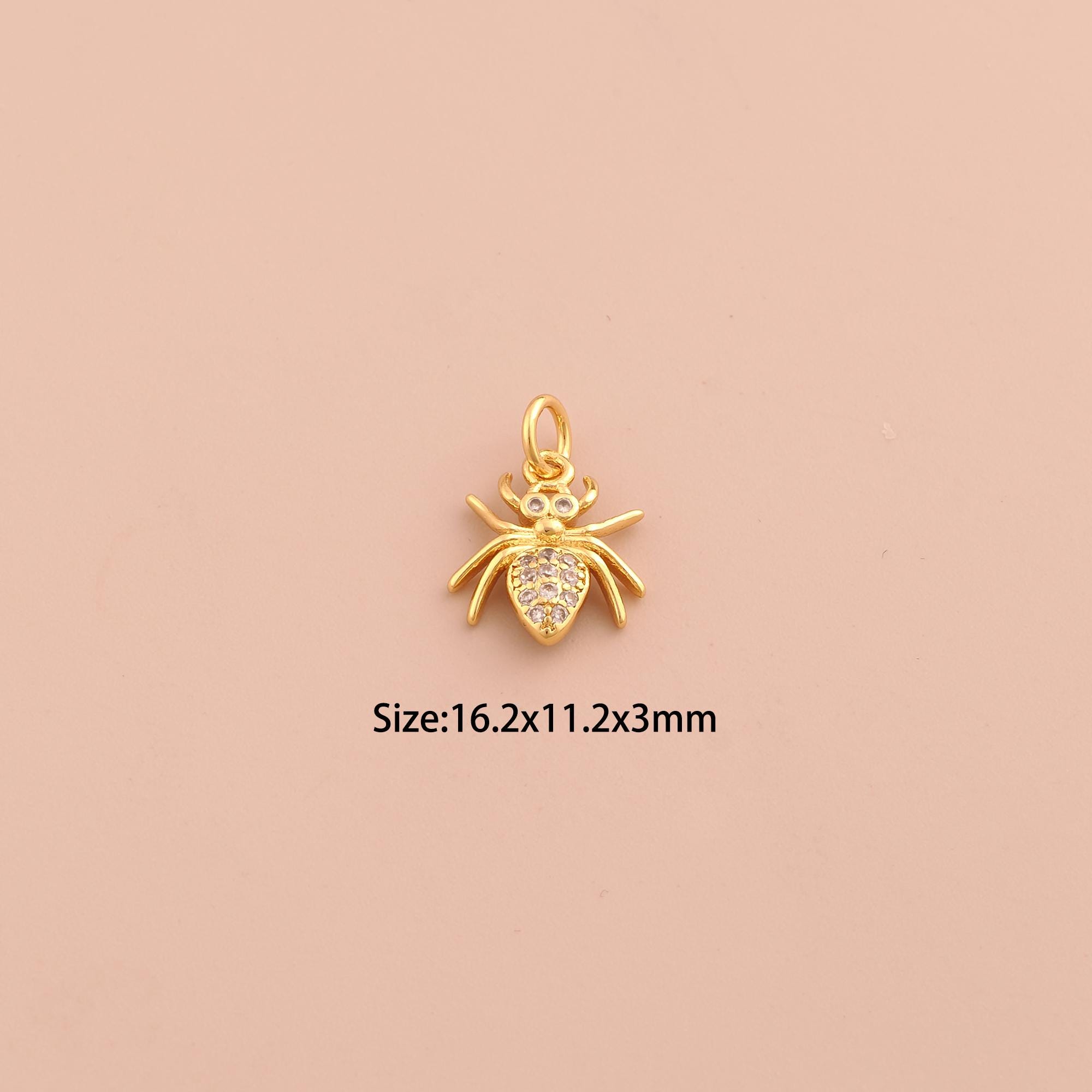 18K Gold Spider Charms,CZ Pave Spider Charms Pendants,Spider Charm for DIY Jewelry Making Supply