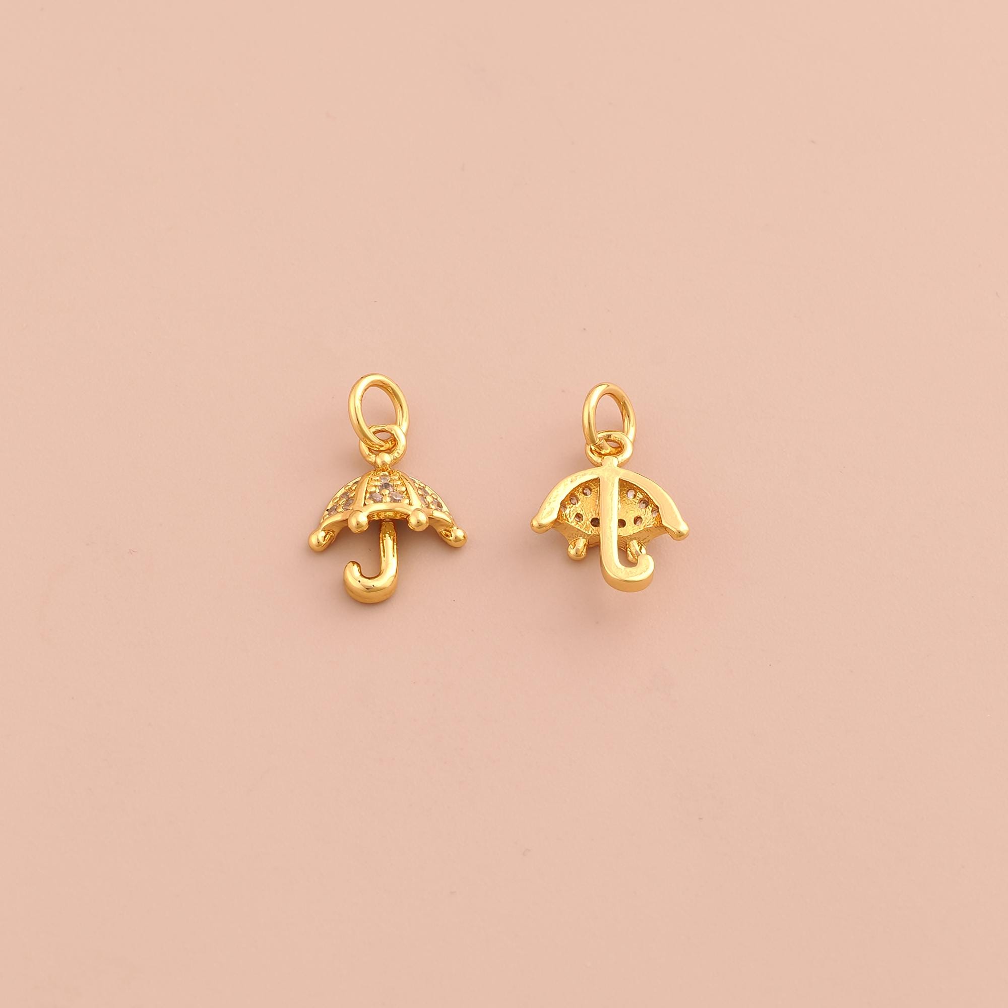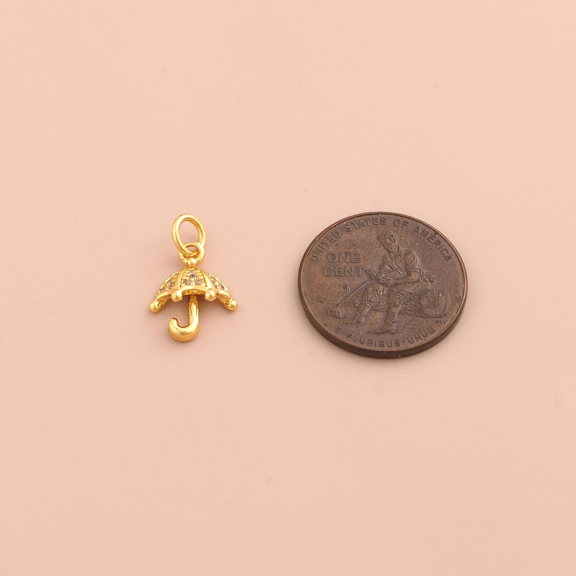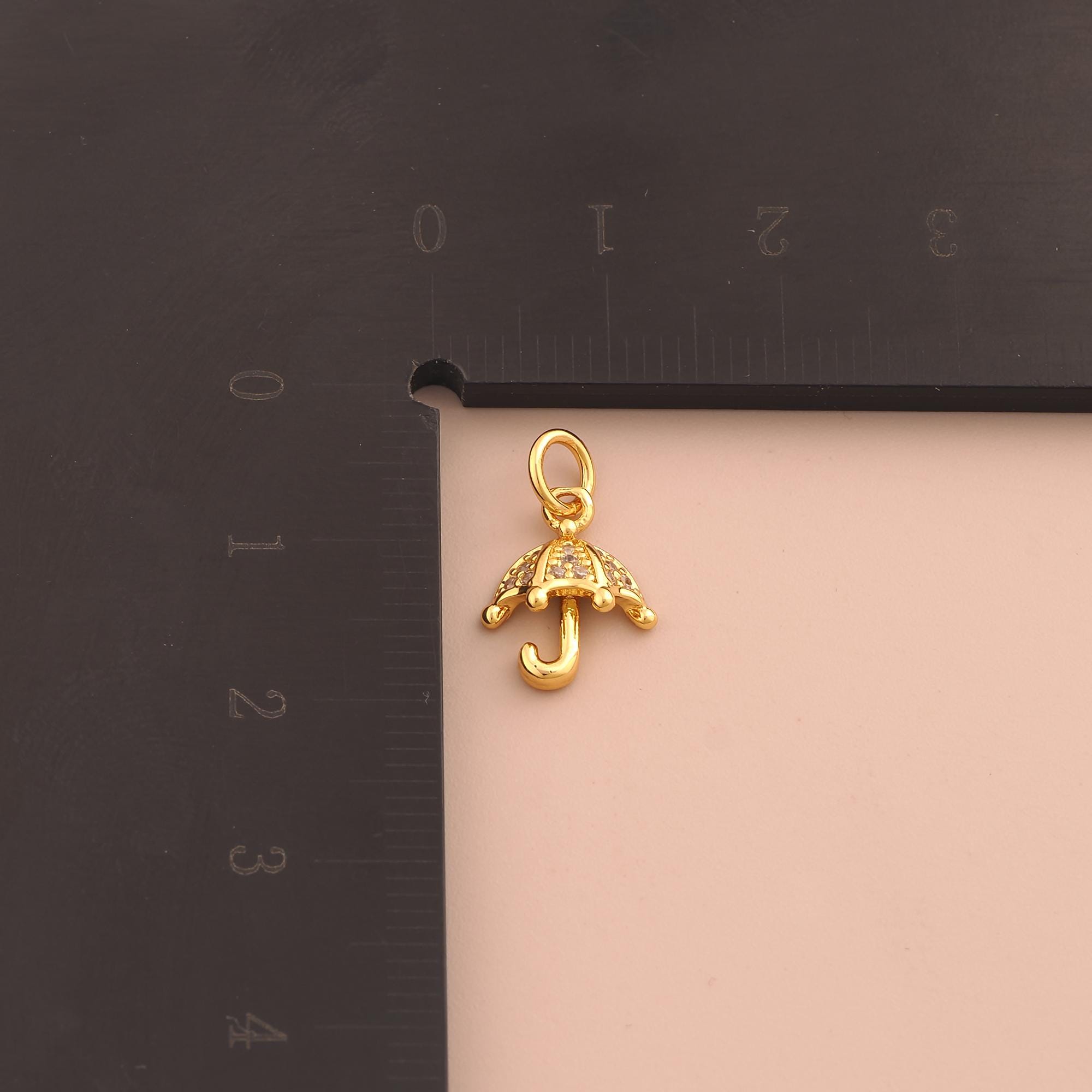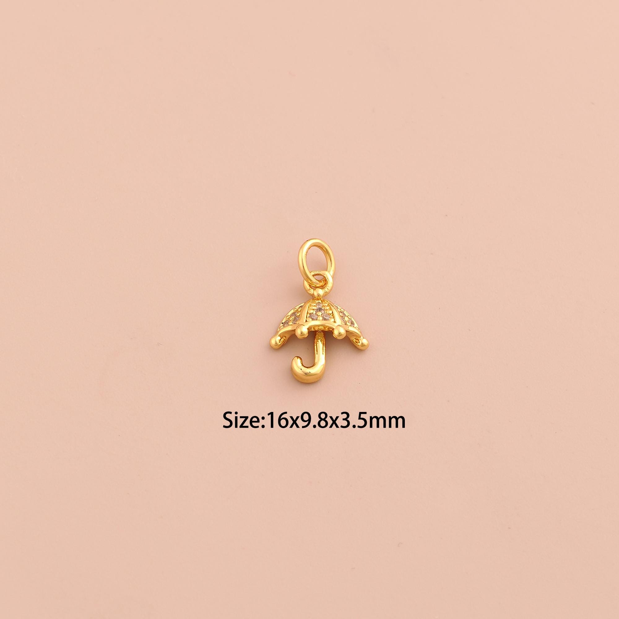 18K Gold Umbrella Charms,CZ Pave Umbrella Charms Pendants,Umbrella Charm for DIY Jewelry Making Supply