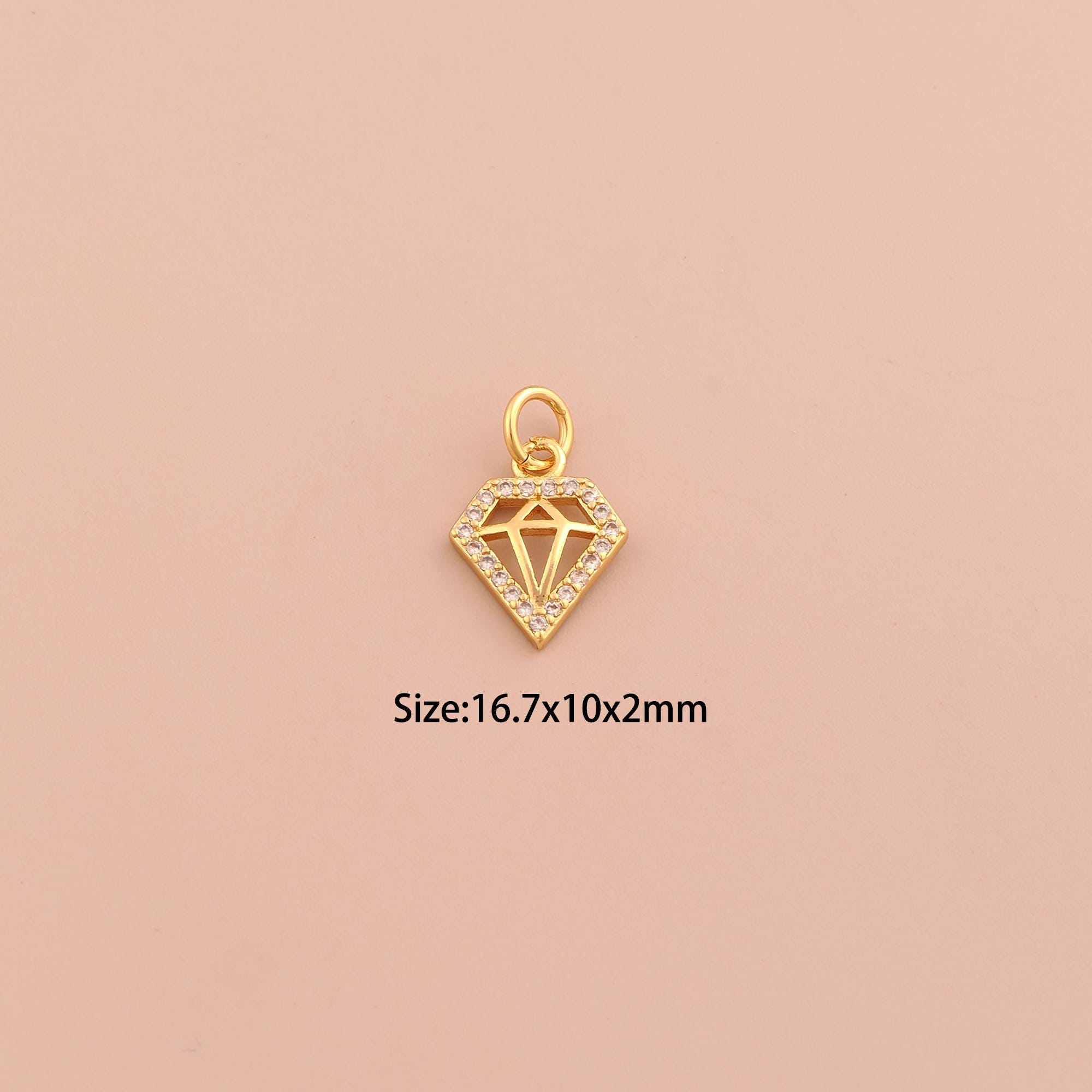 18K Gold Diamonds Charms,CZ Pave Diamonds Charms Pendants,Diamonds Charm for DIY Jewelry Making Supply