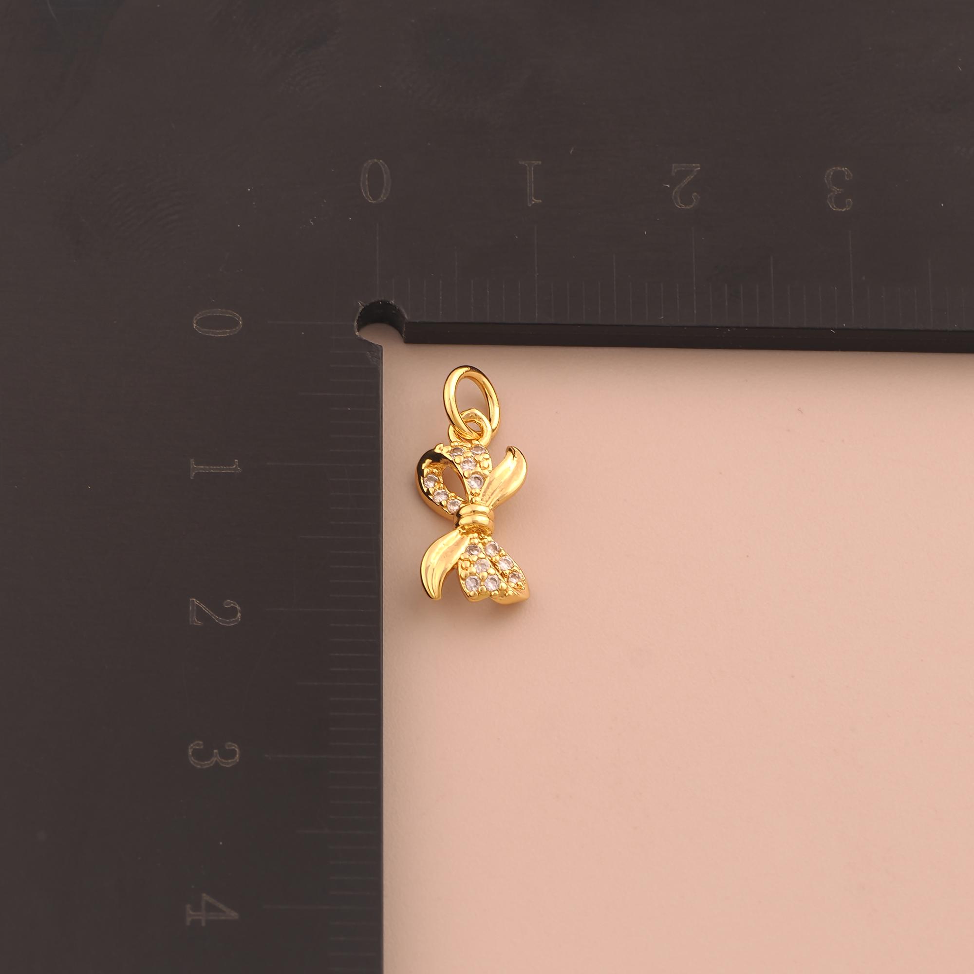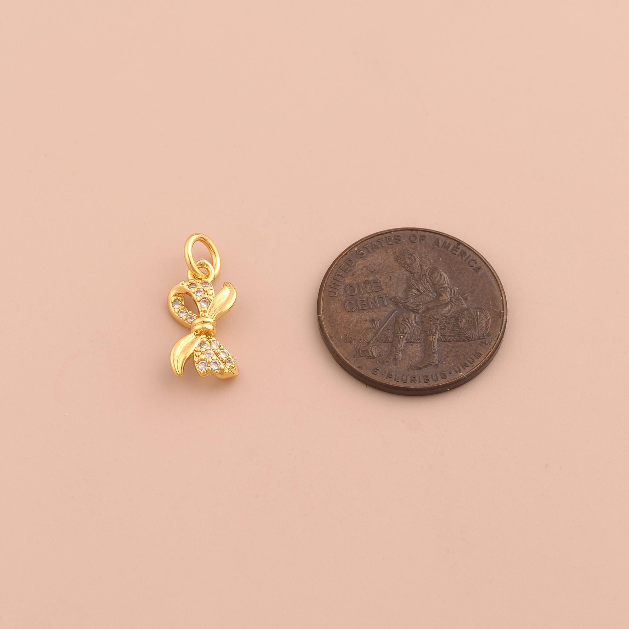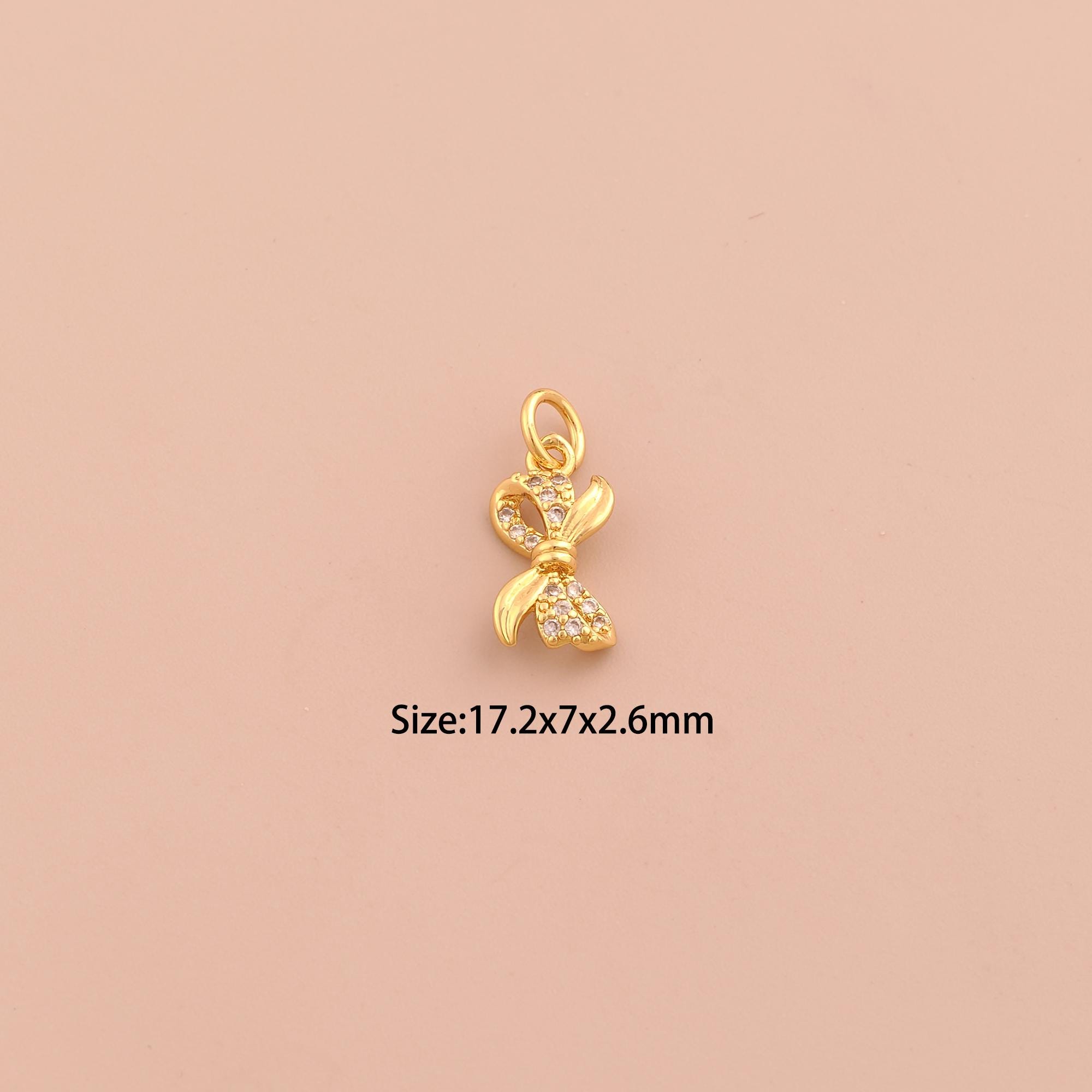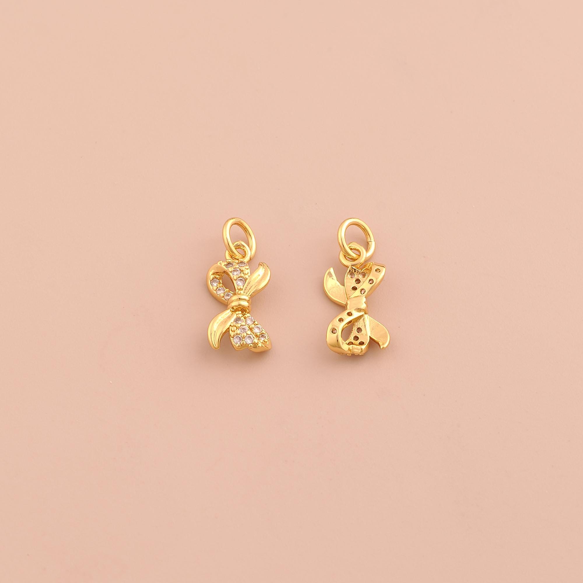 18K Gold Bow Charms,CZ Pave Tie Charms Pendants,Bow Charm for DIY Jewelry Making Supply