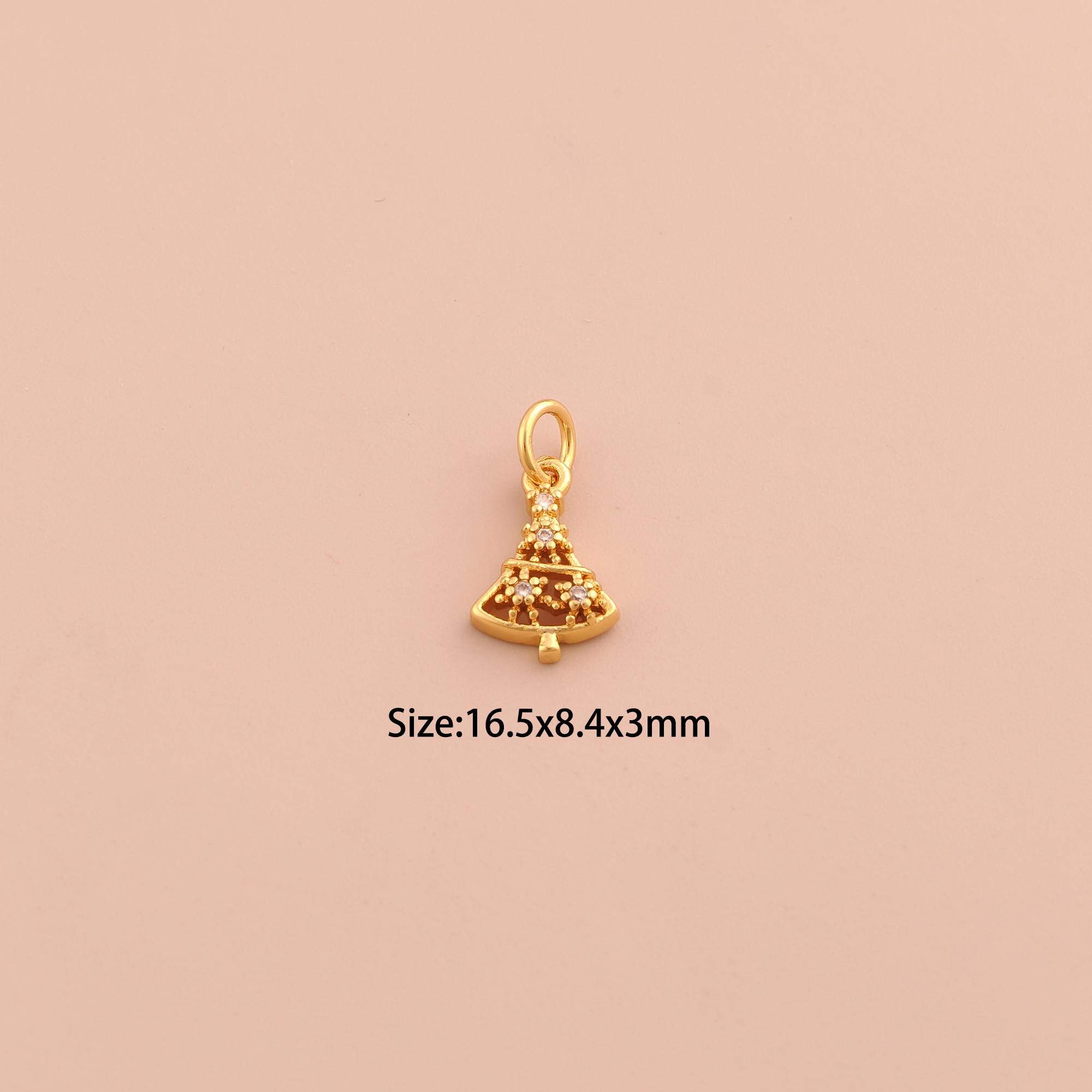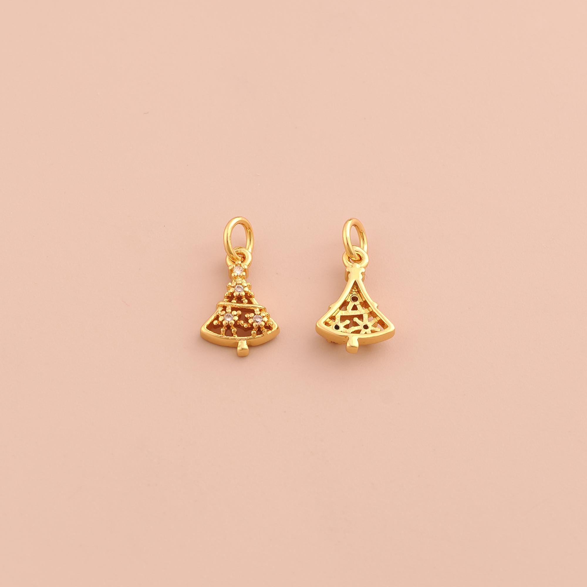 18K Gold Christmas Tree Charms,CZ Pave Christmas Charms Pendants,Tree Charm for DIY Jewelry Making Supply