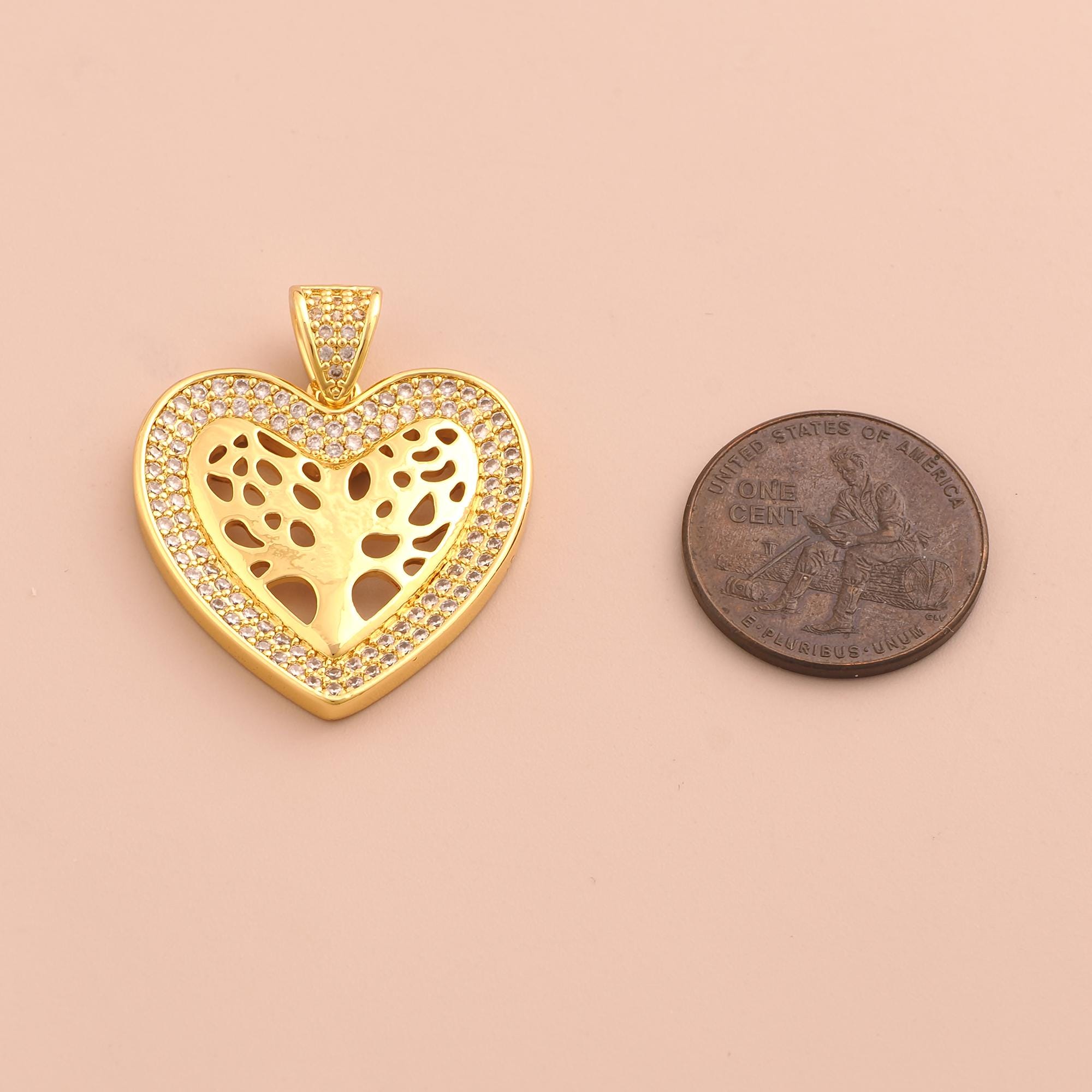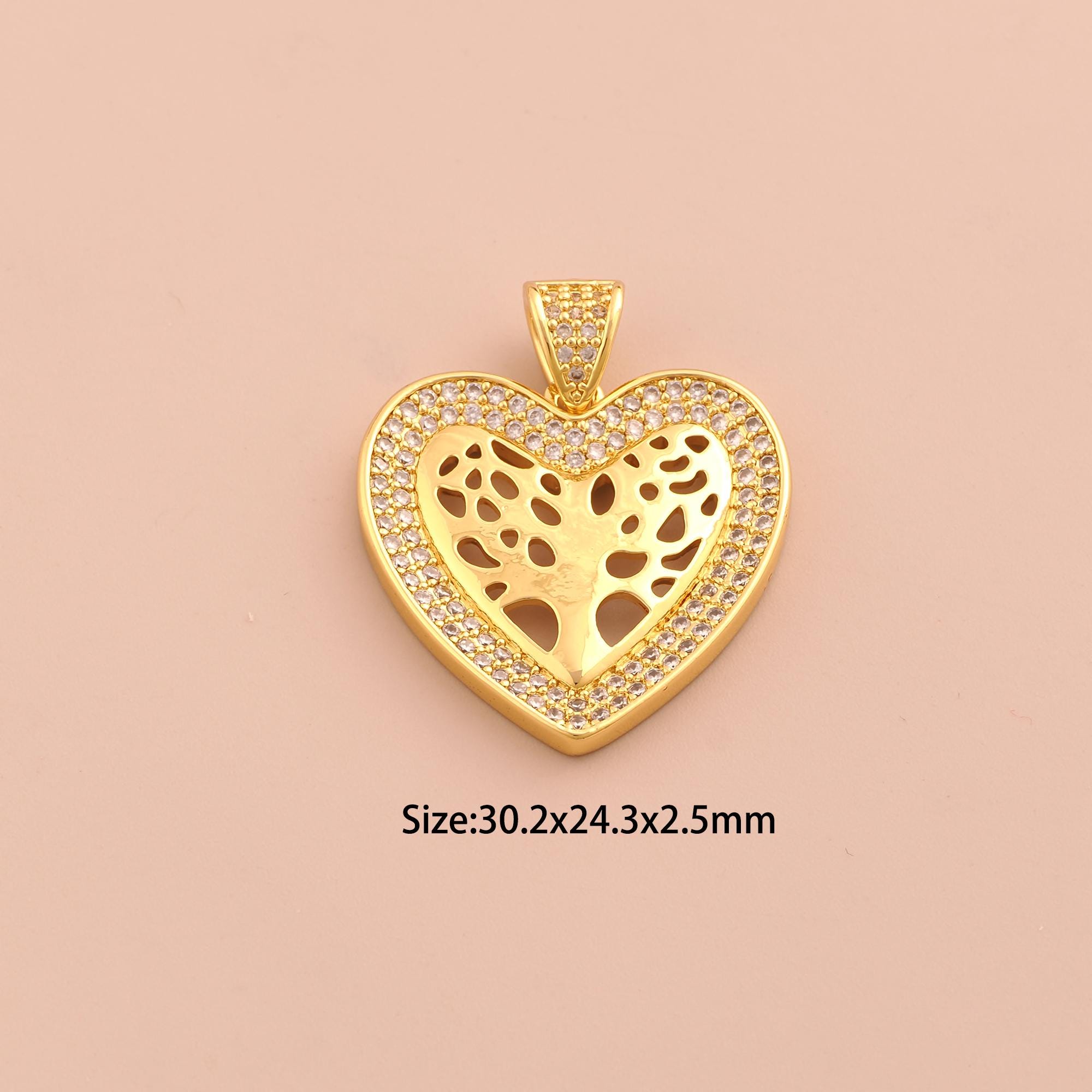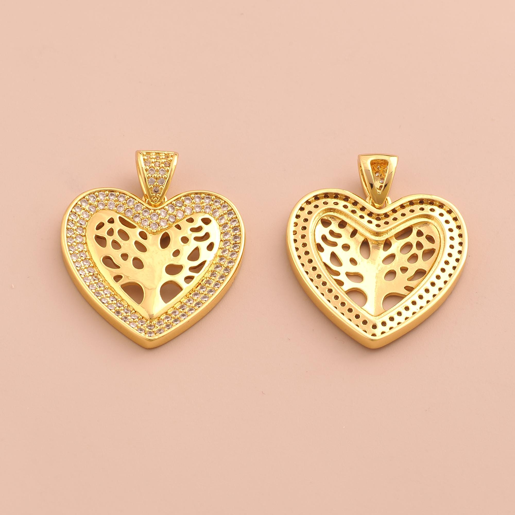 18K Gold Heart Charms,CZ Pave Tree of Life Charms Pendants,Tree Charm for DIY Jewelry Making Supply