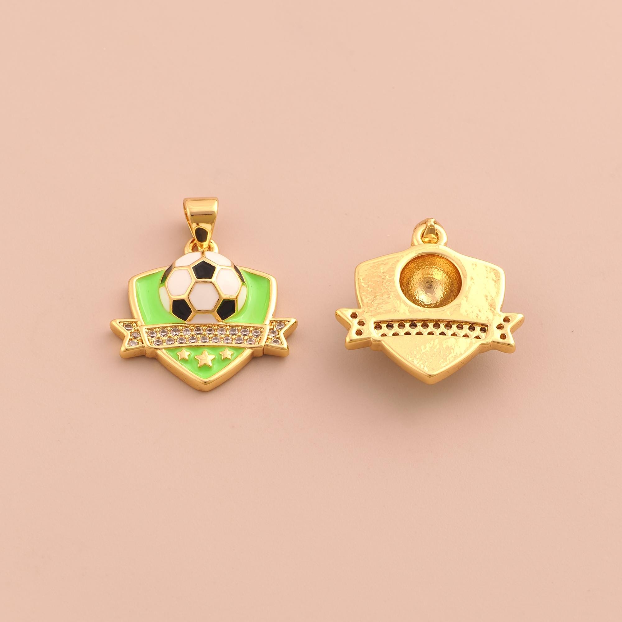 18K Gold Football Team Logo Charms,Enamel Football Charms Pendants,CZ Pave Team Logo Charm for DIY Jewelry Making Supply