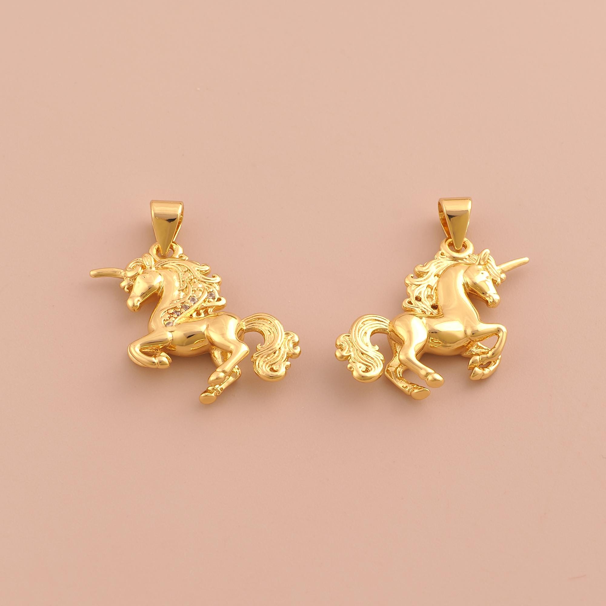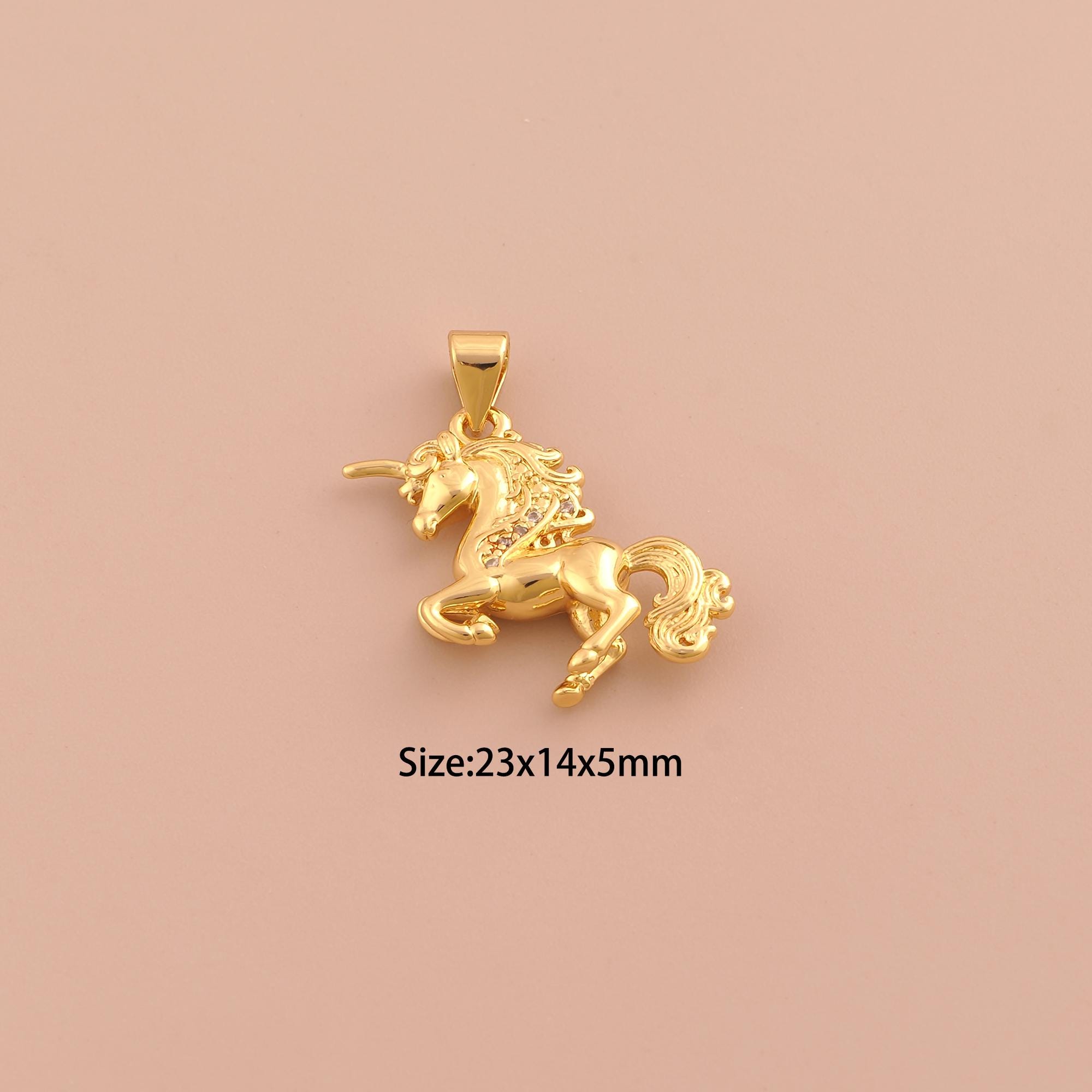 18K Gold Unicorn Charms,CZ Pave Unicorn Charms Pendants,Unicorn Charm for DIY Jewelry Making Supply