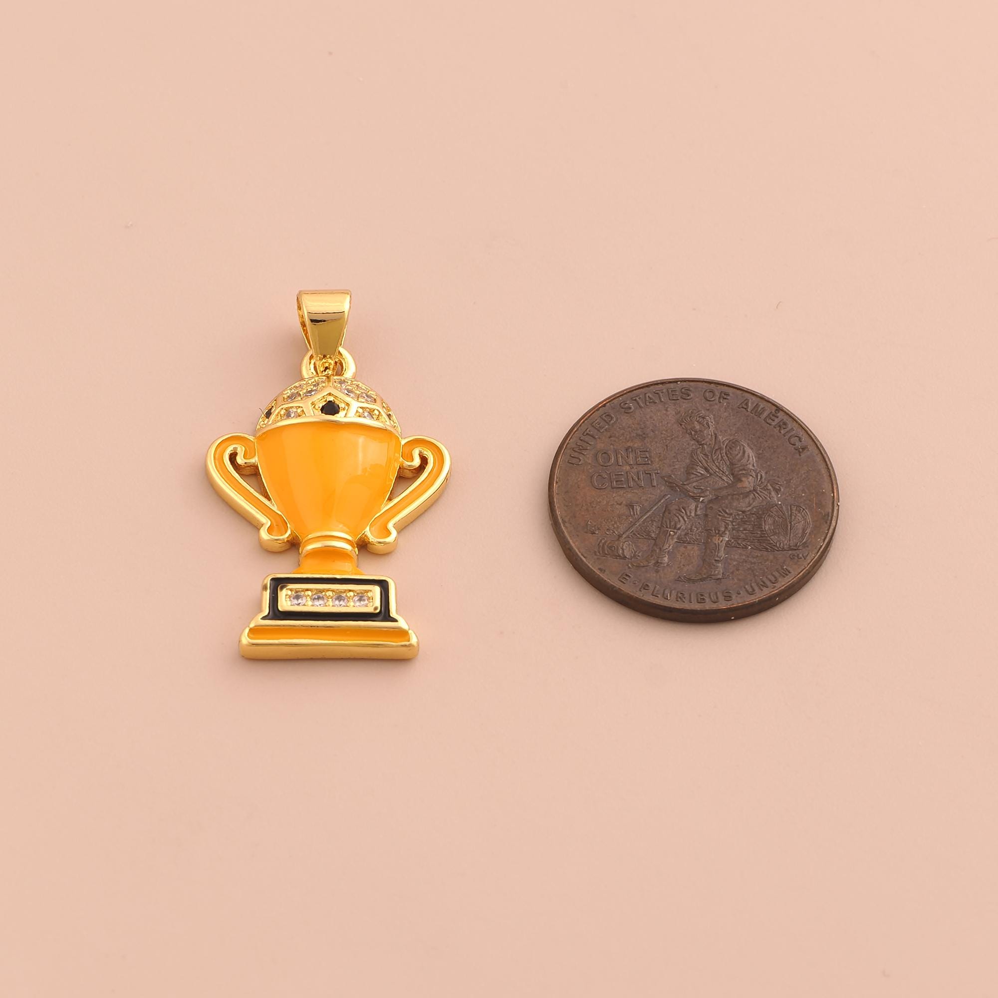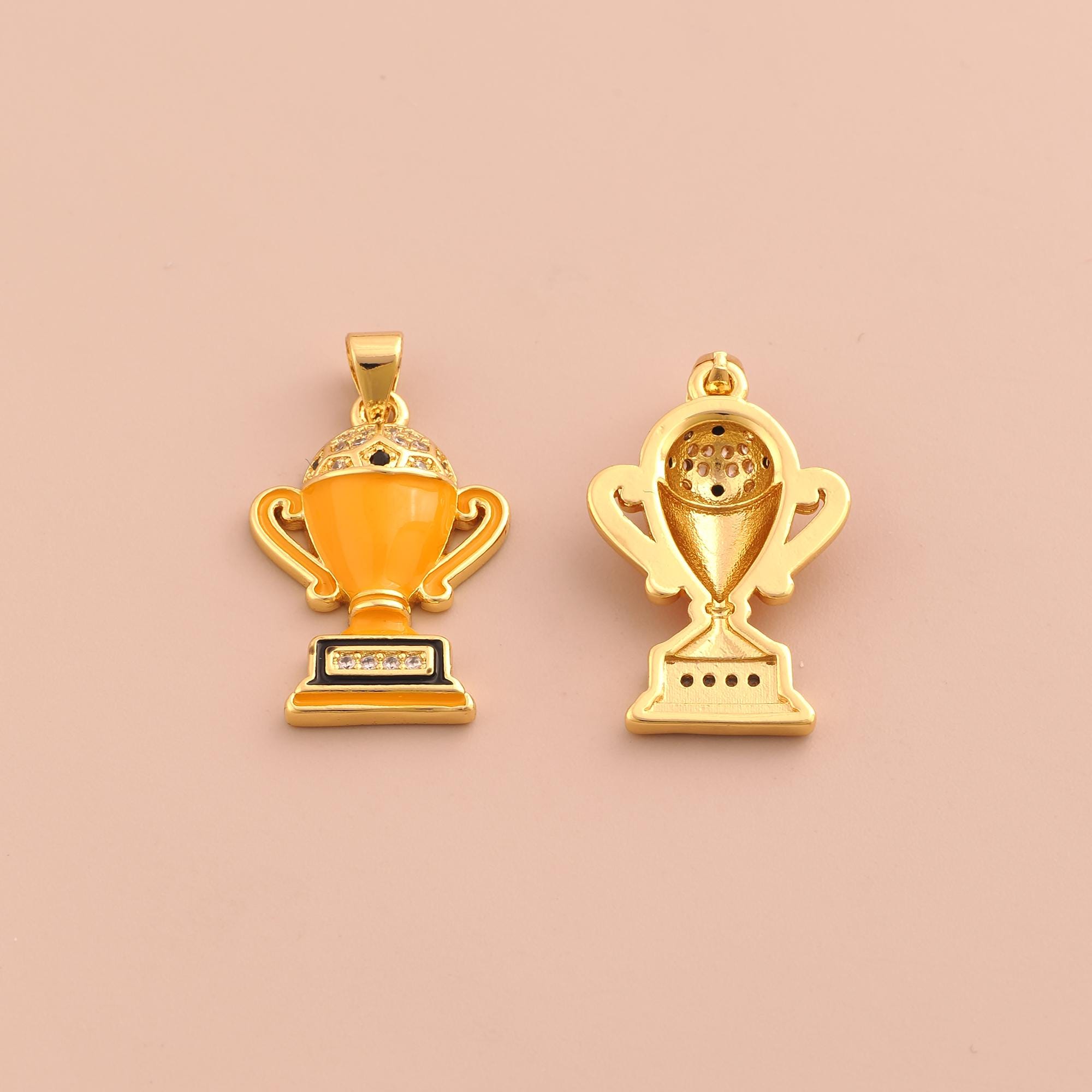 18K Gold Trophy Charms,CZ Pave Trophy Charms Pendants,Enamel Trophy Charm for DIY Jewelry Making Supply