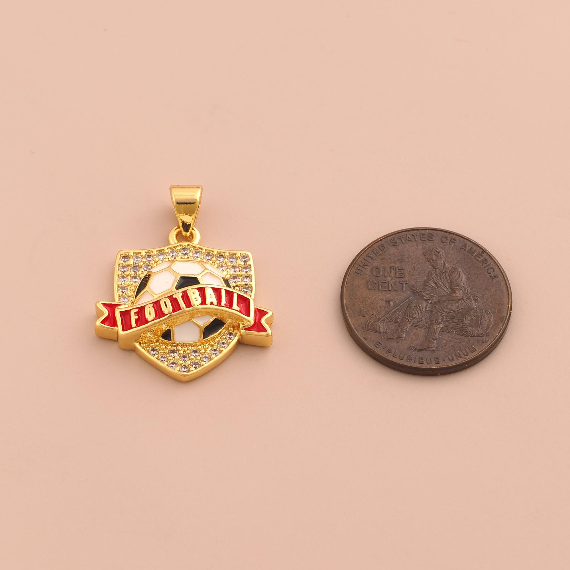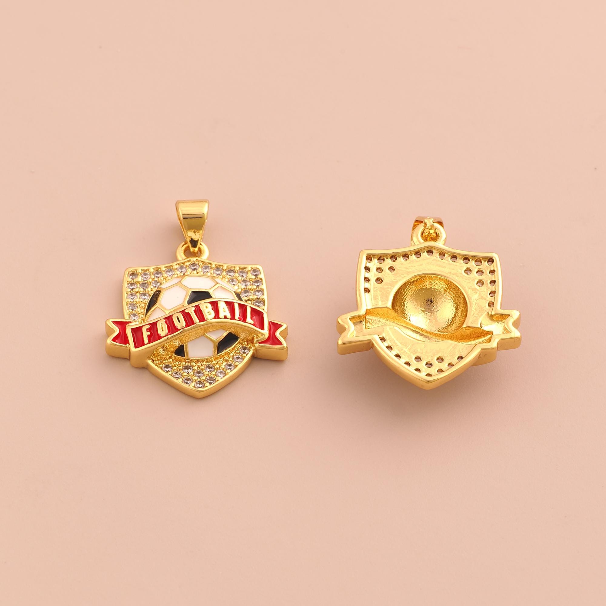 18K Gold Football Team Logo Charms,Enamel Football Charms Pendants,CZ Pave Team Logo Charm for DIY Jewelry Making Supply