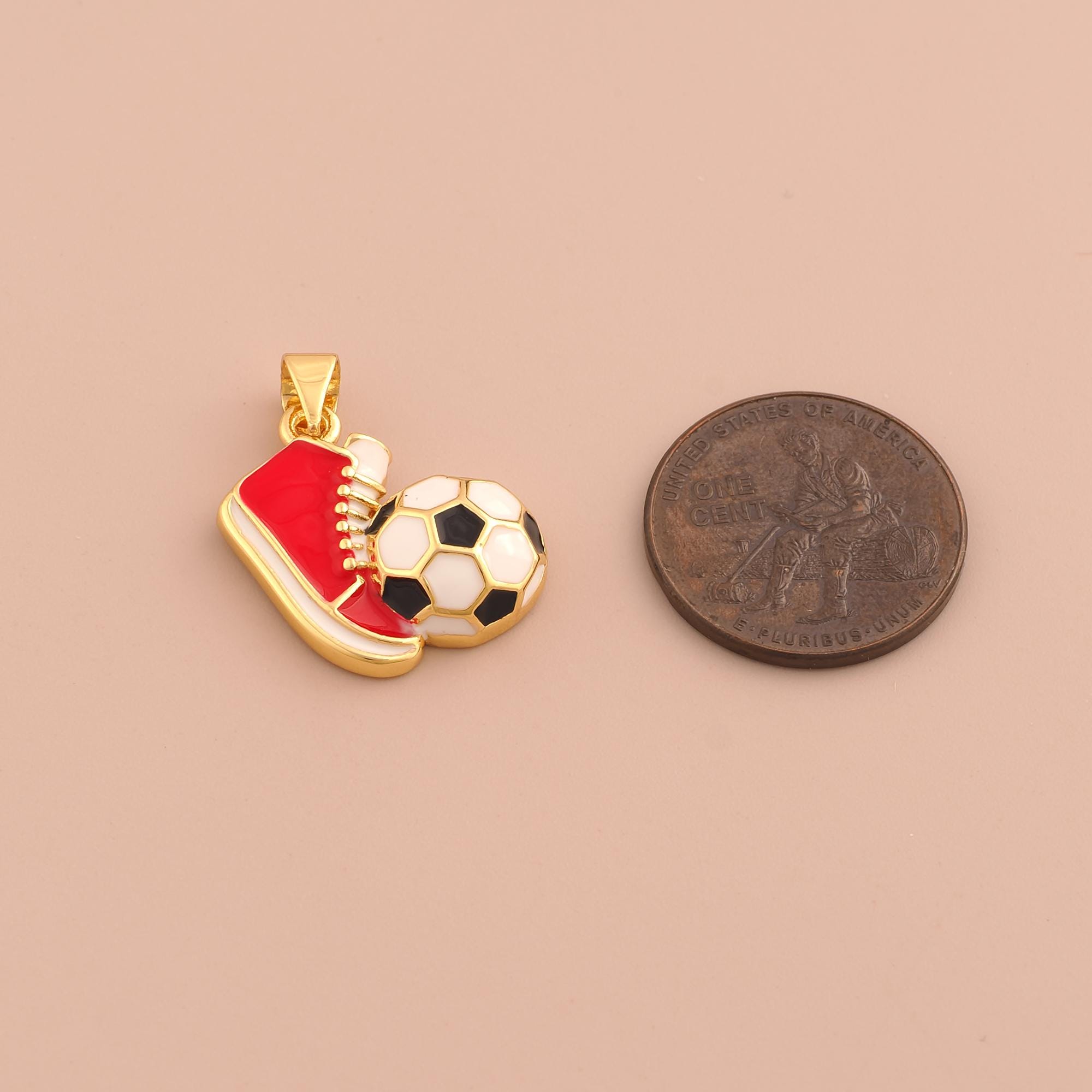 18K Gold Football Charms,Sneaker Charms Pendants,Enamel Sports Charm for DIY Jewelry Making Supply