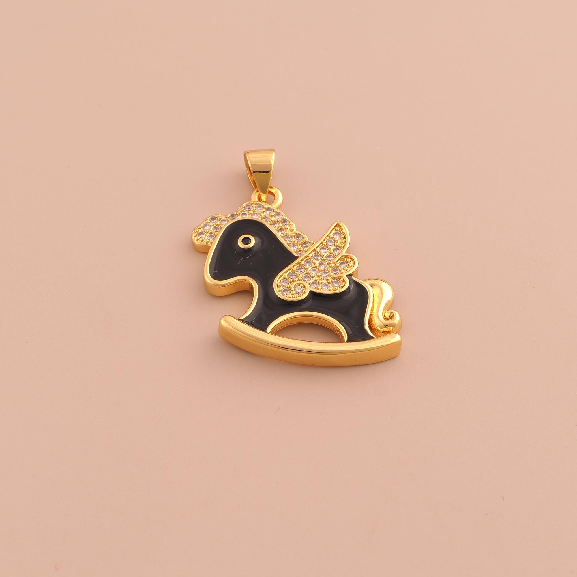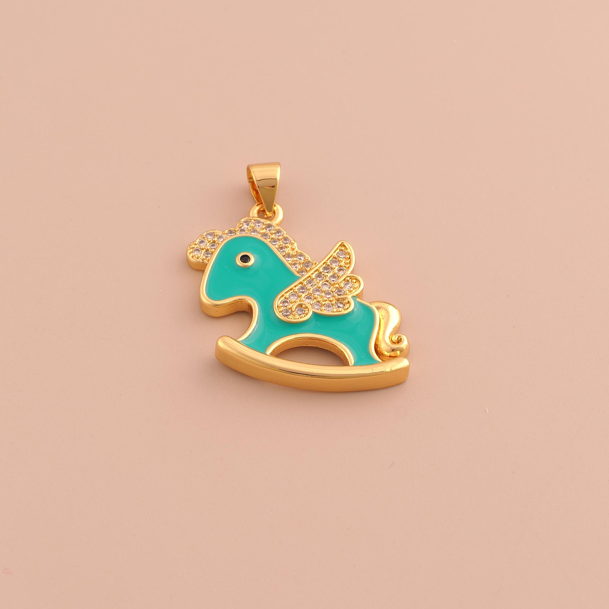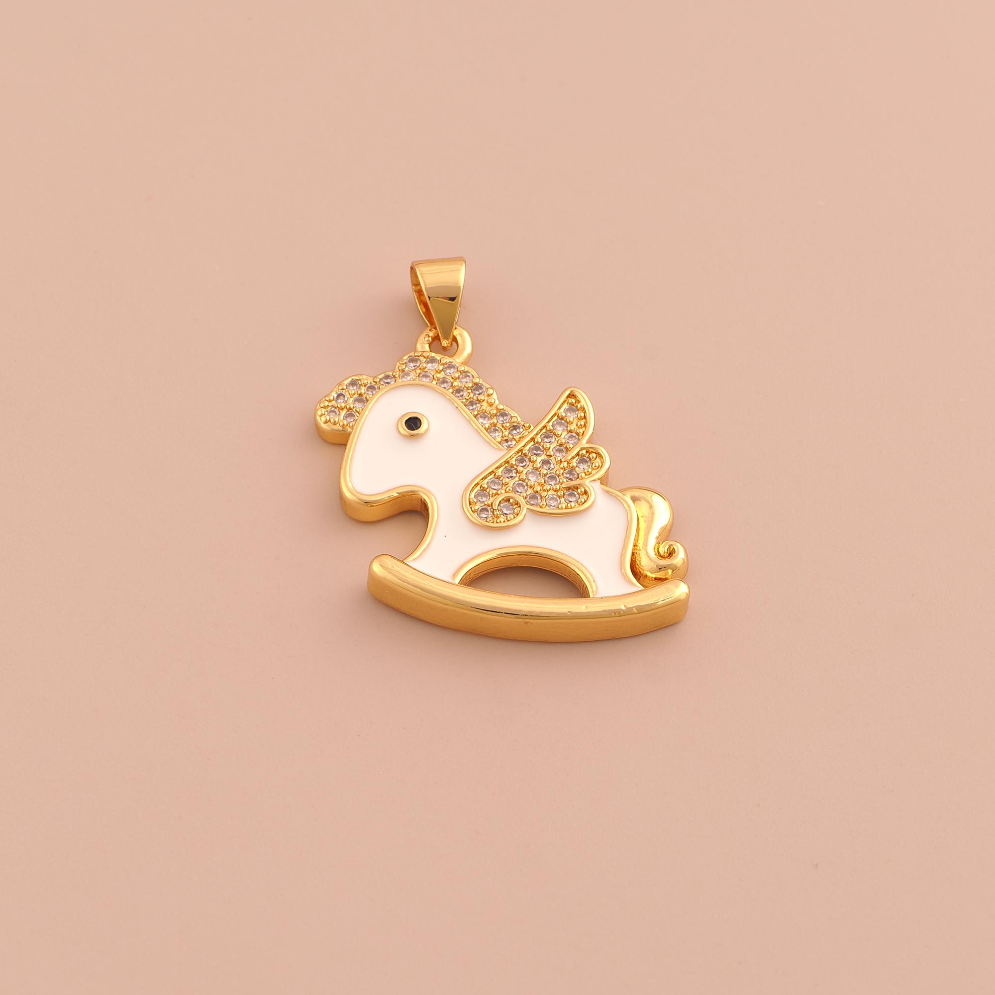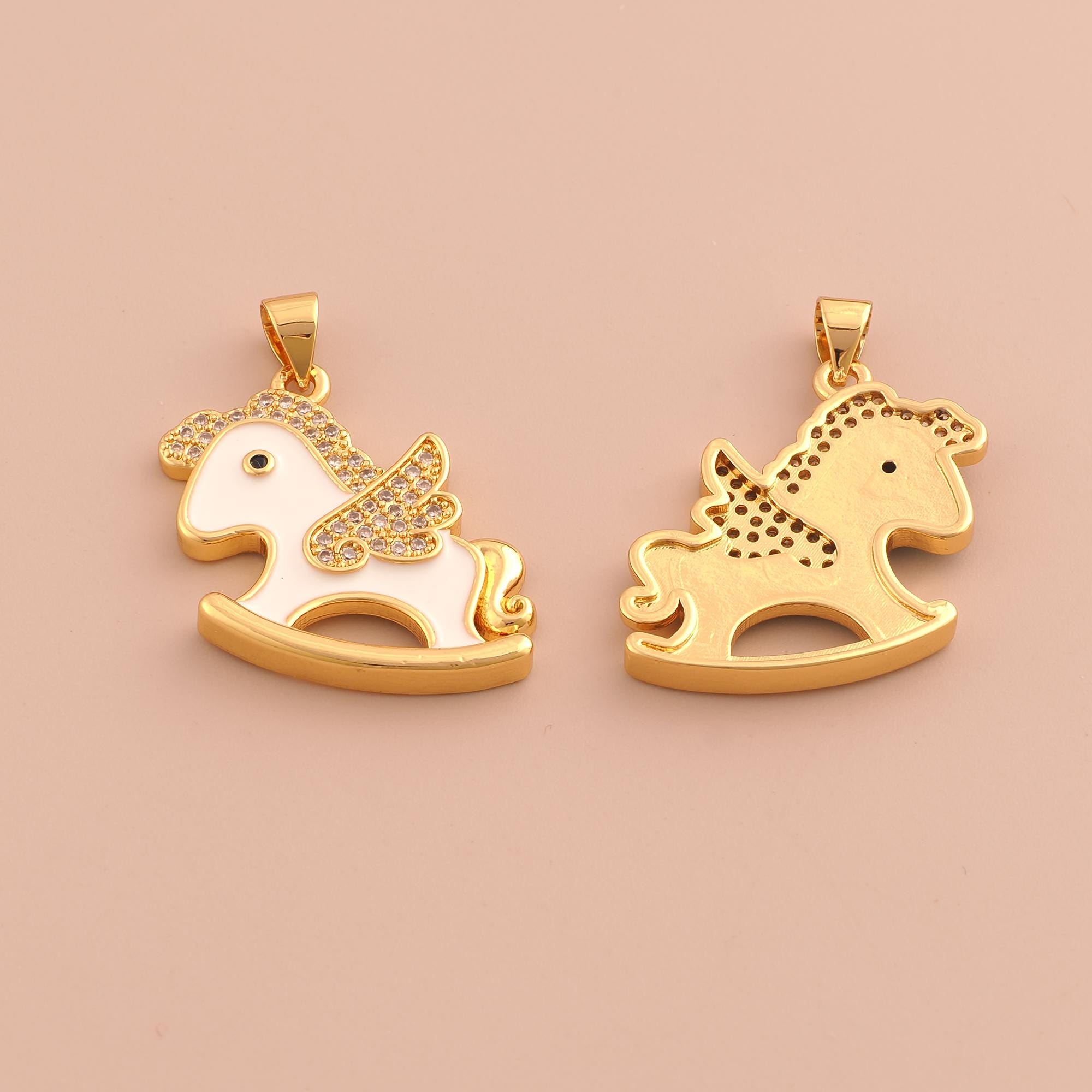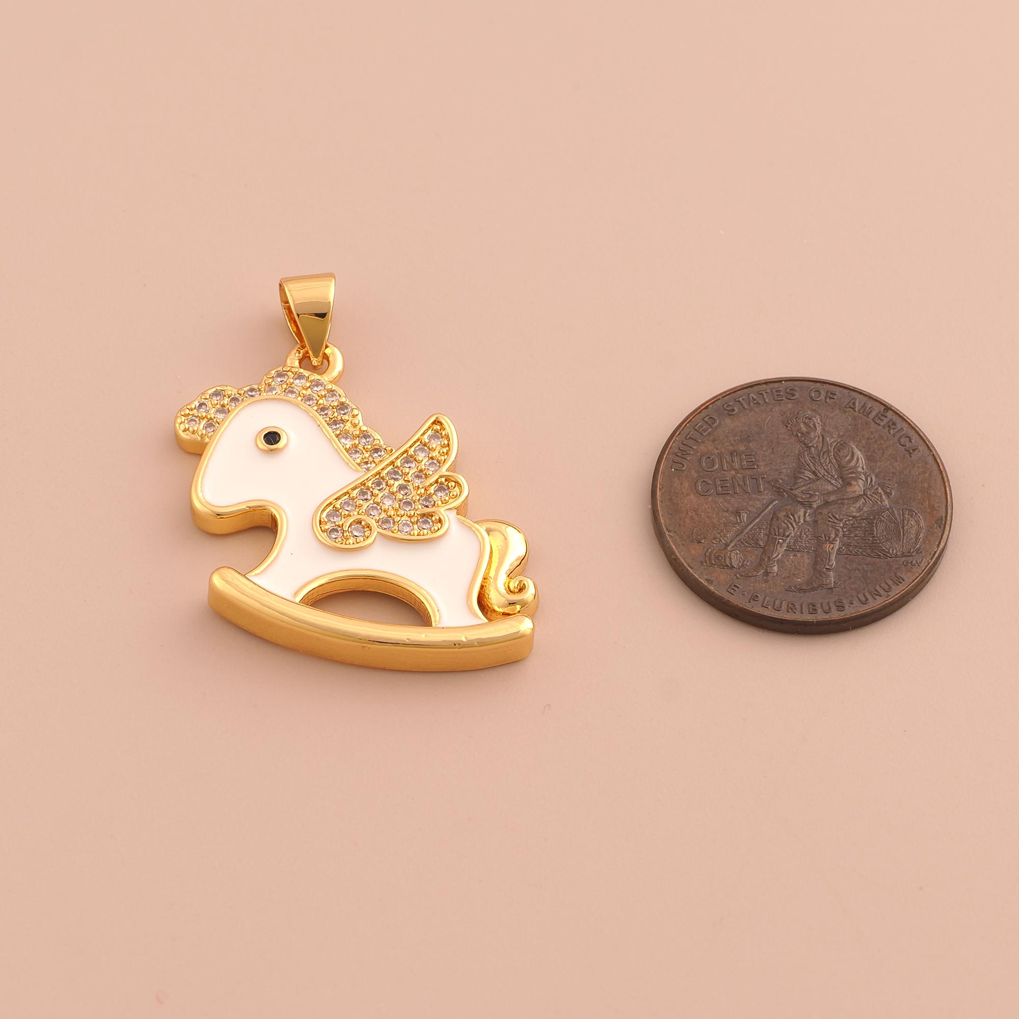 18K Gold Pegasus Charms,CZ Pave Pegasus Charms Pendants,Enamel Pegasus Charm for DIY Jewelry Making Supply