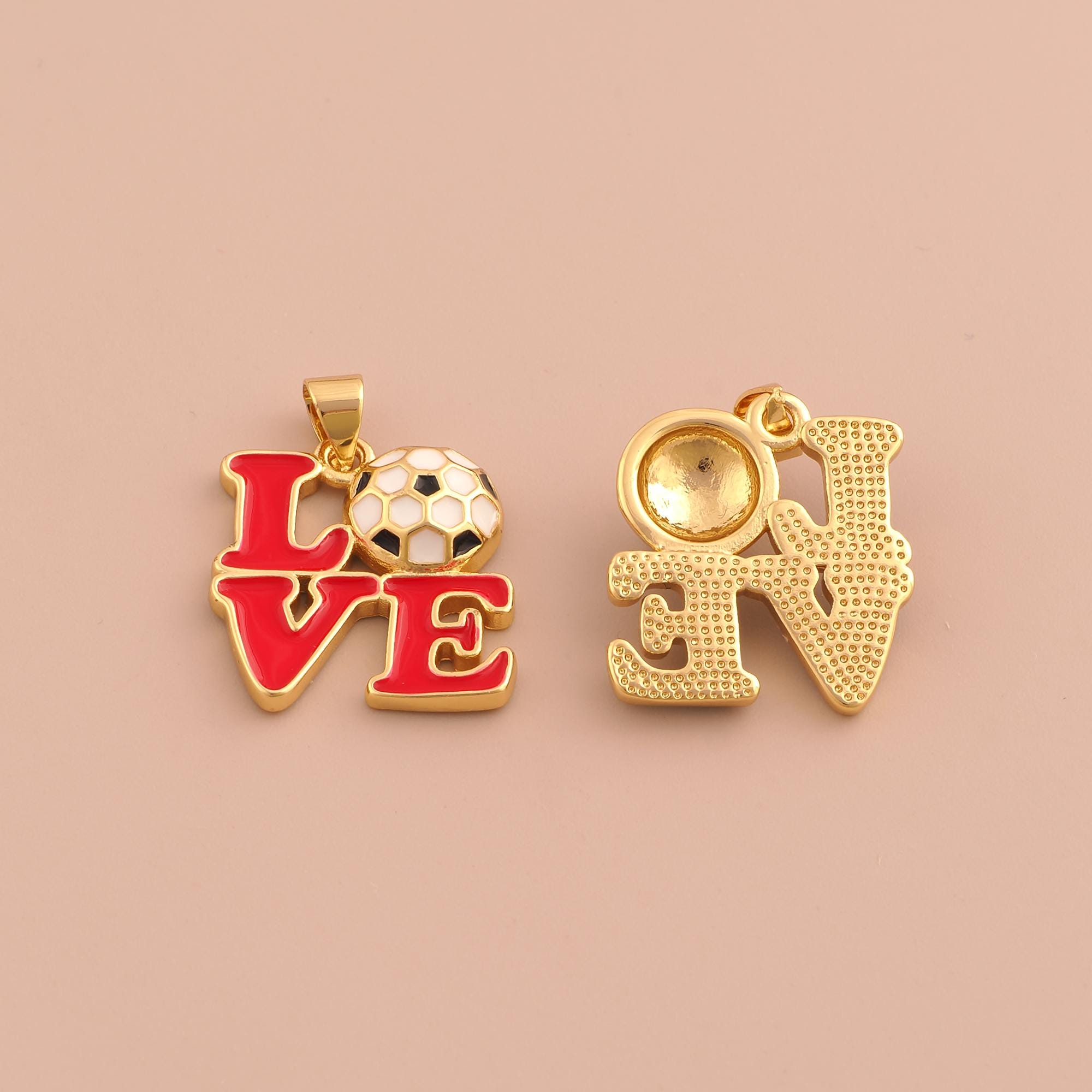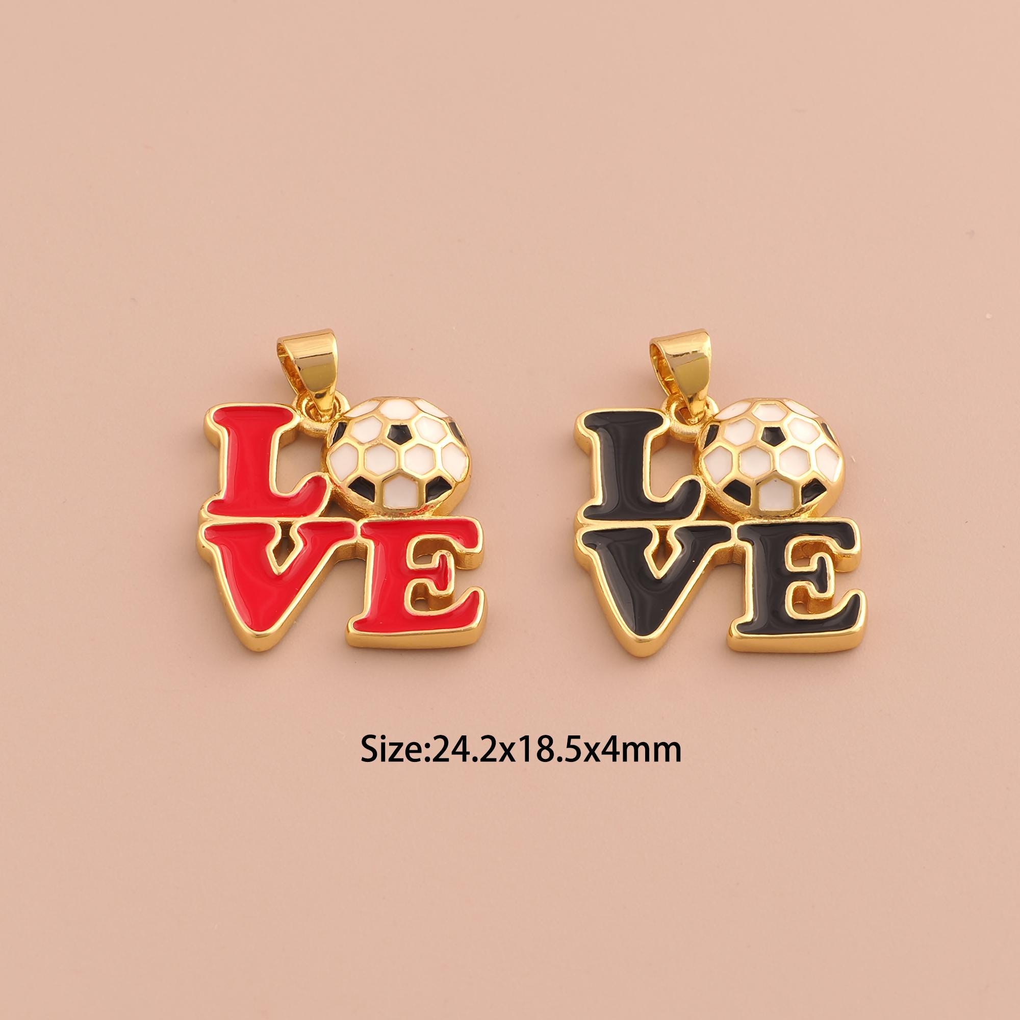 18K Gold LOVE Football Charms,Football Charms Pendants,Enamel Sports Charm for DIY Jewelry Making Supply