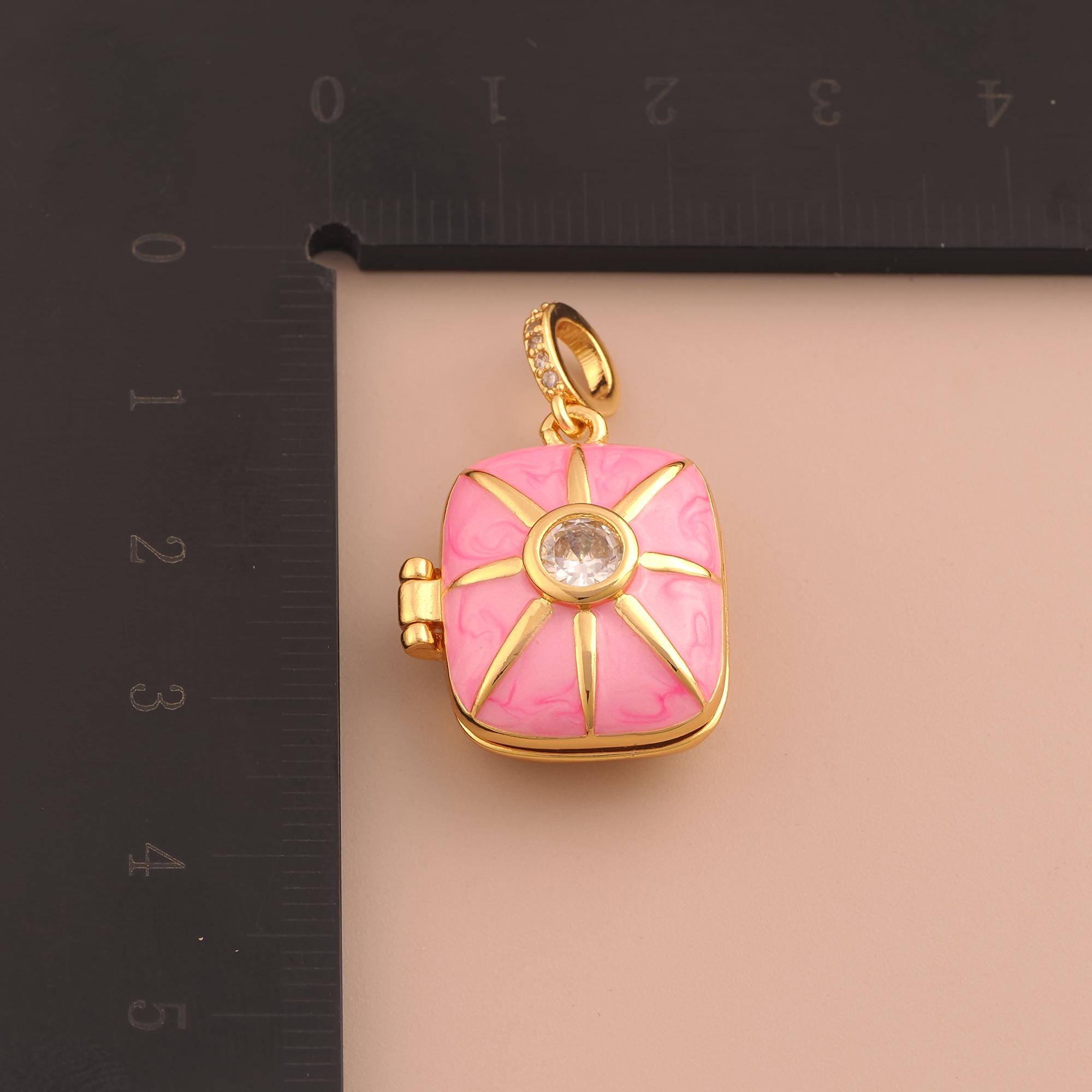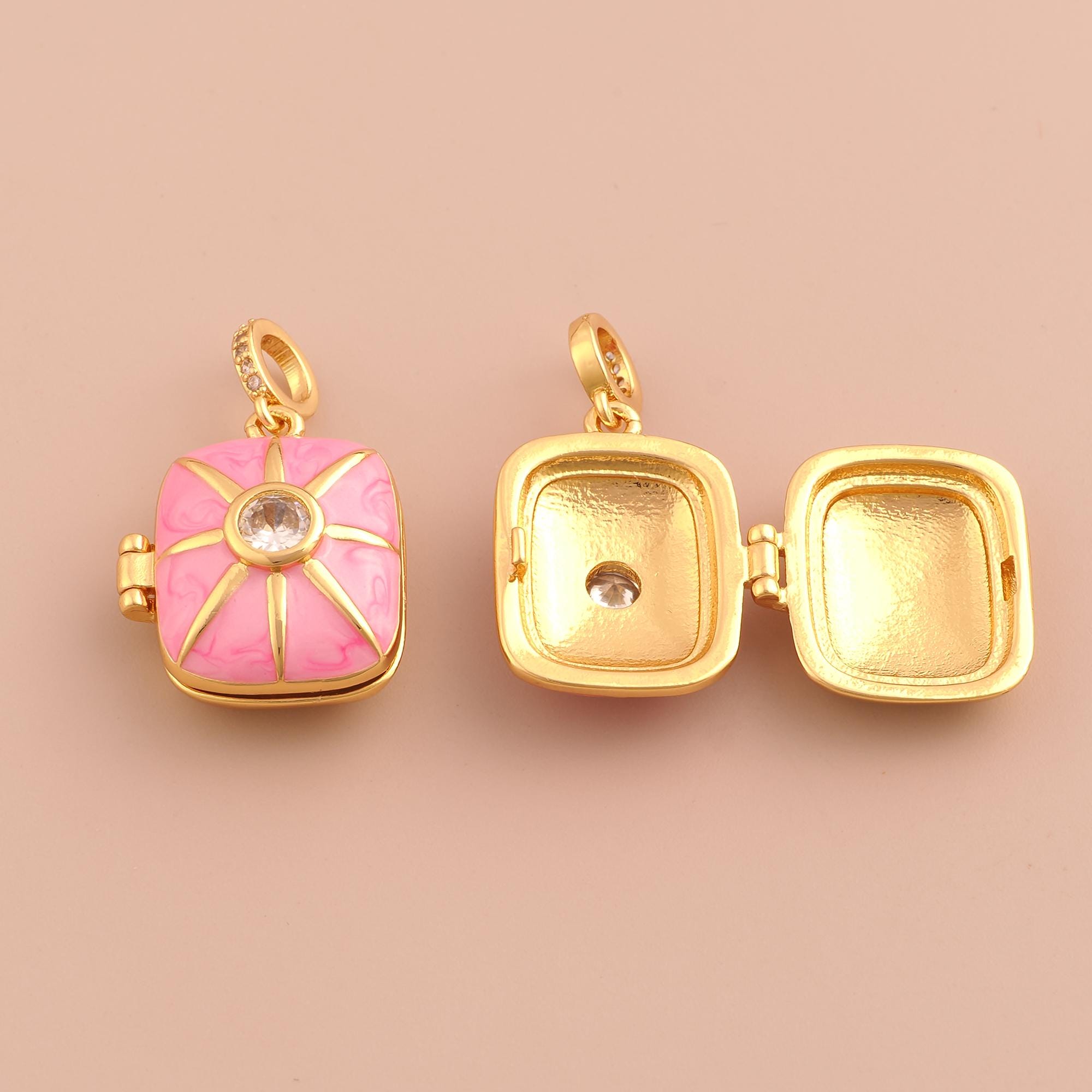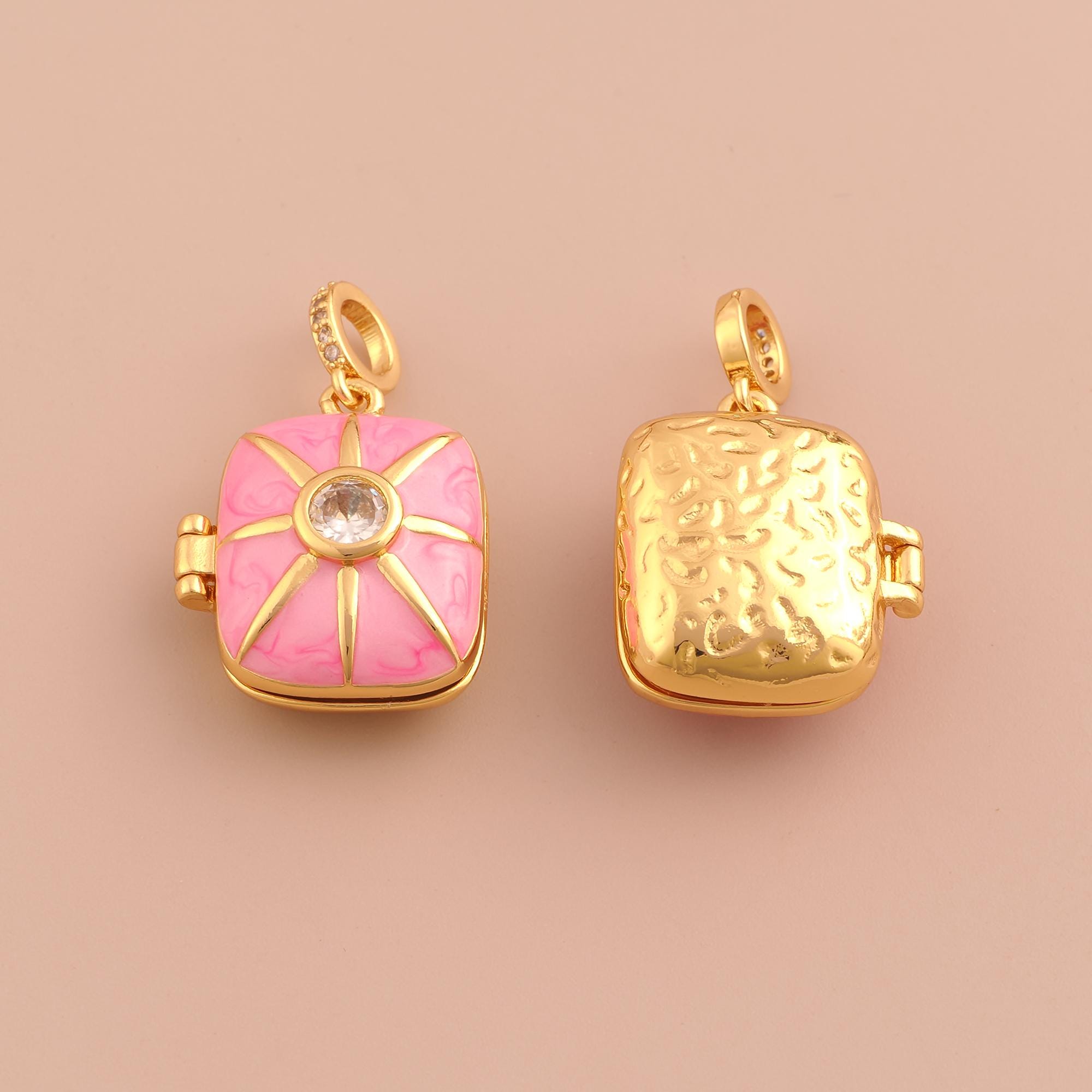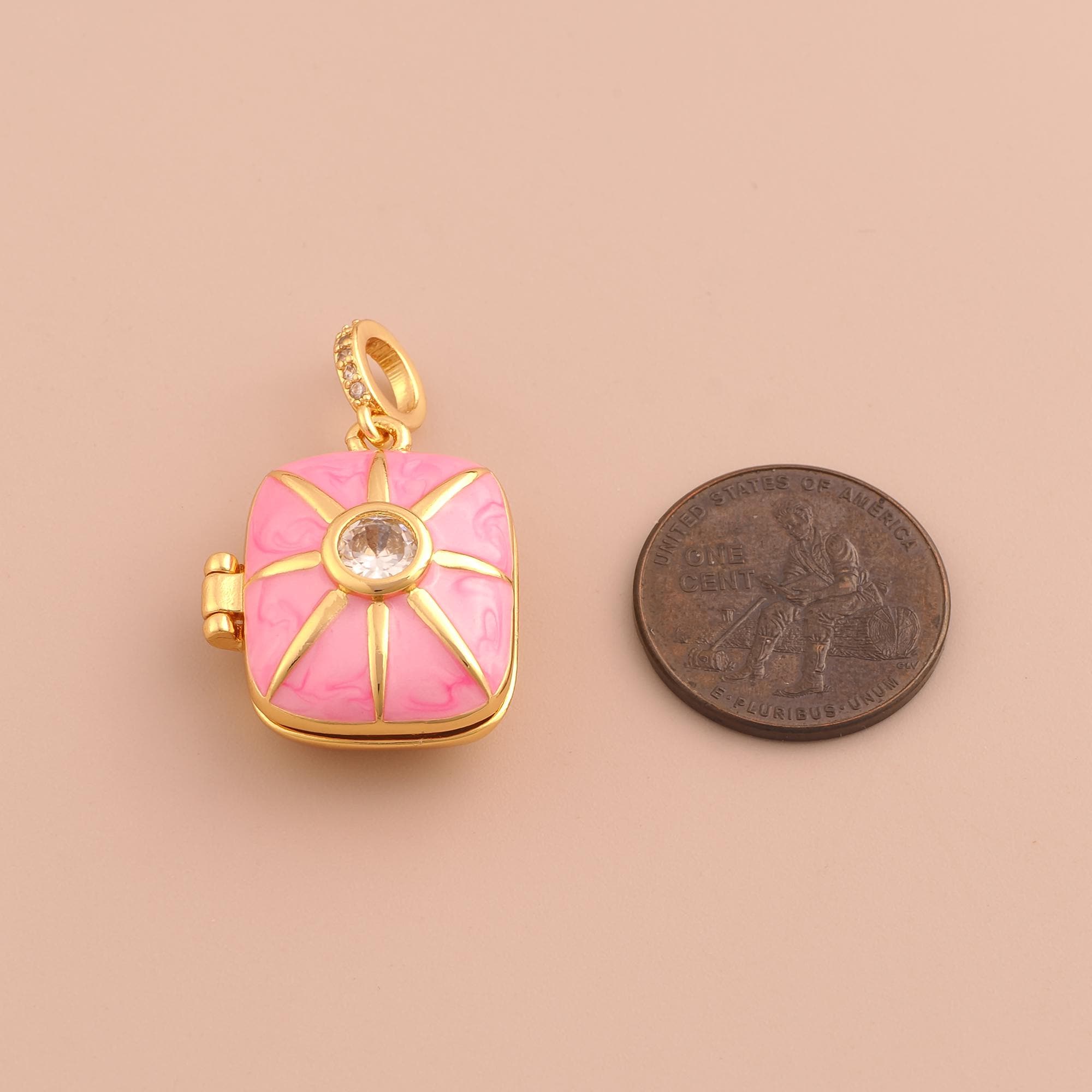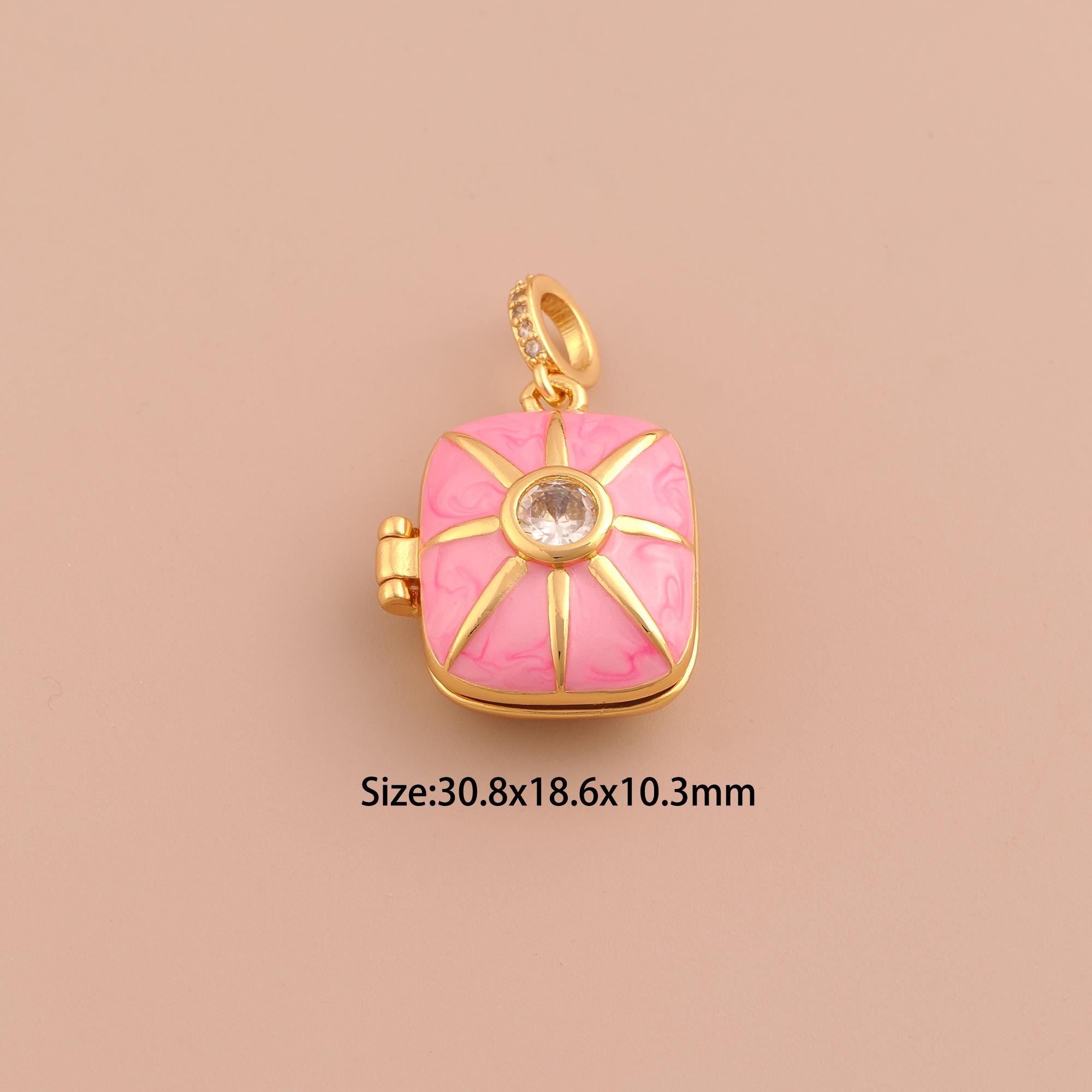 18K Gold Sun Charms,CZ Pave Photo Frame Charms Pendants,Enamel Sunburst Charm for DIY Jewelry Making Supply