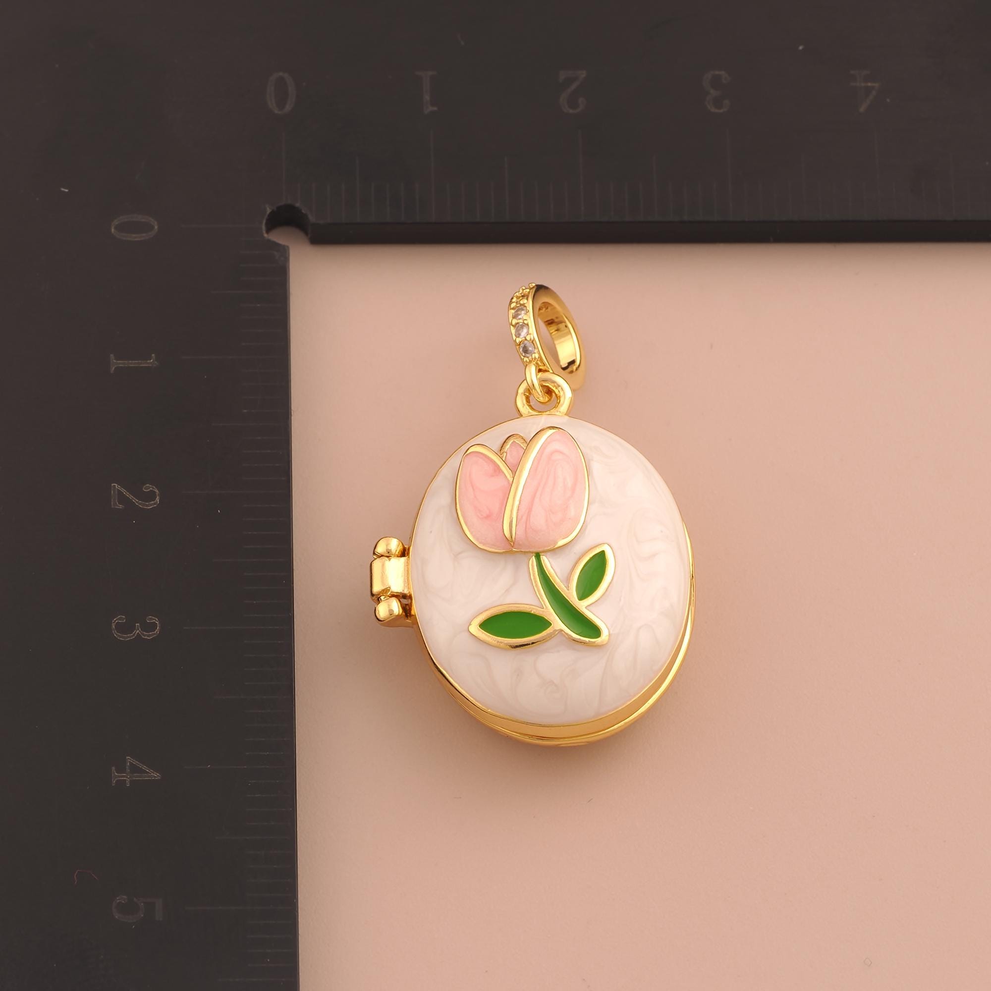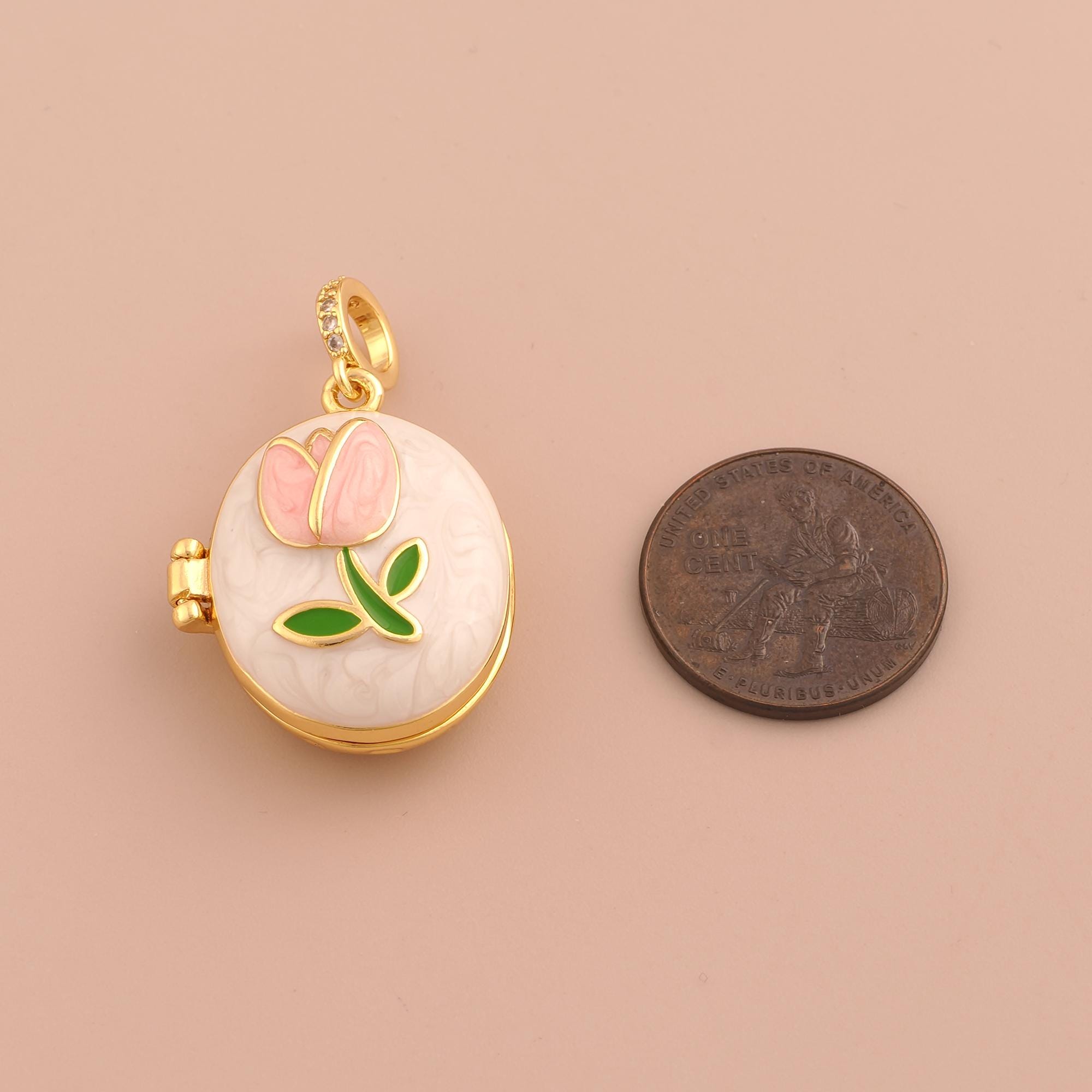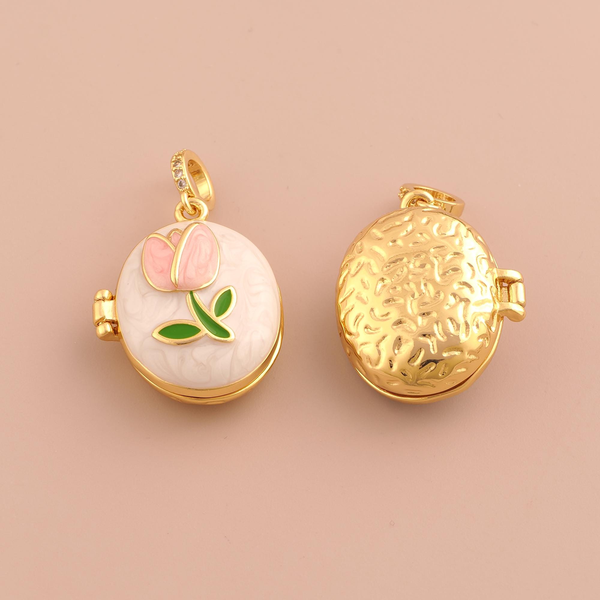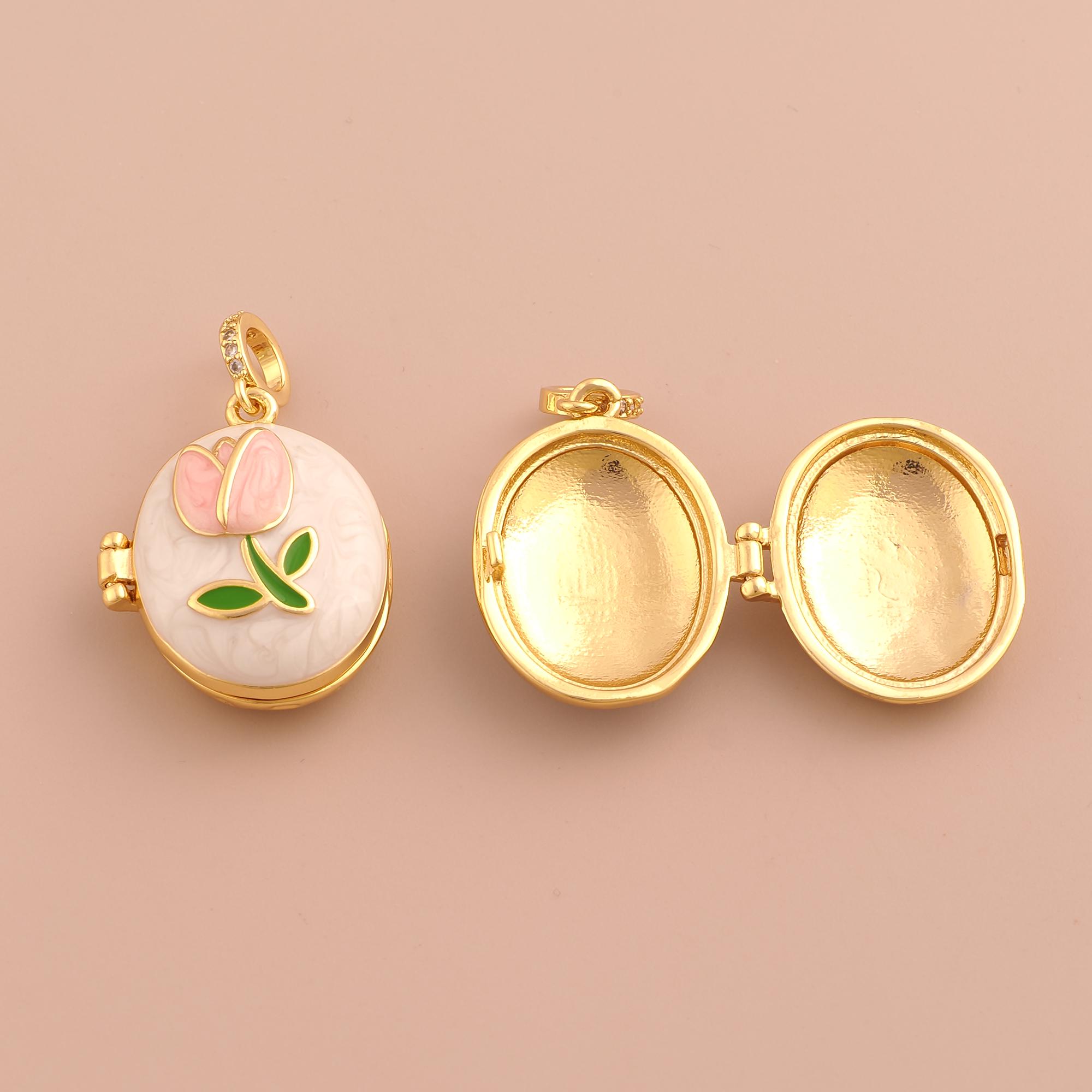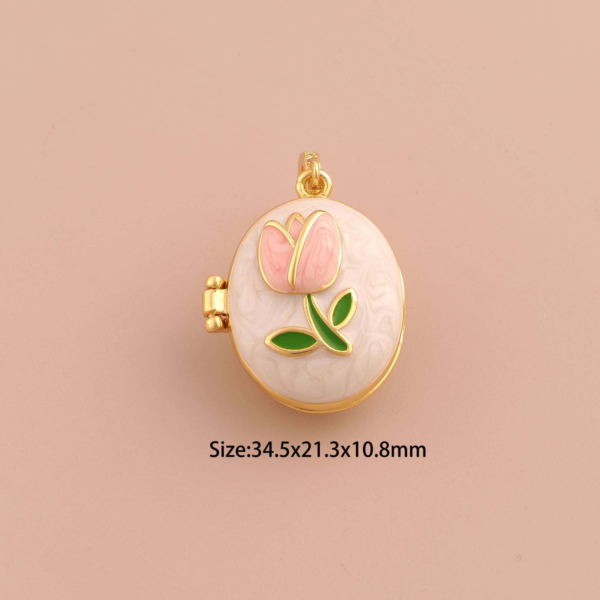 18K Gold Tulip Charms,Enamel Photo Frame Charms Pendants,Flower Charm for DIY Jewelry Making Supply