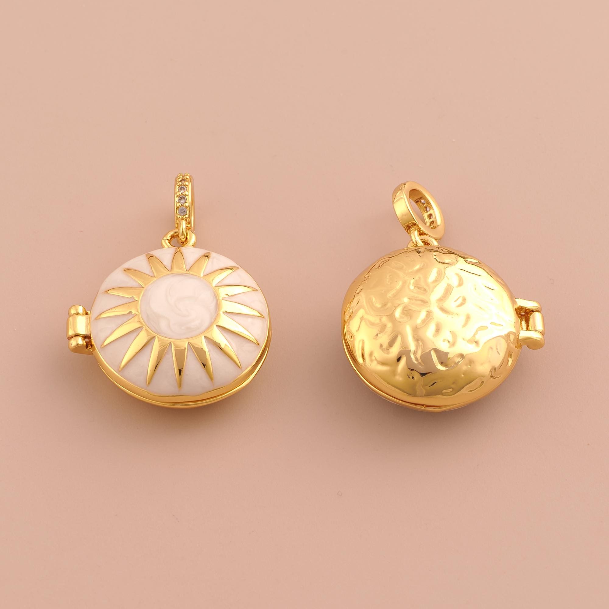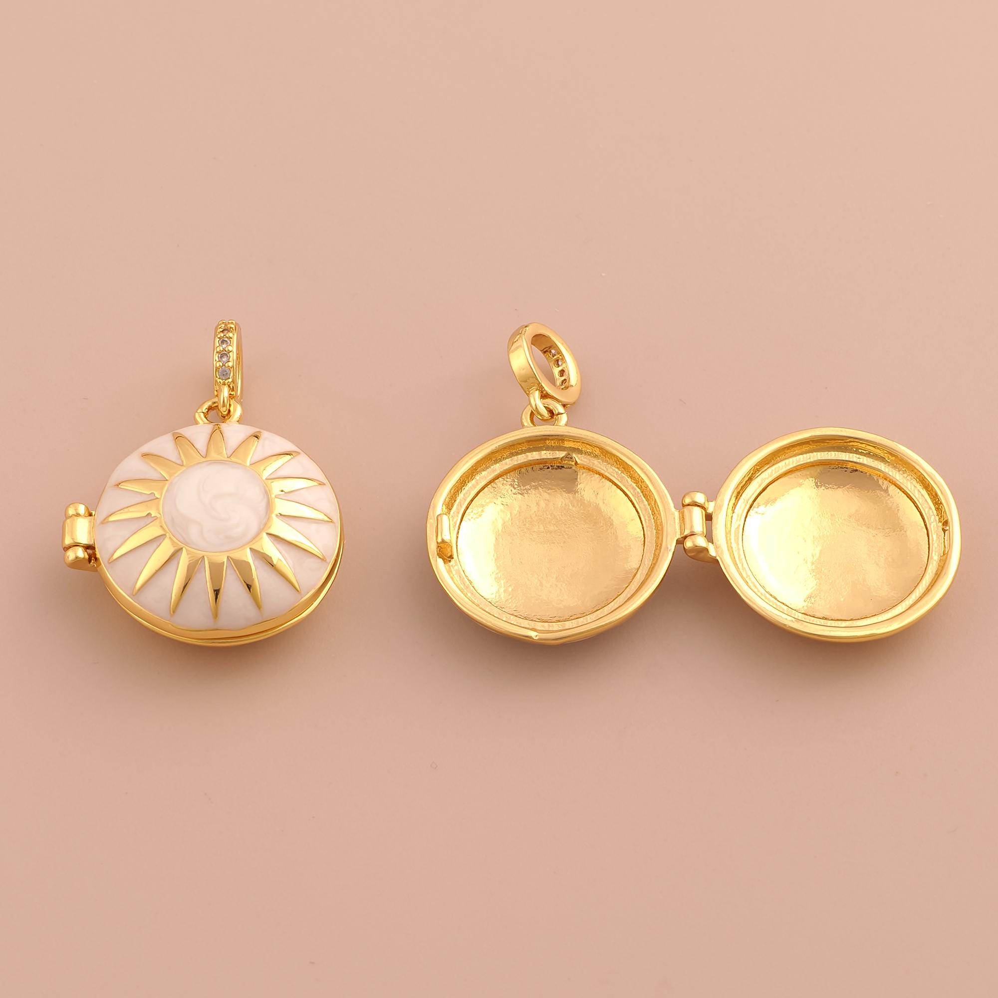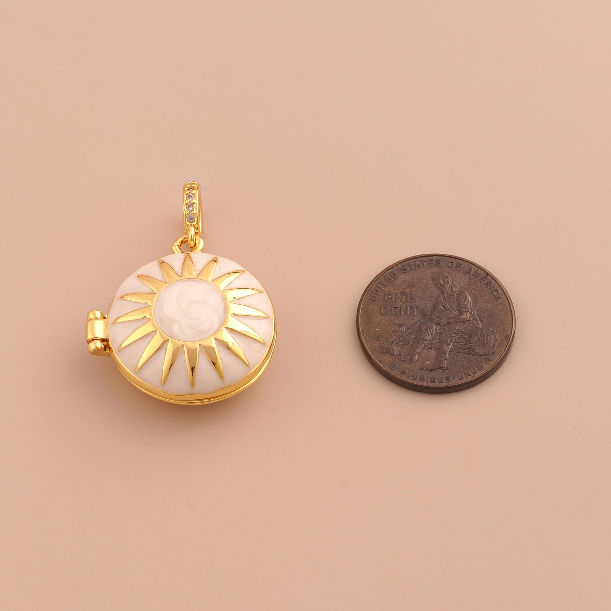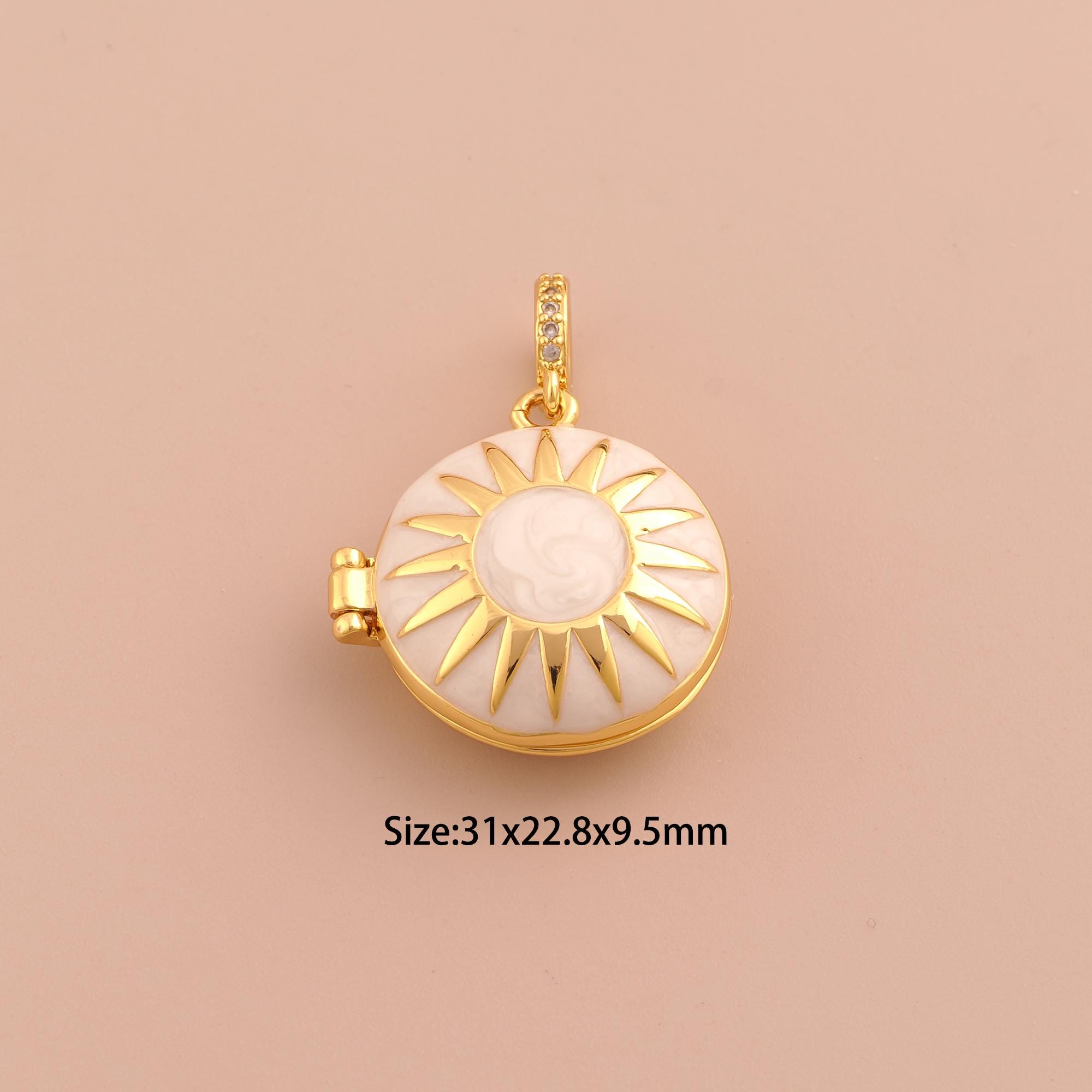 18K Gold Sun Charms,Photo Frame Charms Pendants,Enamel Sunburst Charm for DIY Jewelry Making Supply