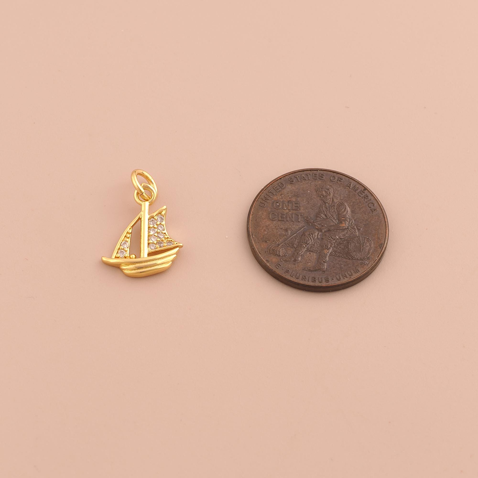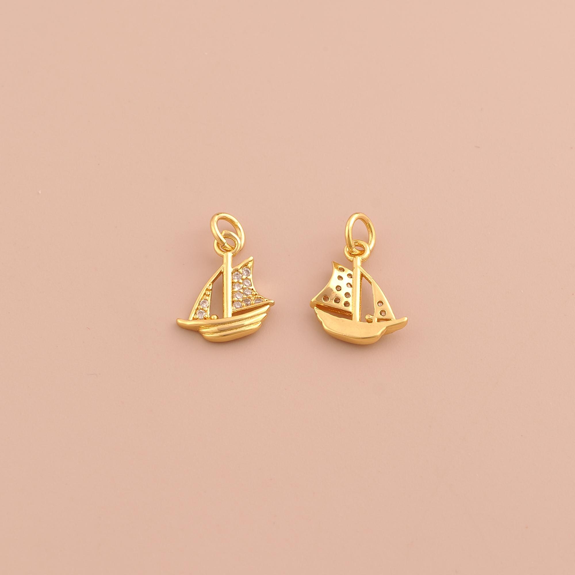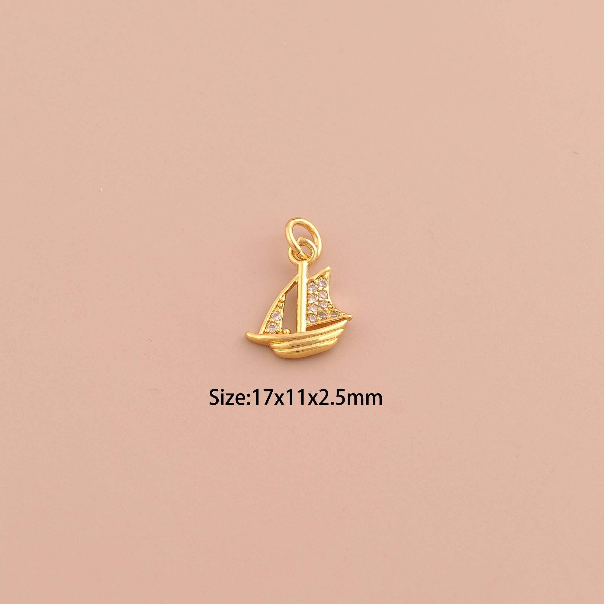 18K Gold Boat Charms,CZ Pave Boat Charms Pendants,Boat Charm for DIY Jewelry Making Supply