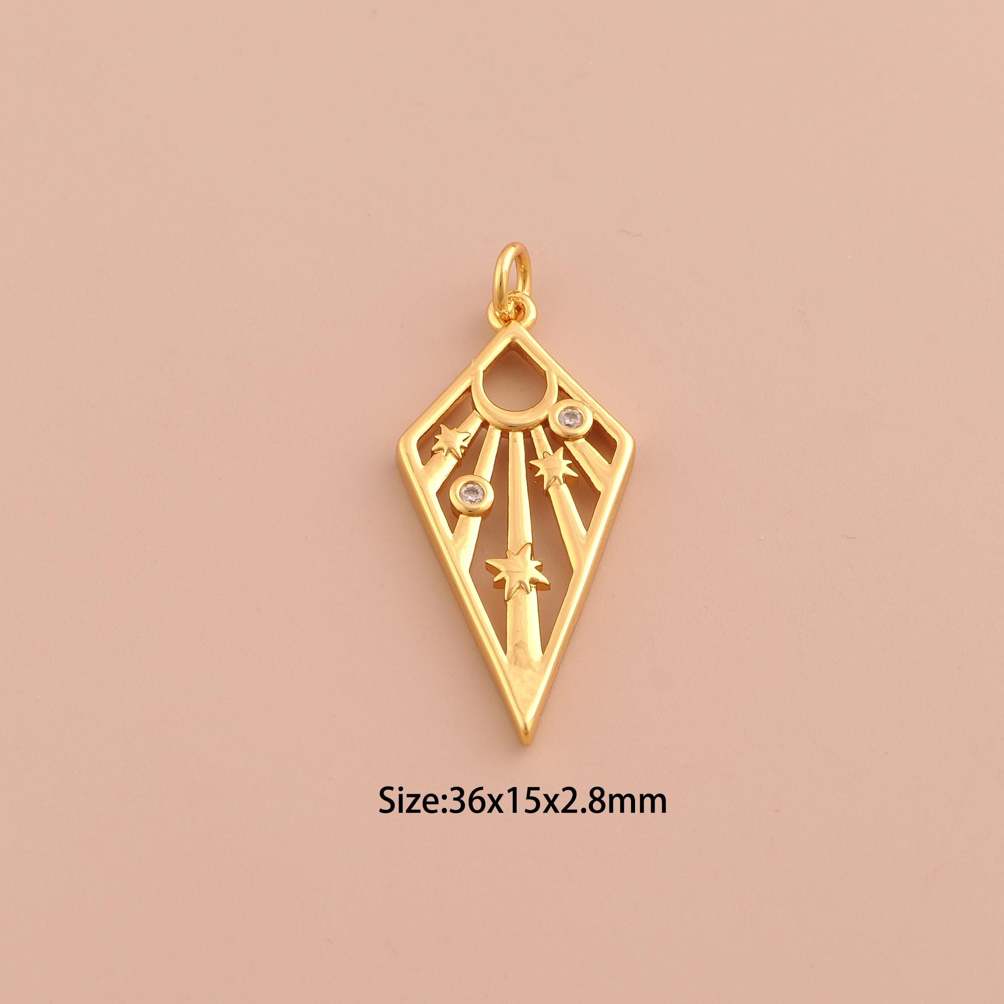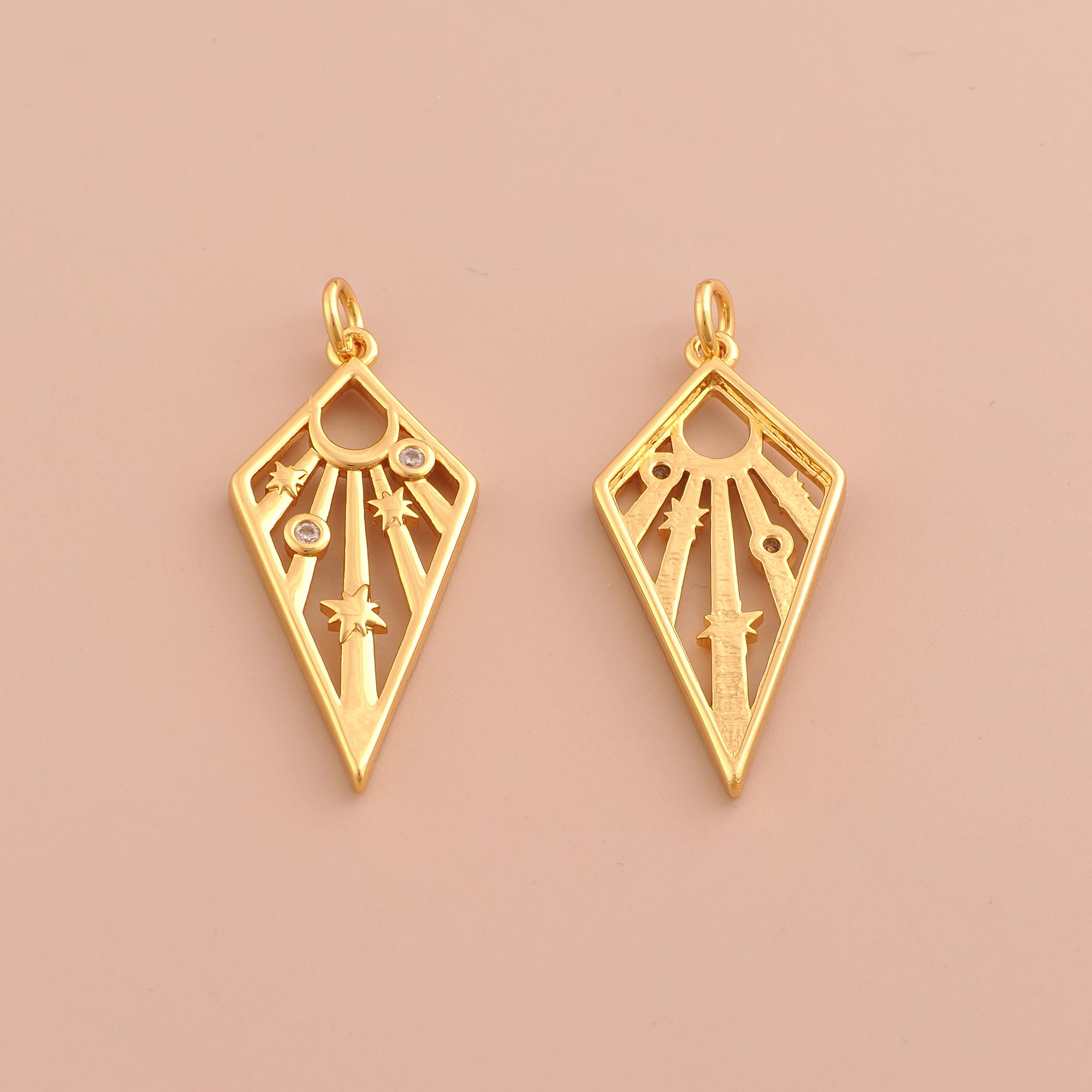18K Gold Sun Star Charms,CZ Pave Celestial Charms Pendants,Sunburst Charm for DIY Jewelry Making Supply