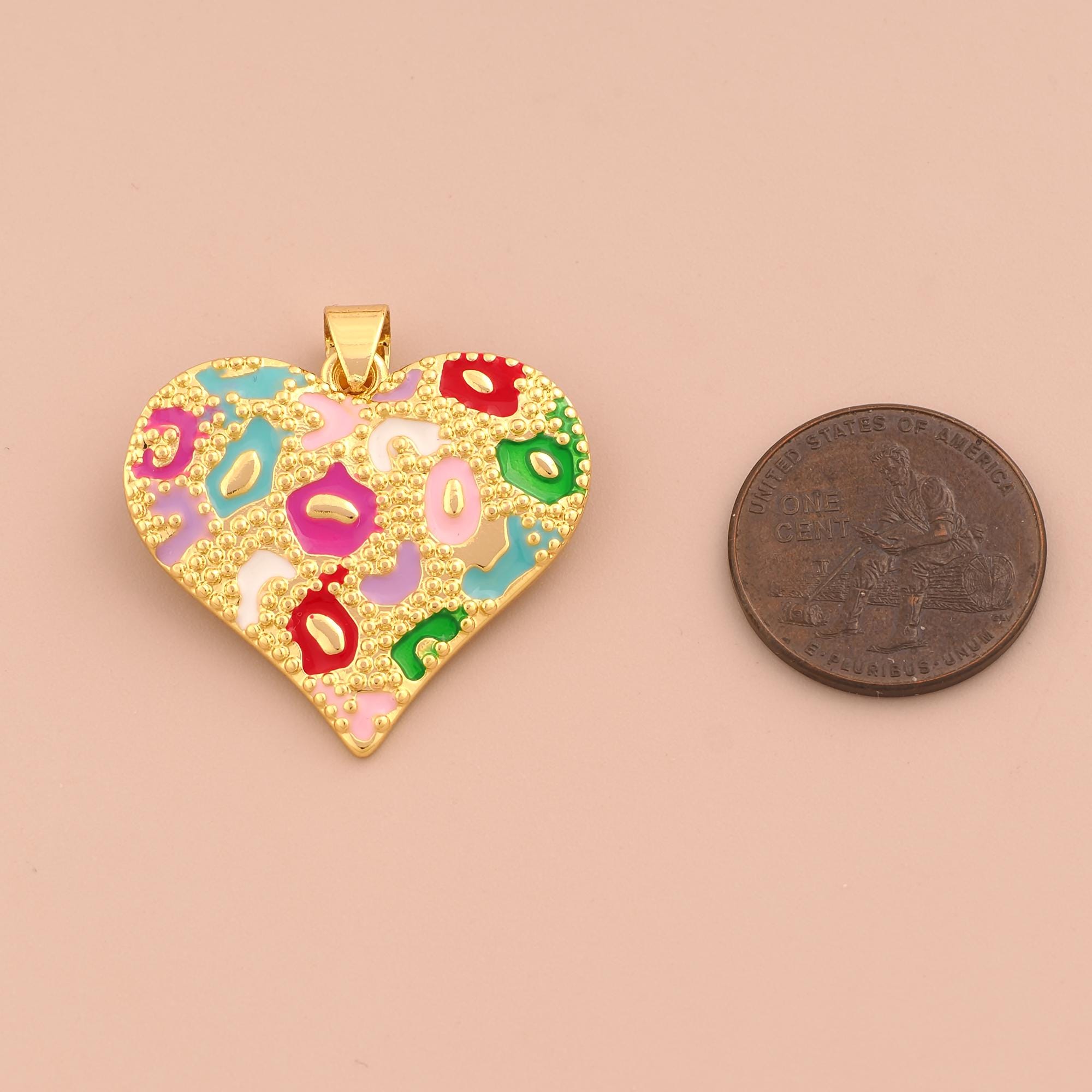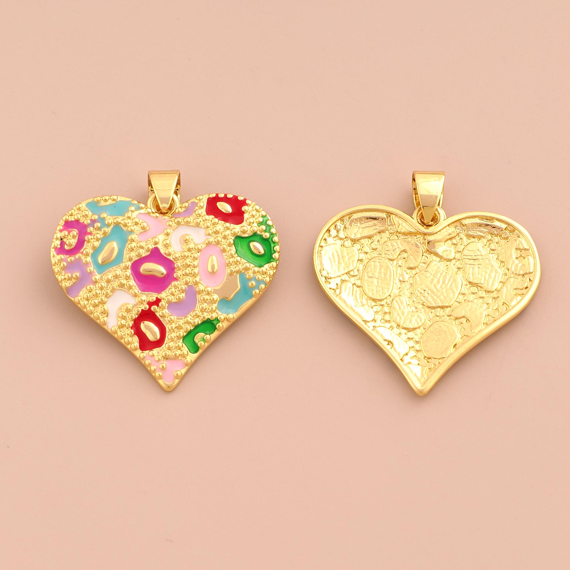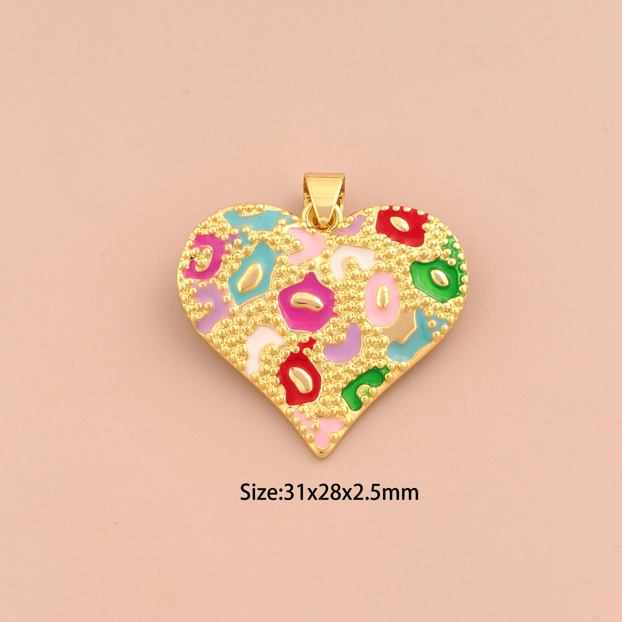 18K Gold Heart Charms,Enamel Love Charms Pendants,Heart Charm for DIY Jewelry Making Supply