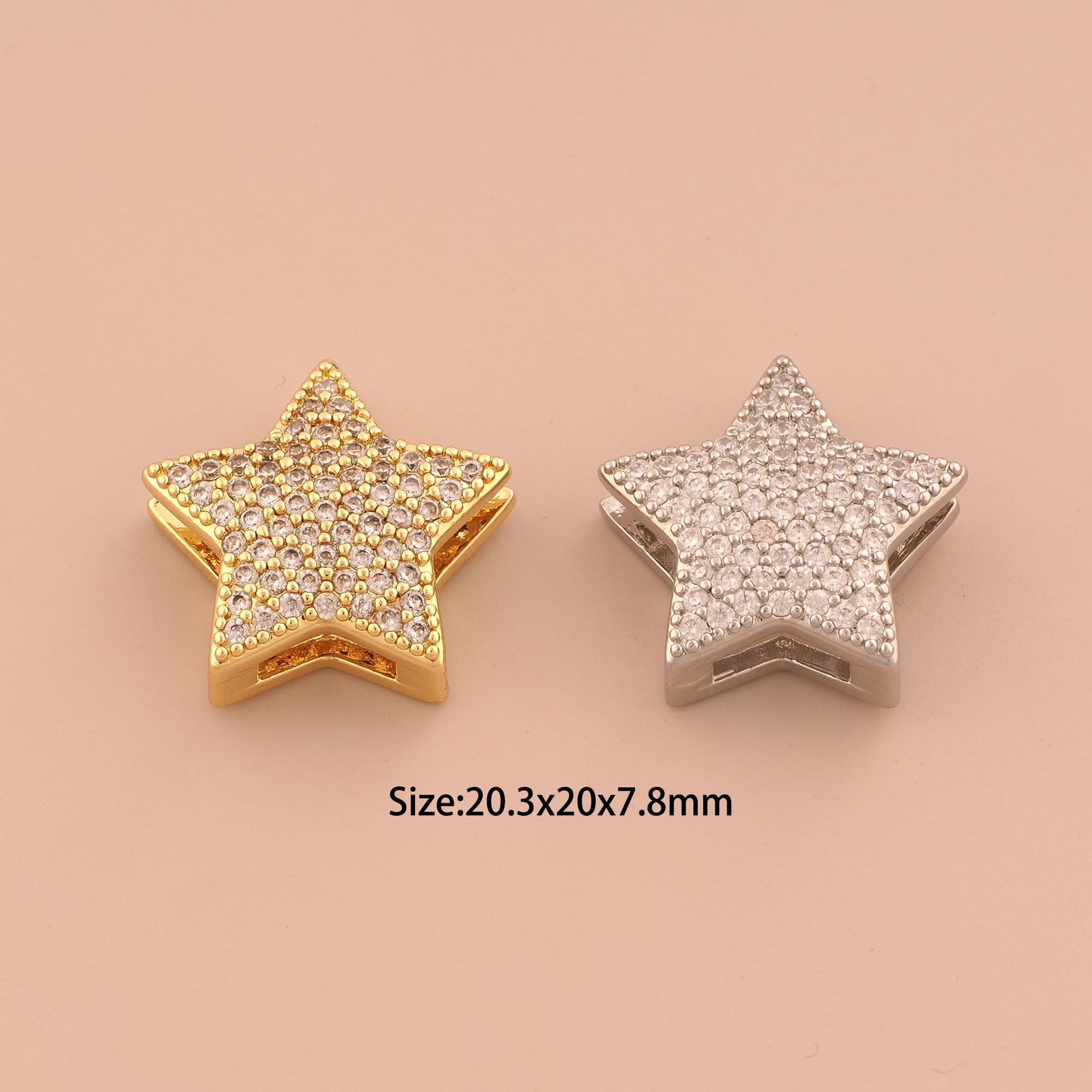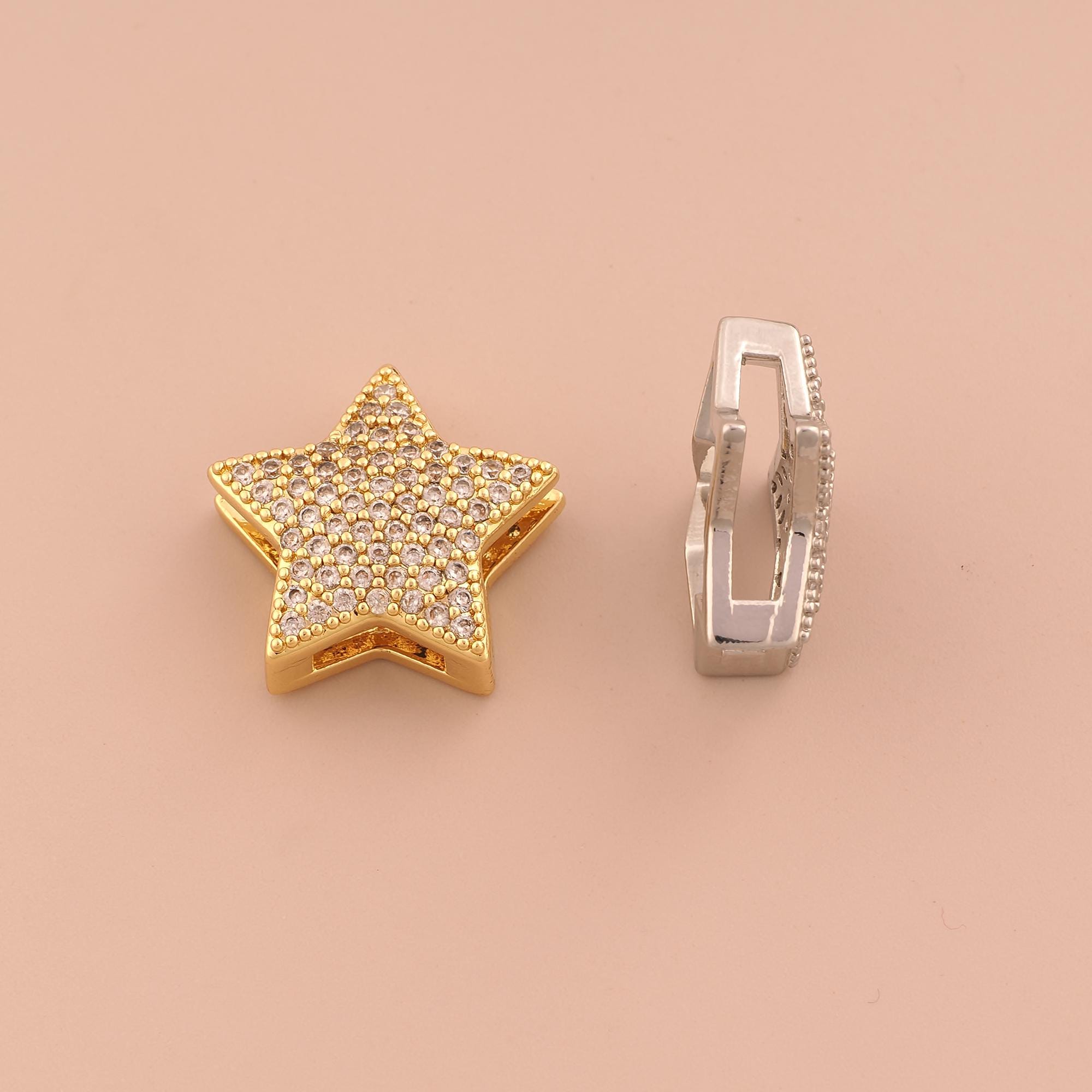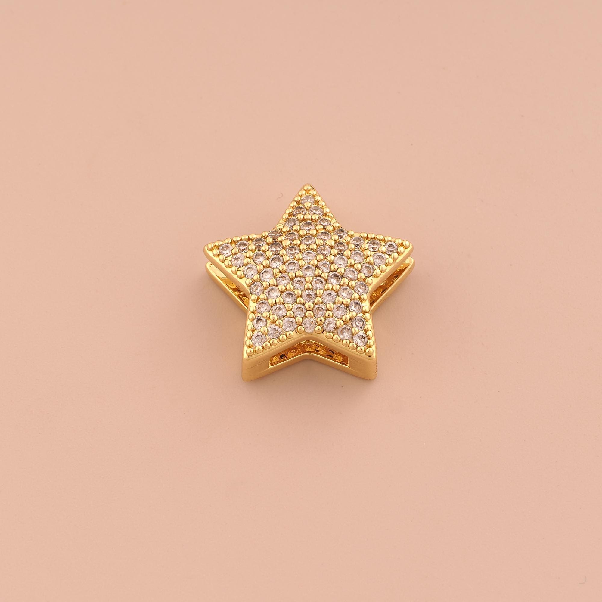 18K Gold Star Spacer Bead,CZ Pave Celestial Bead,Starburst Bead for DIY Jewelry Making Supply