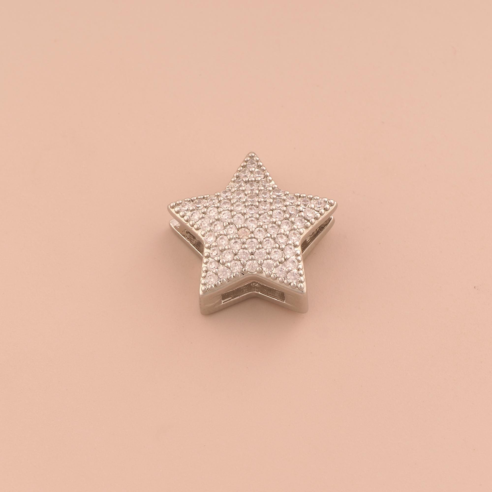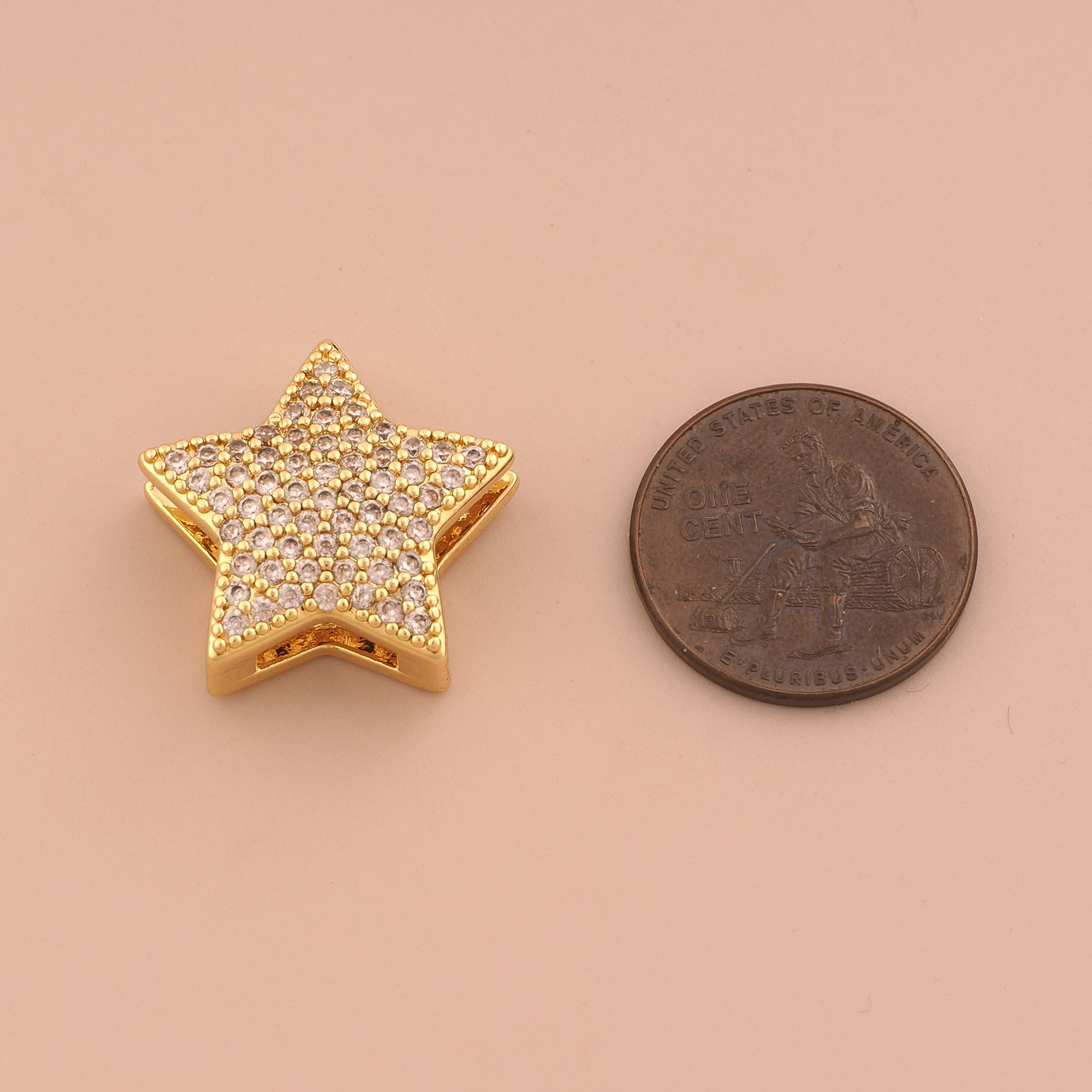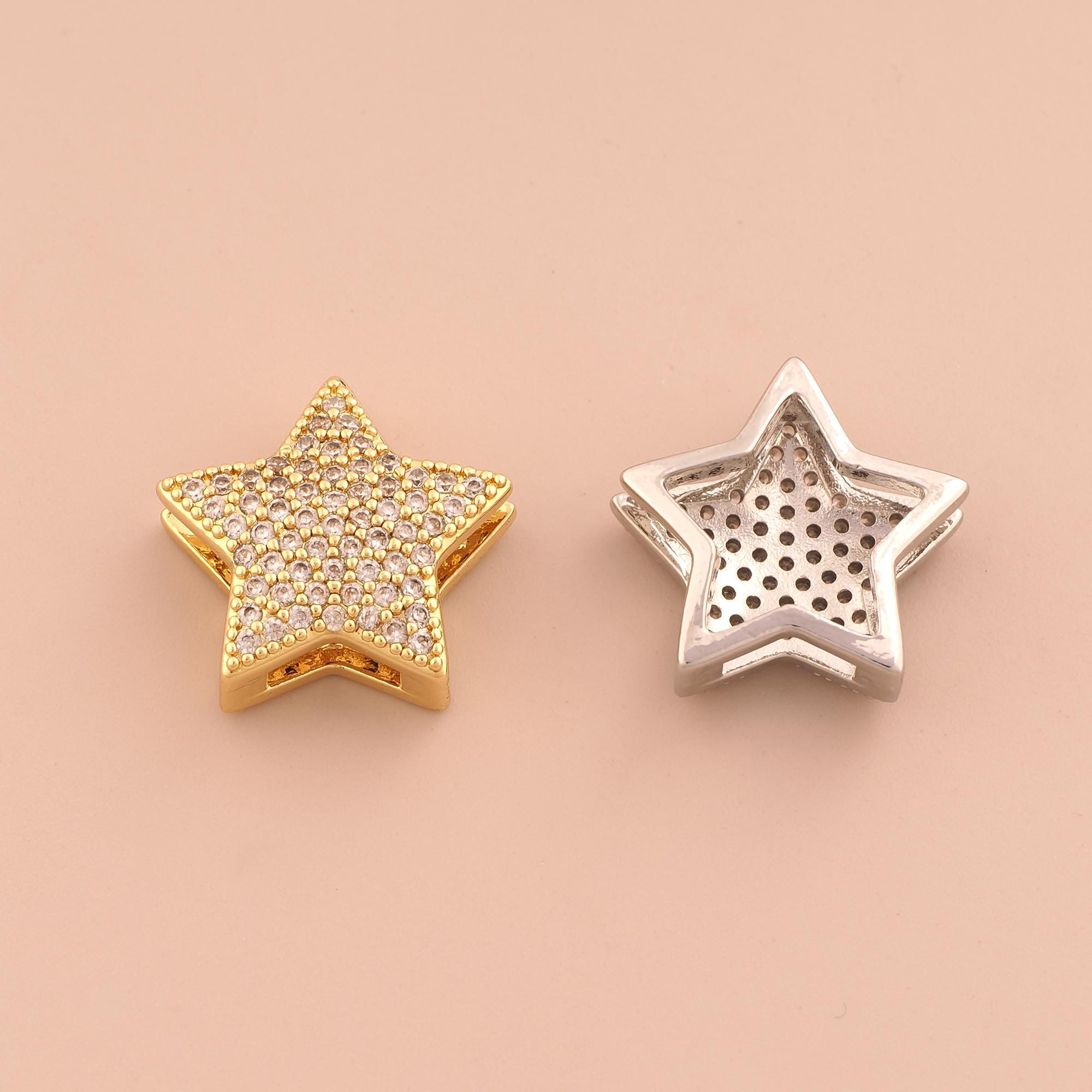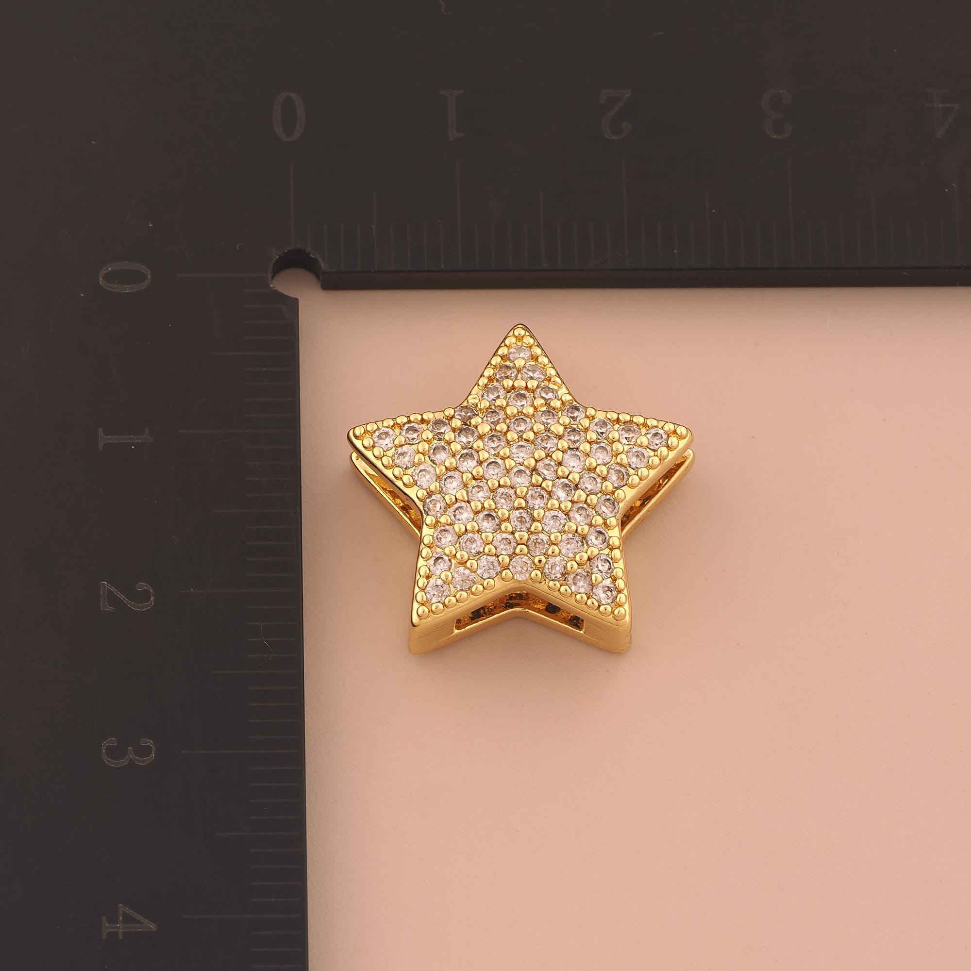 18K Gold Star Spacer Bead,CZ Pave Celestial Bead,Starburst Bead for DIY Jewelry Making Supply