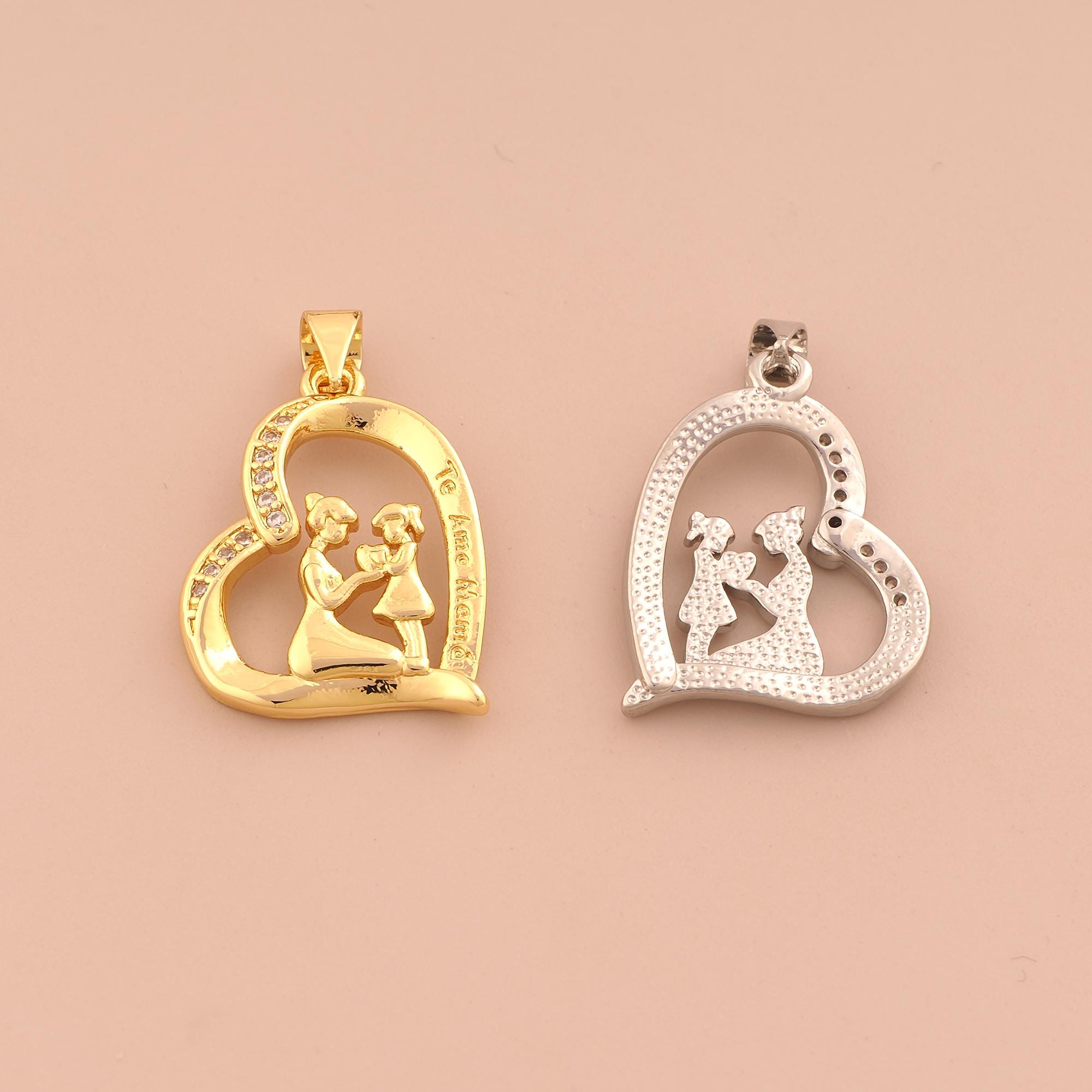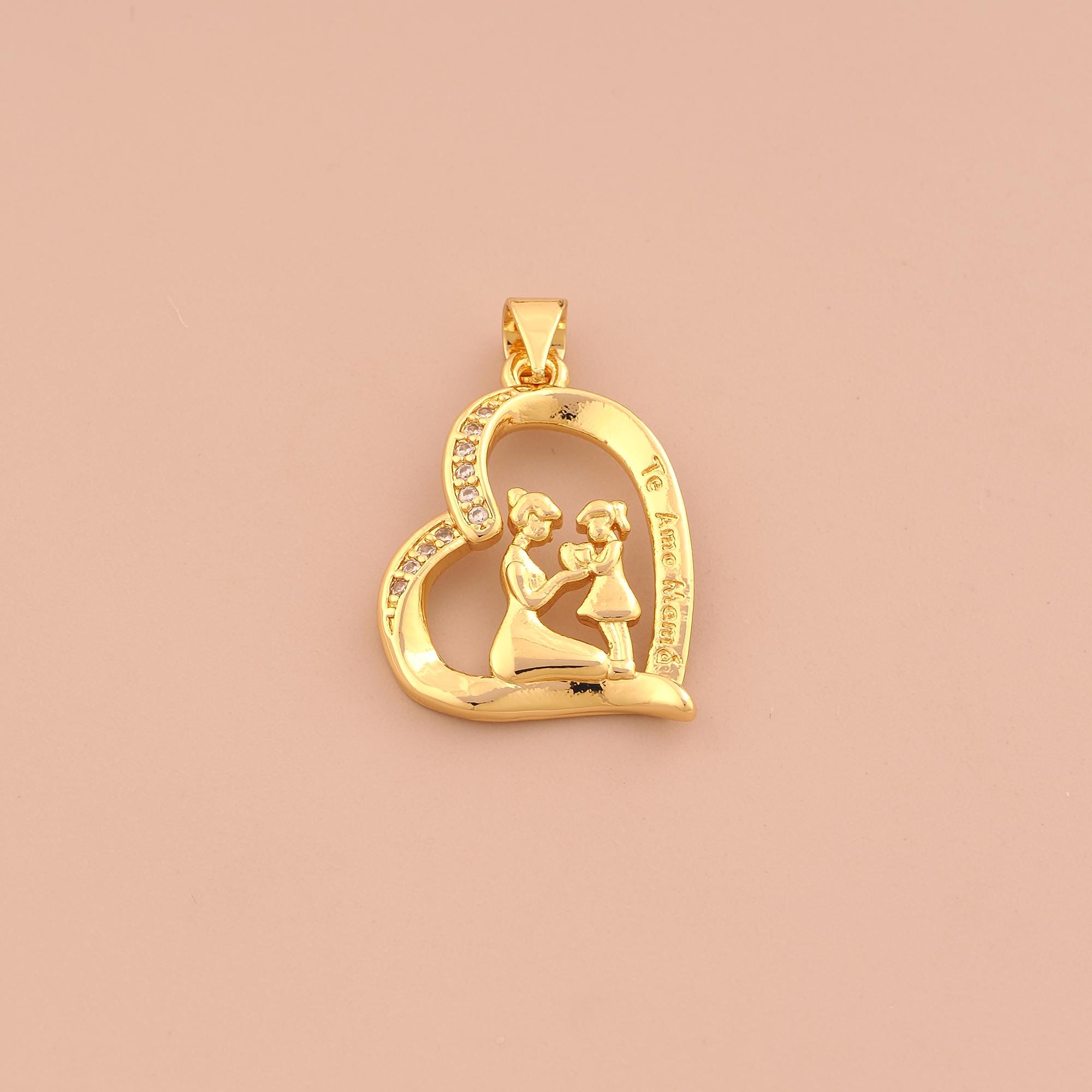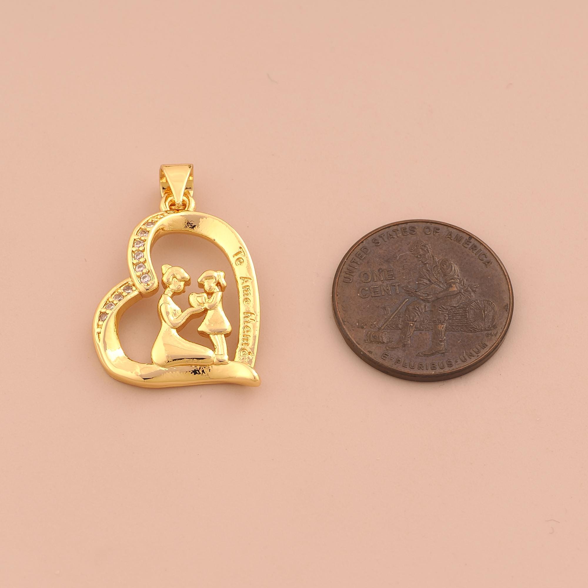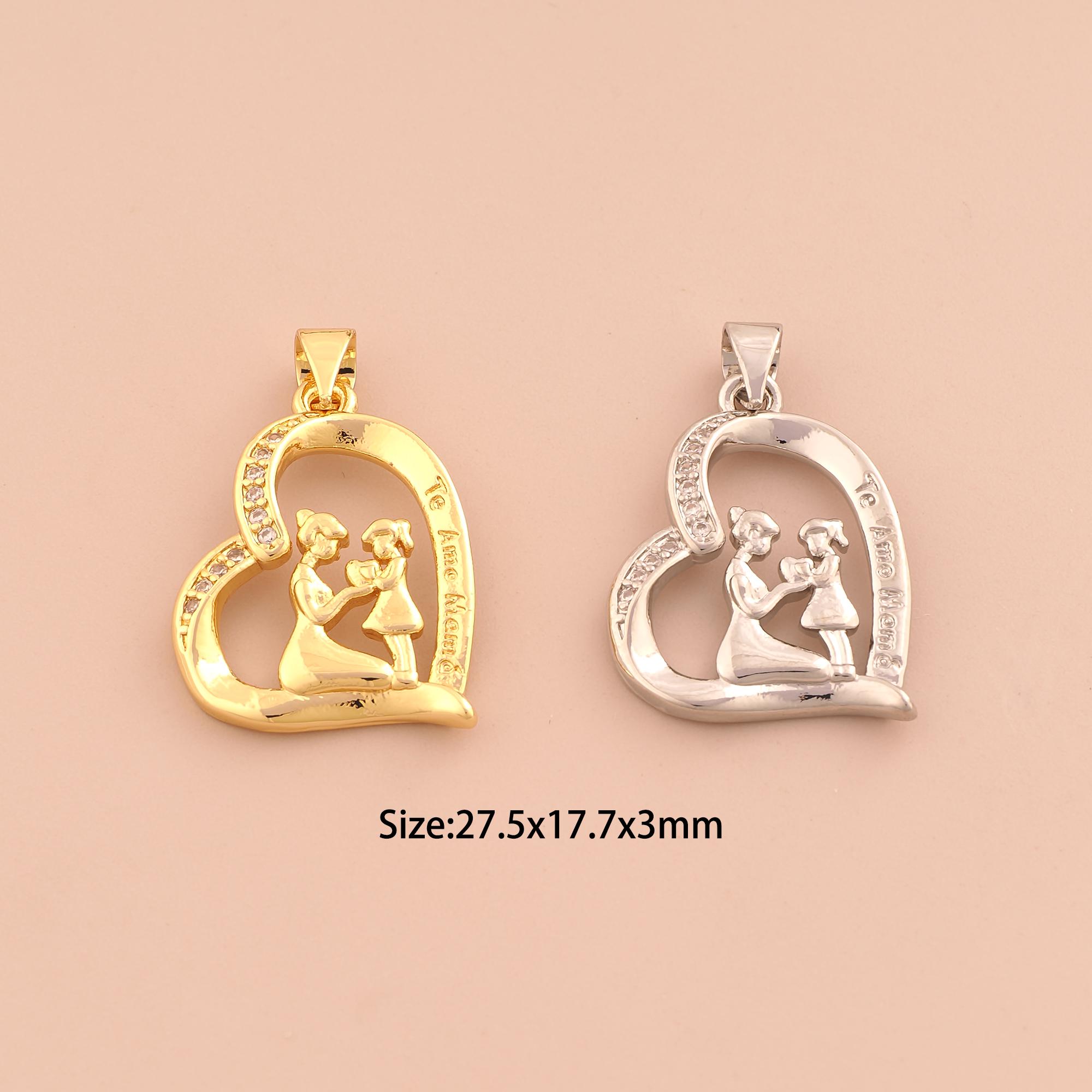 18K Gold Te Amo MAMA Charms,CZ Pave Heart Charms Pendants,Love Charm for DIY Jewelry Making Supply