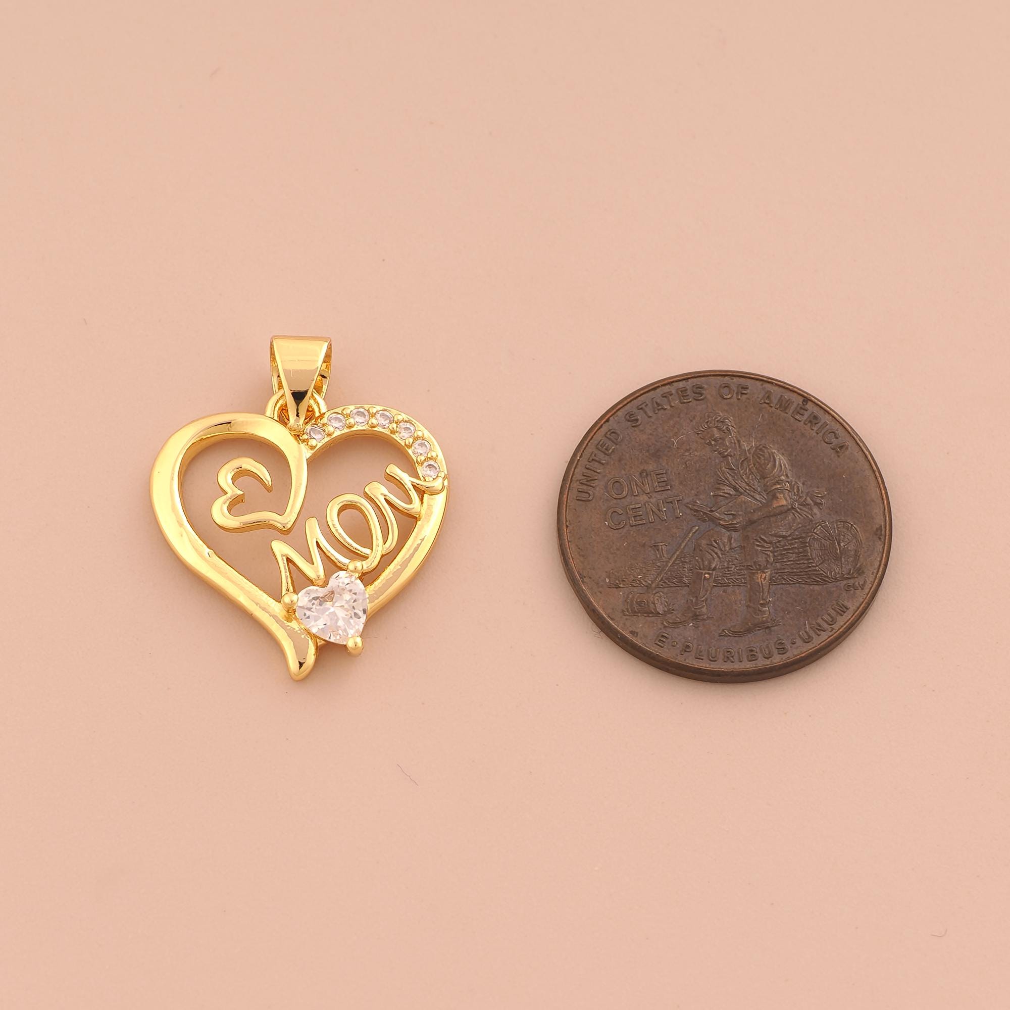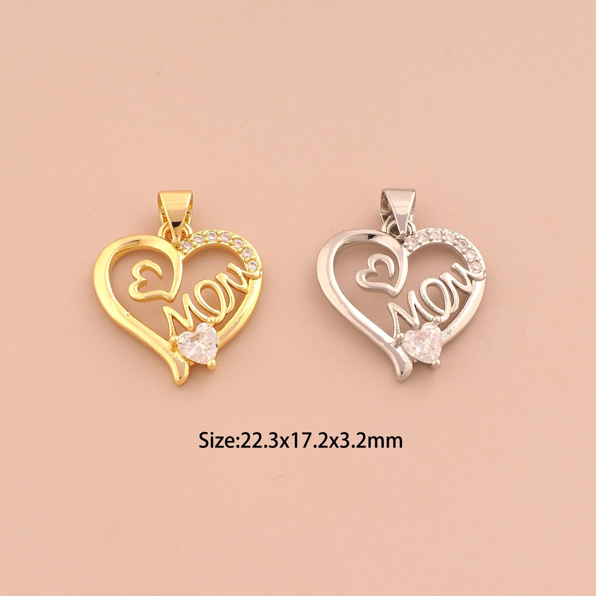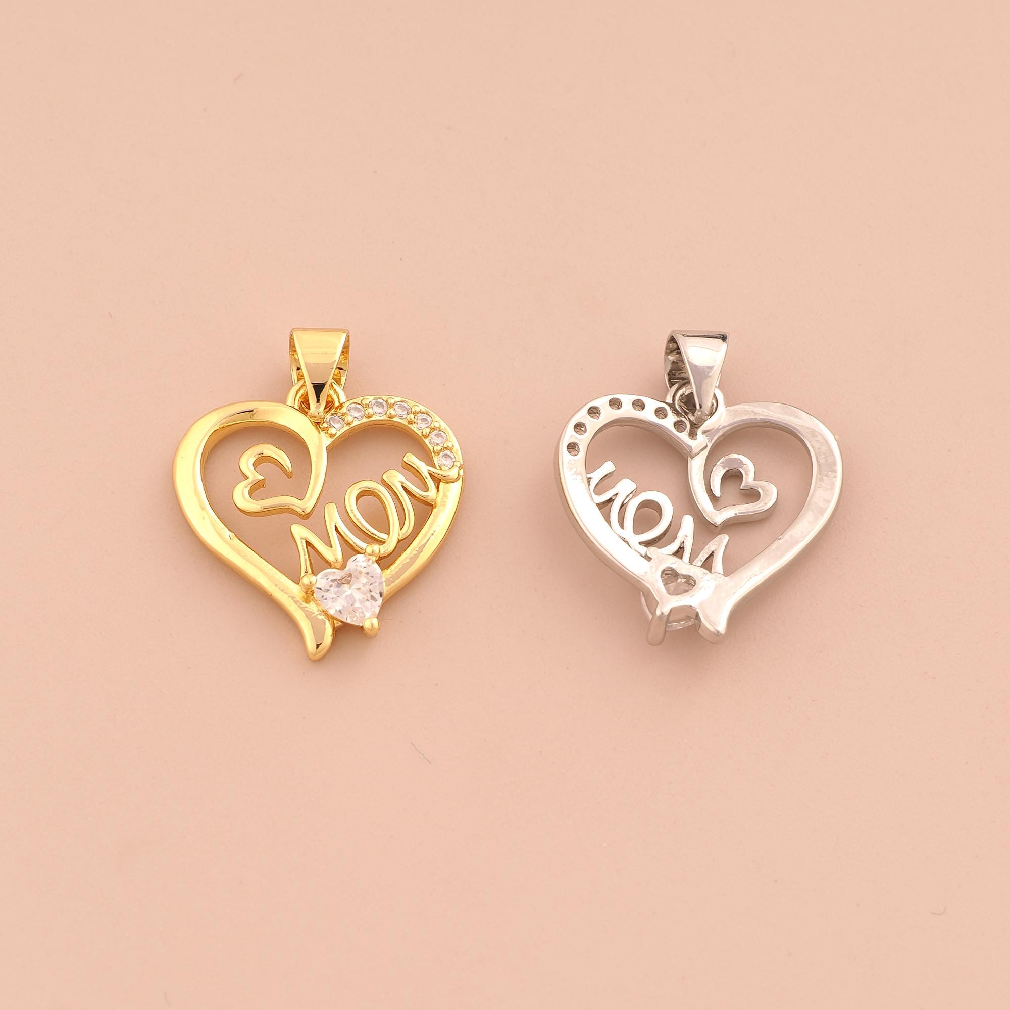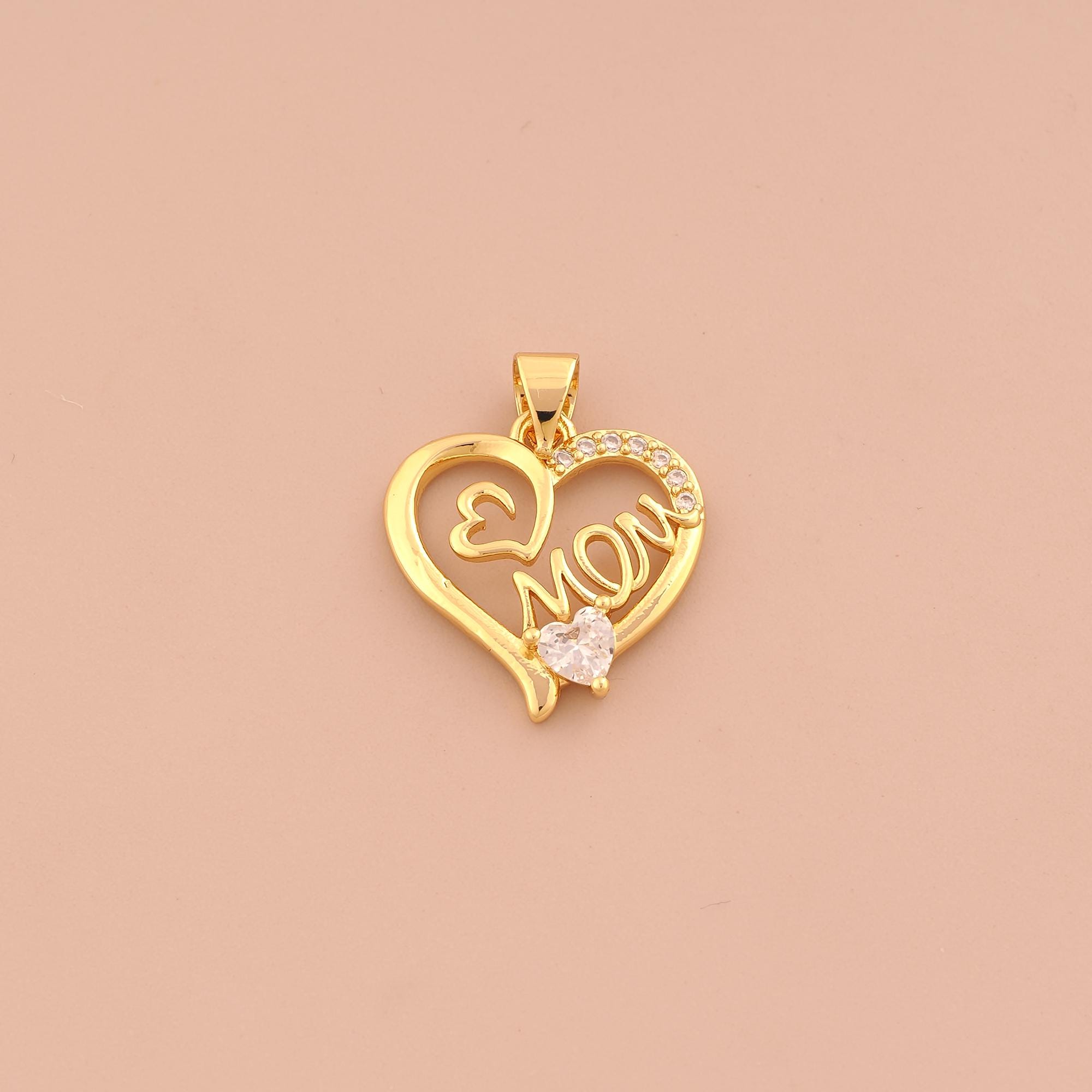 18K Gold MOM Charms,CZ Pave Heart Charms Pendants,Letter Charm for DIY Jewelry Making Supply