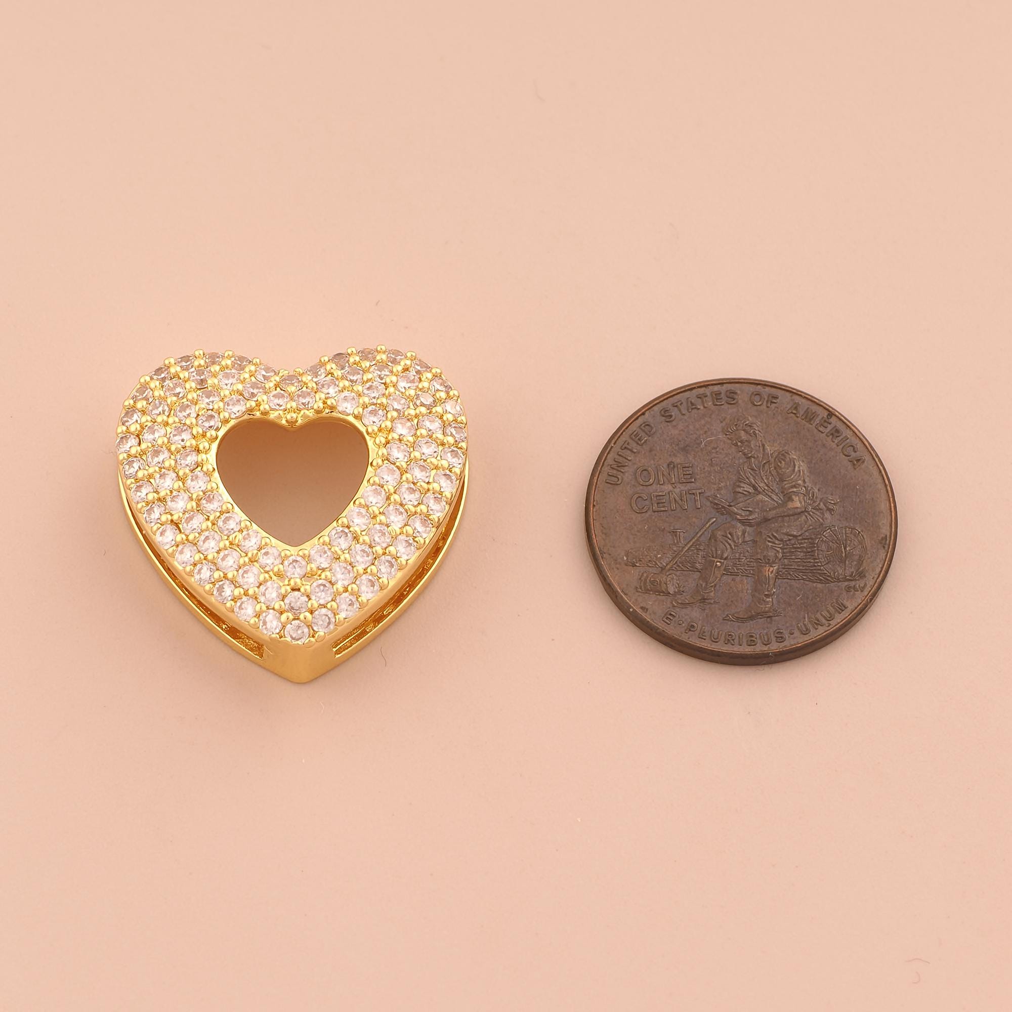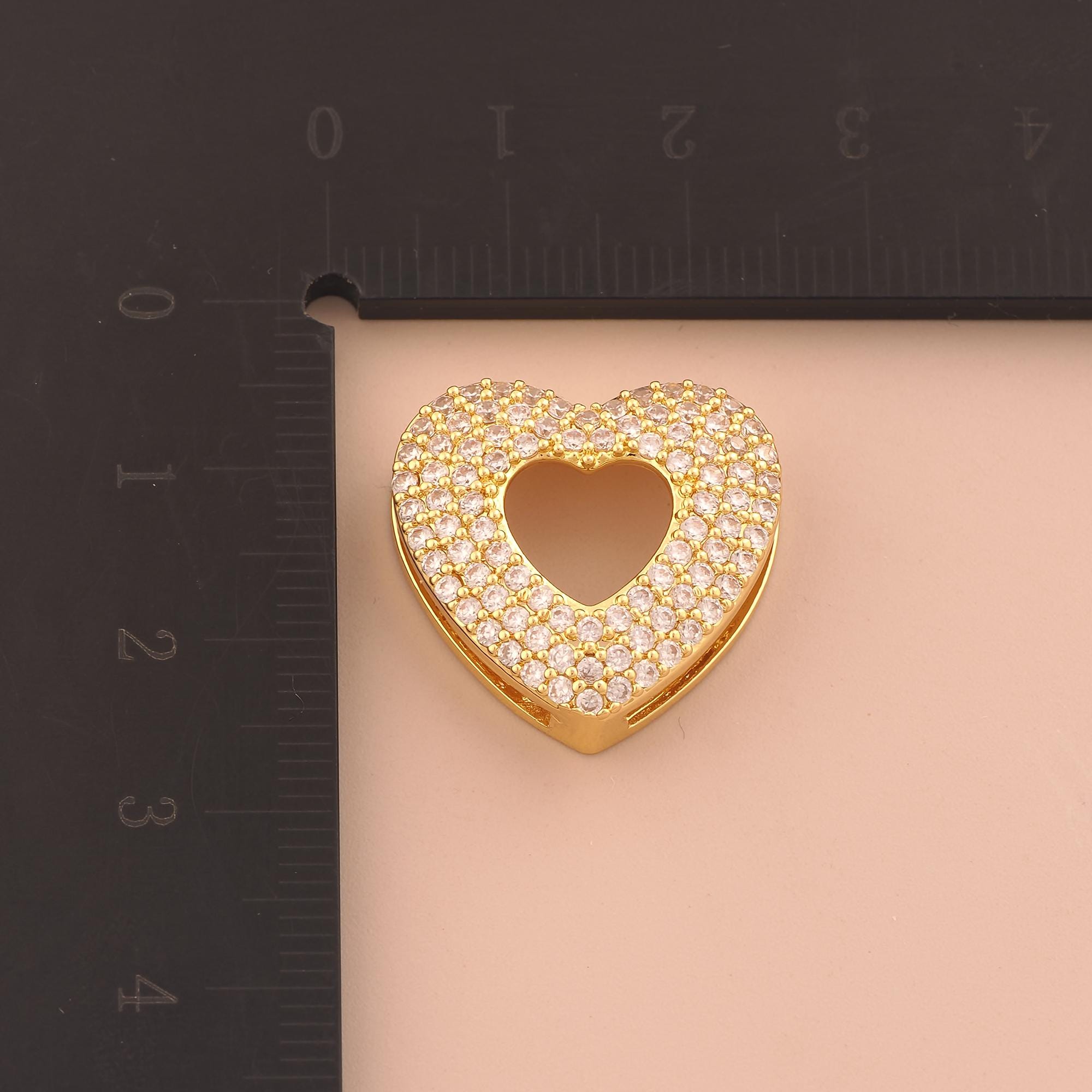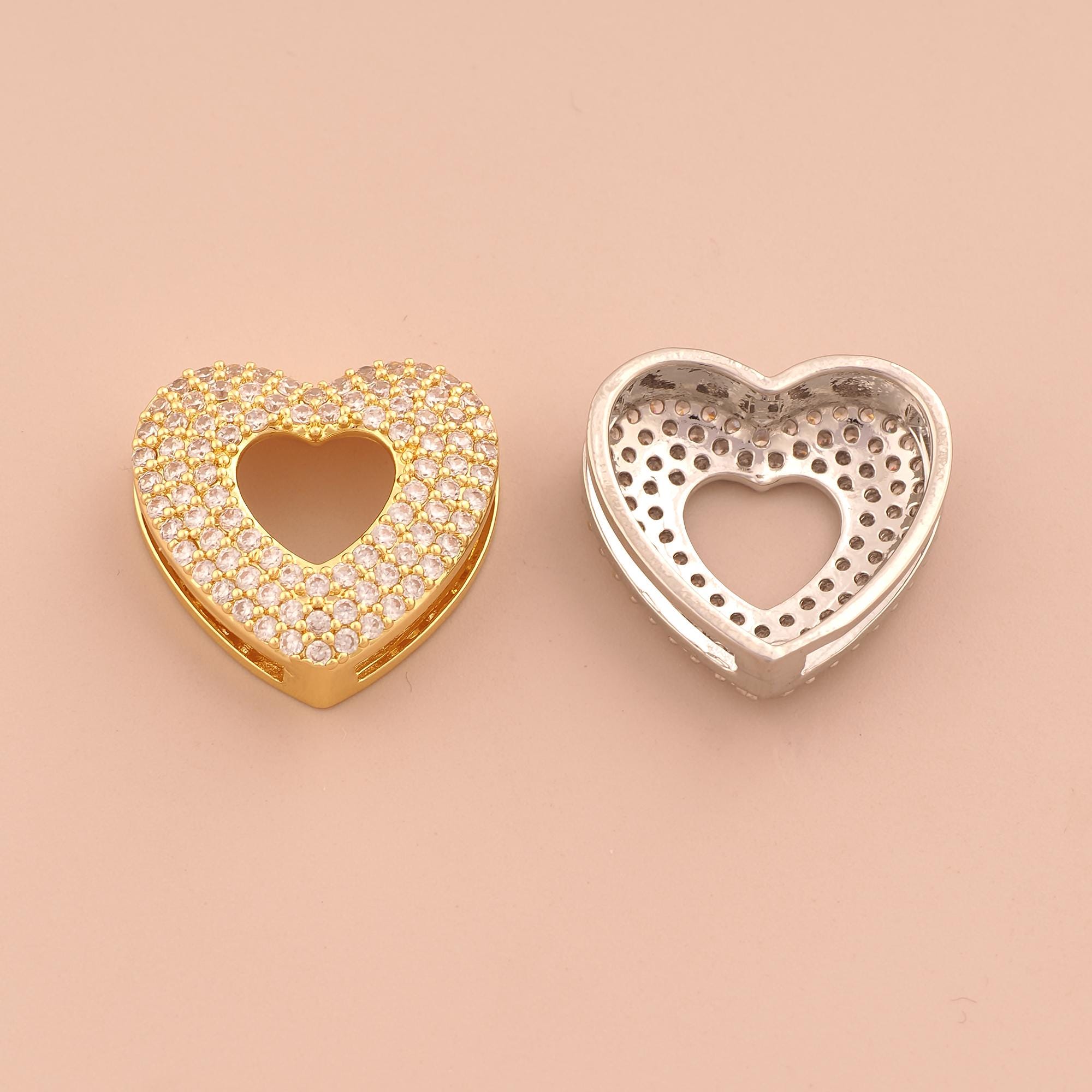 18K Gold Heart Spacer Bead,CZ Pave Love Bead,Heart Bead for DIY Jewelry Making Supply