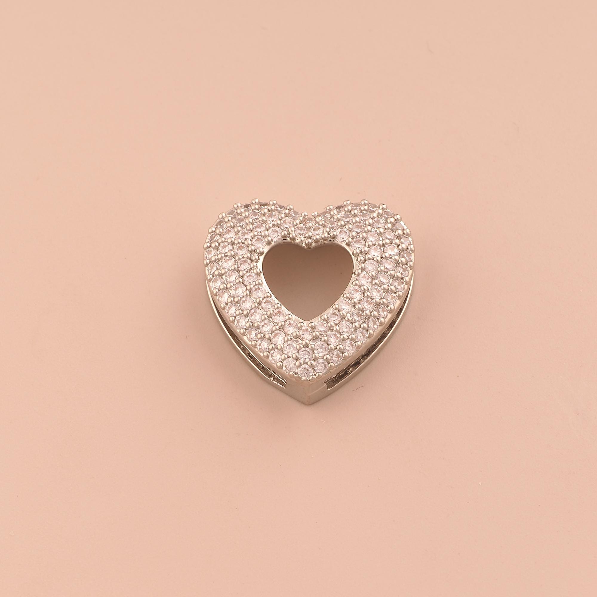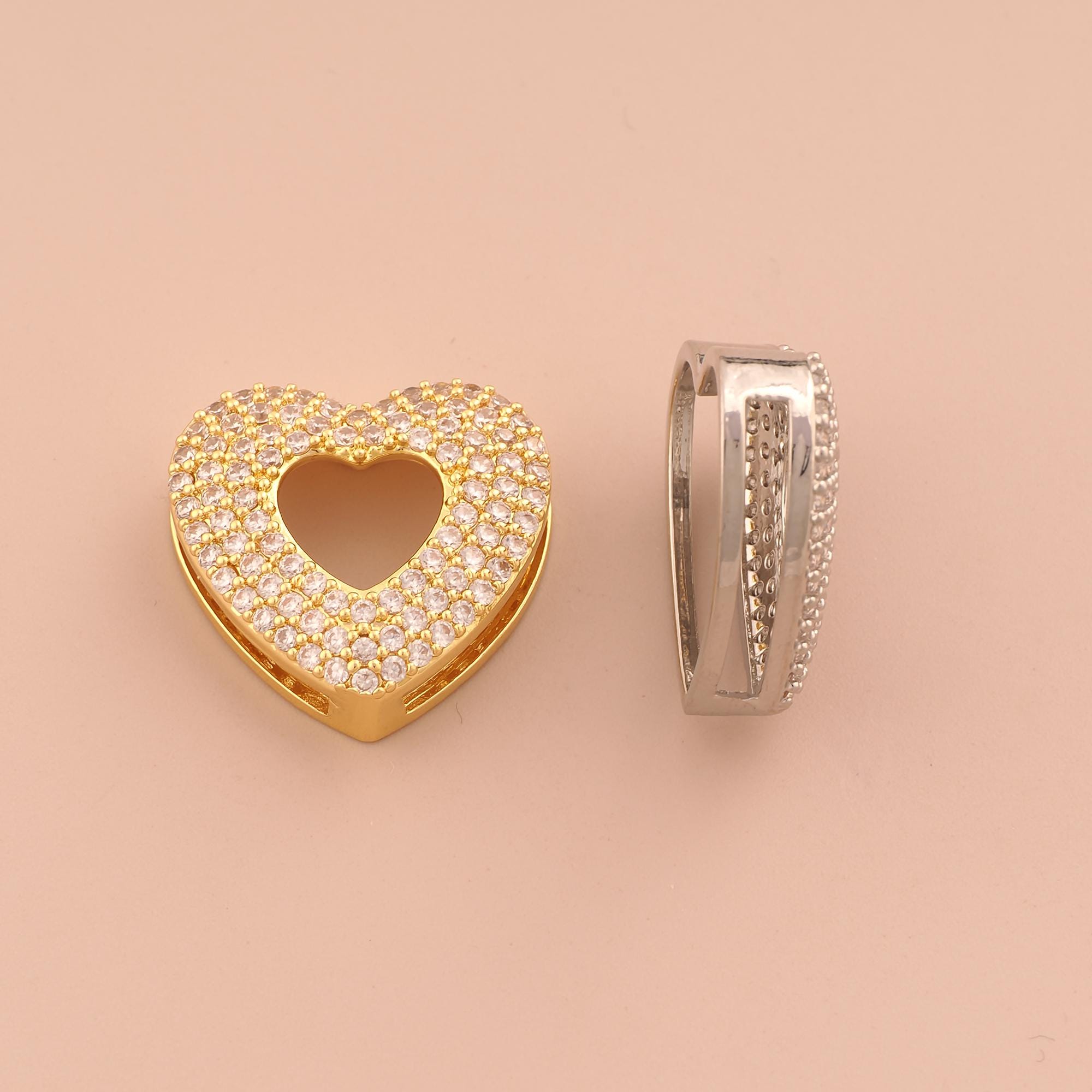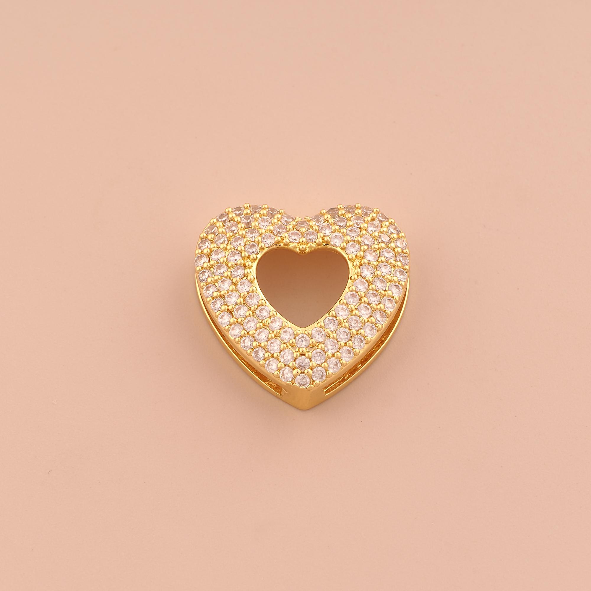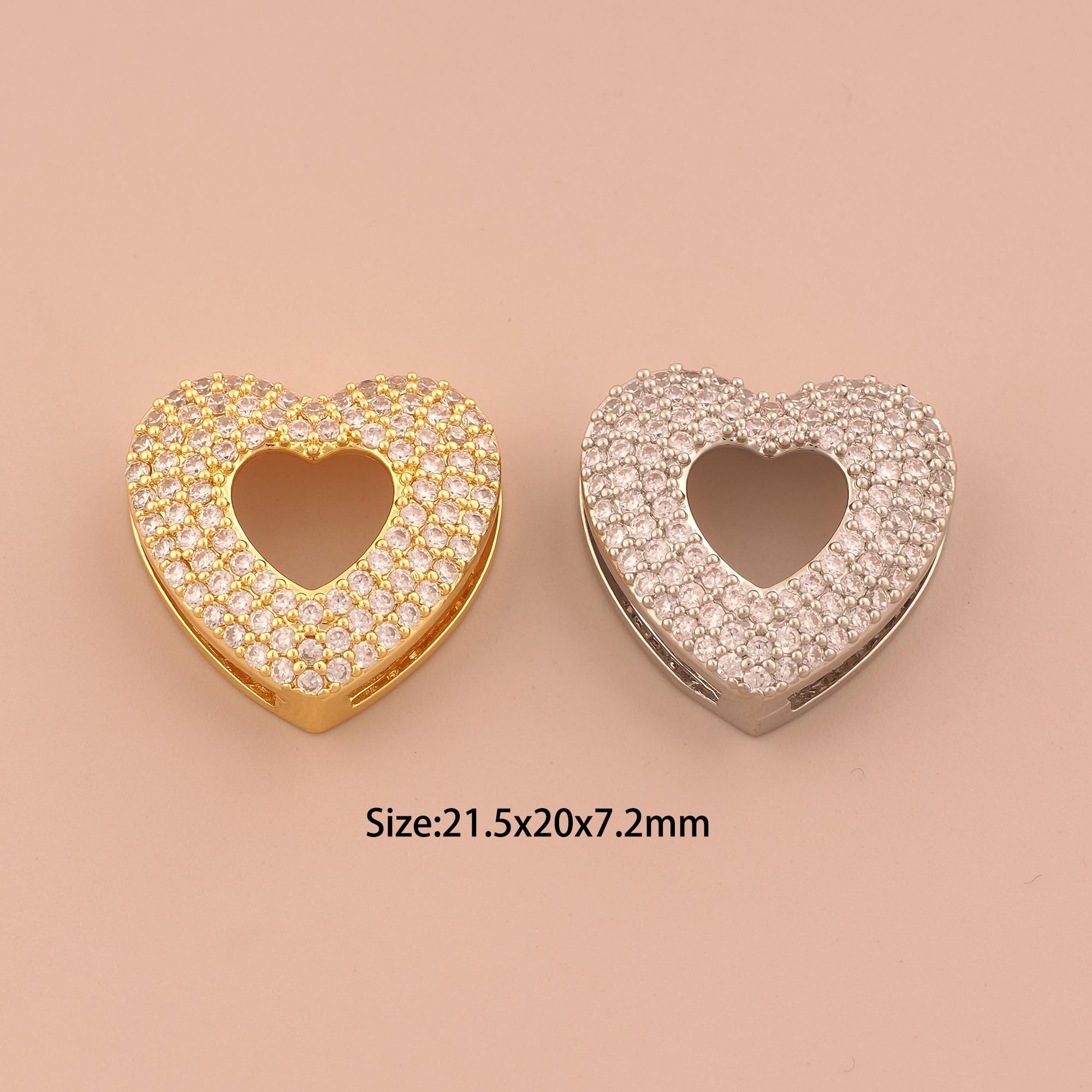 18K Gold Heart Spacer Bead,CZ Pave Love Bead,Heart Bead for DIY Jewelry Making Supply