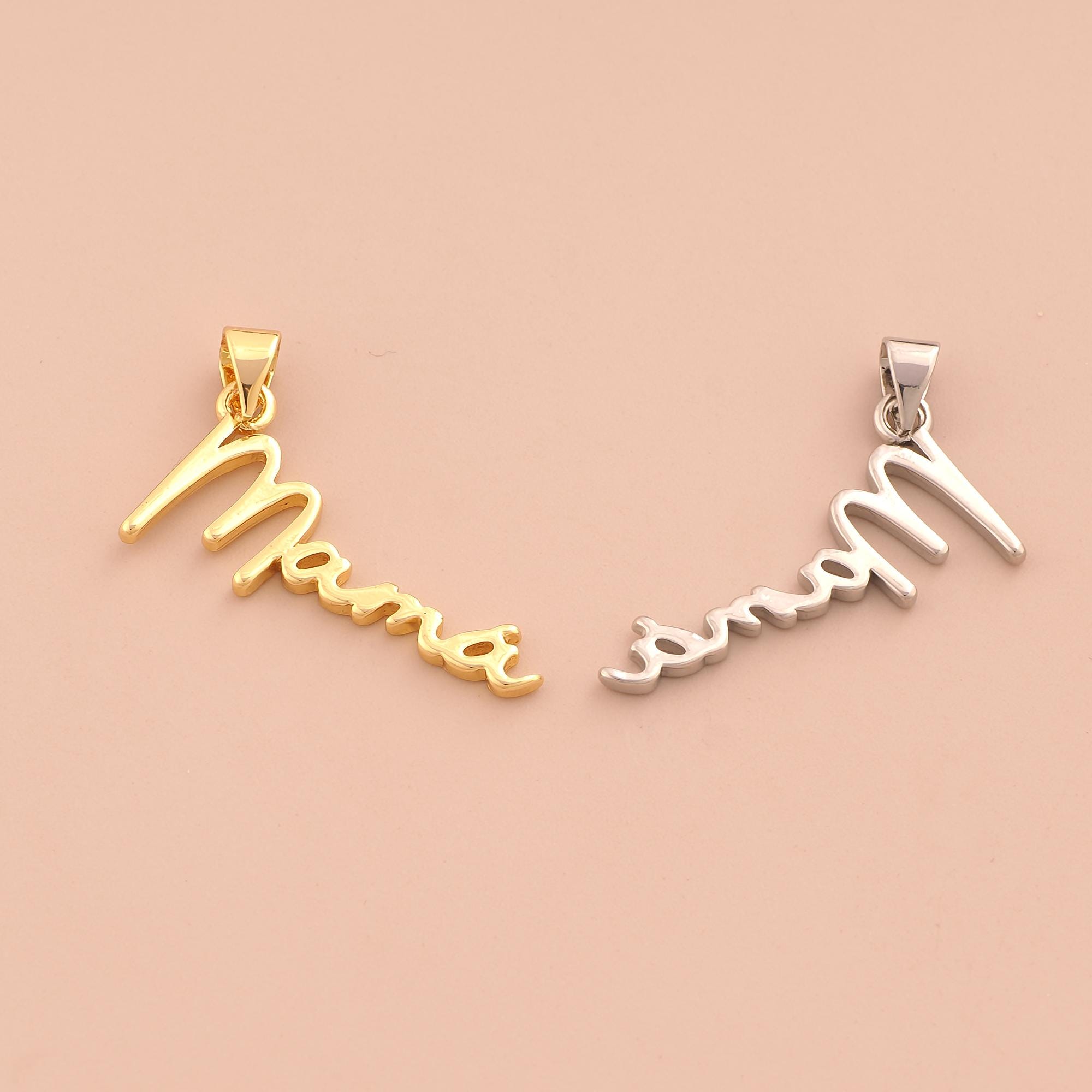 18K Gold MAMA Charms,Letter Charms Pendants,MAMA Charm for DIY Jewelry Making Supply