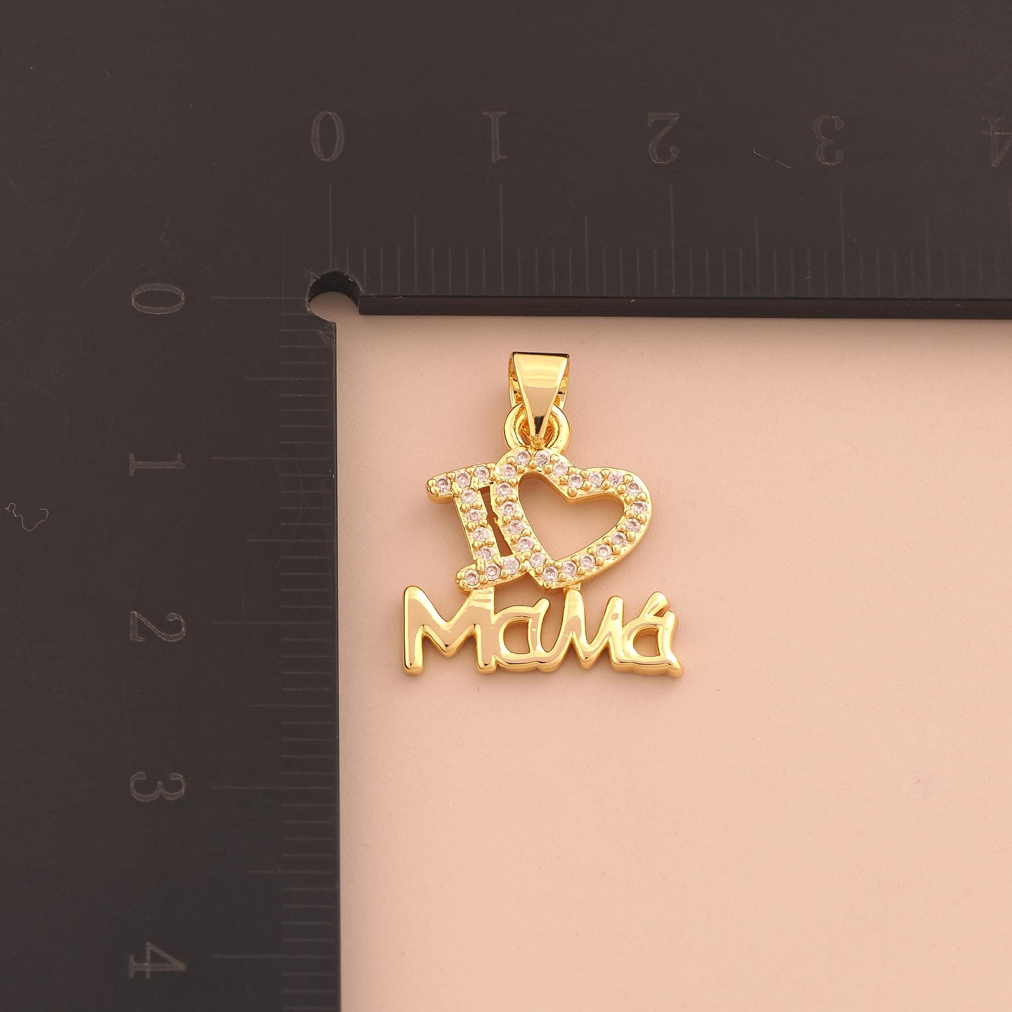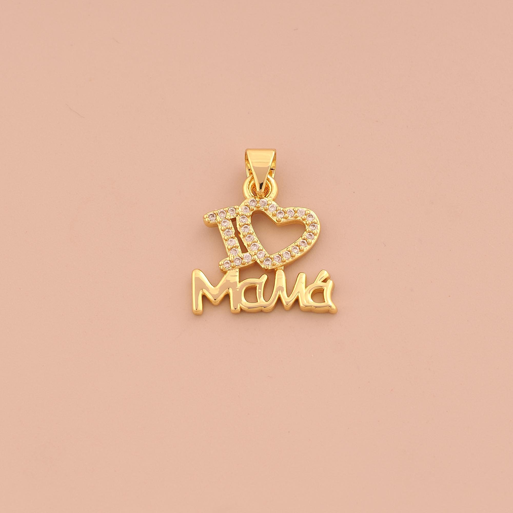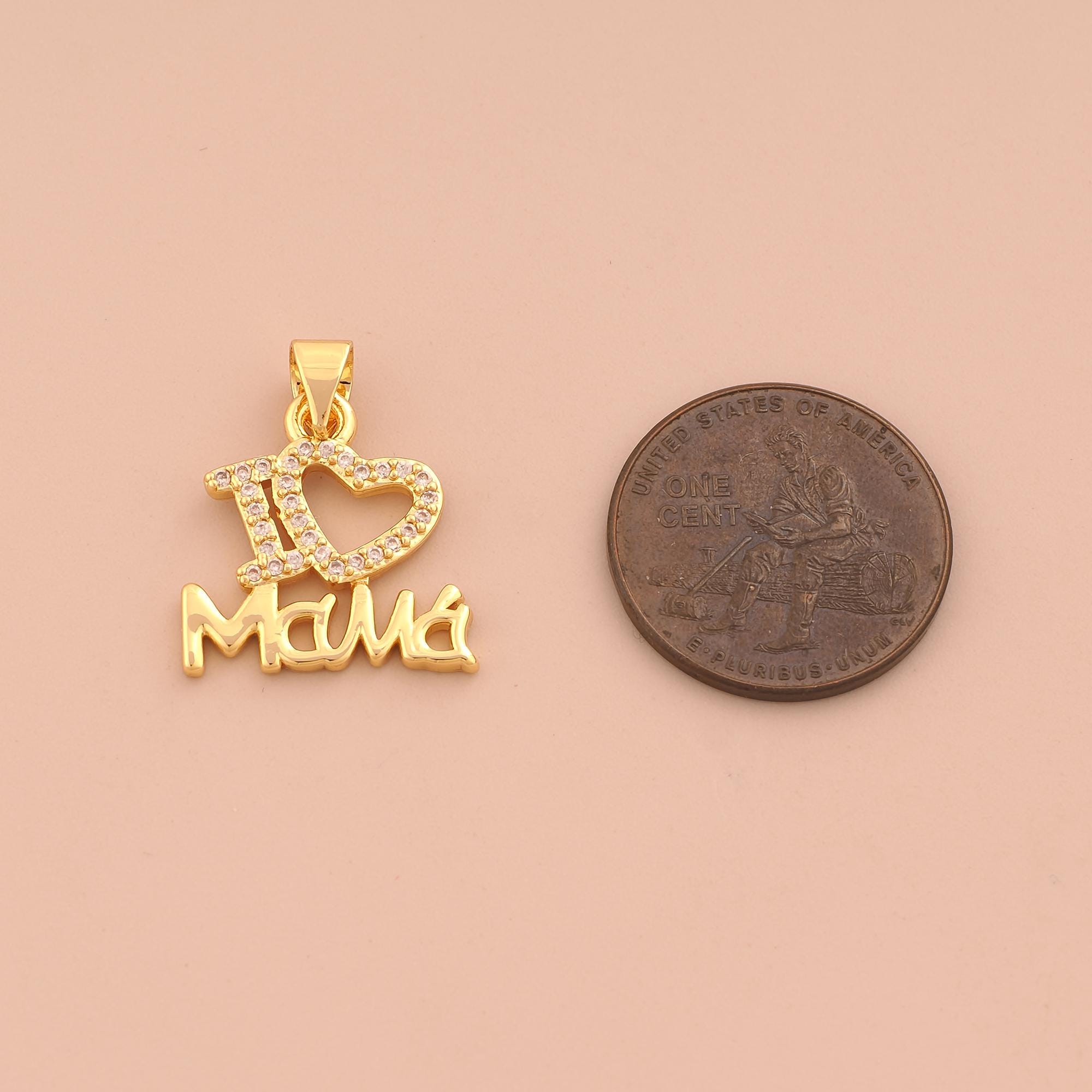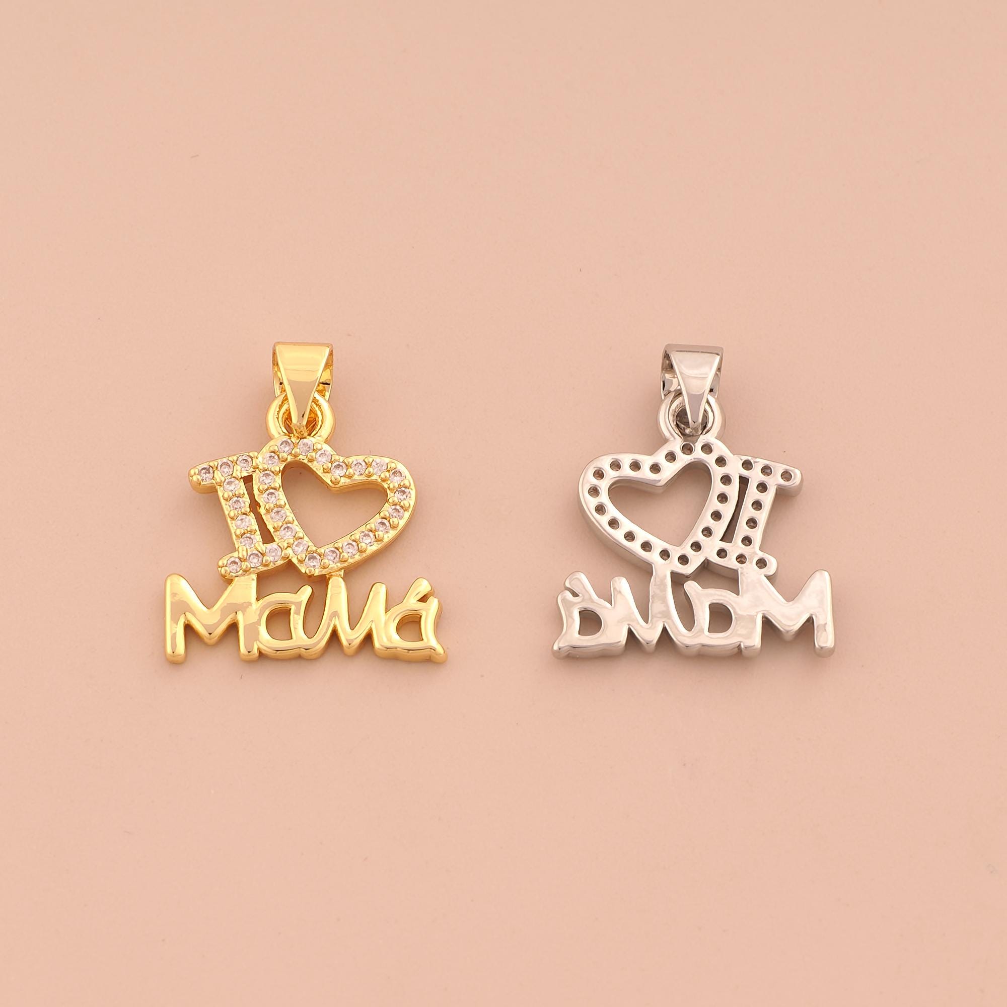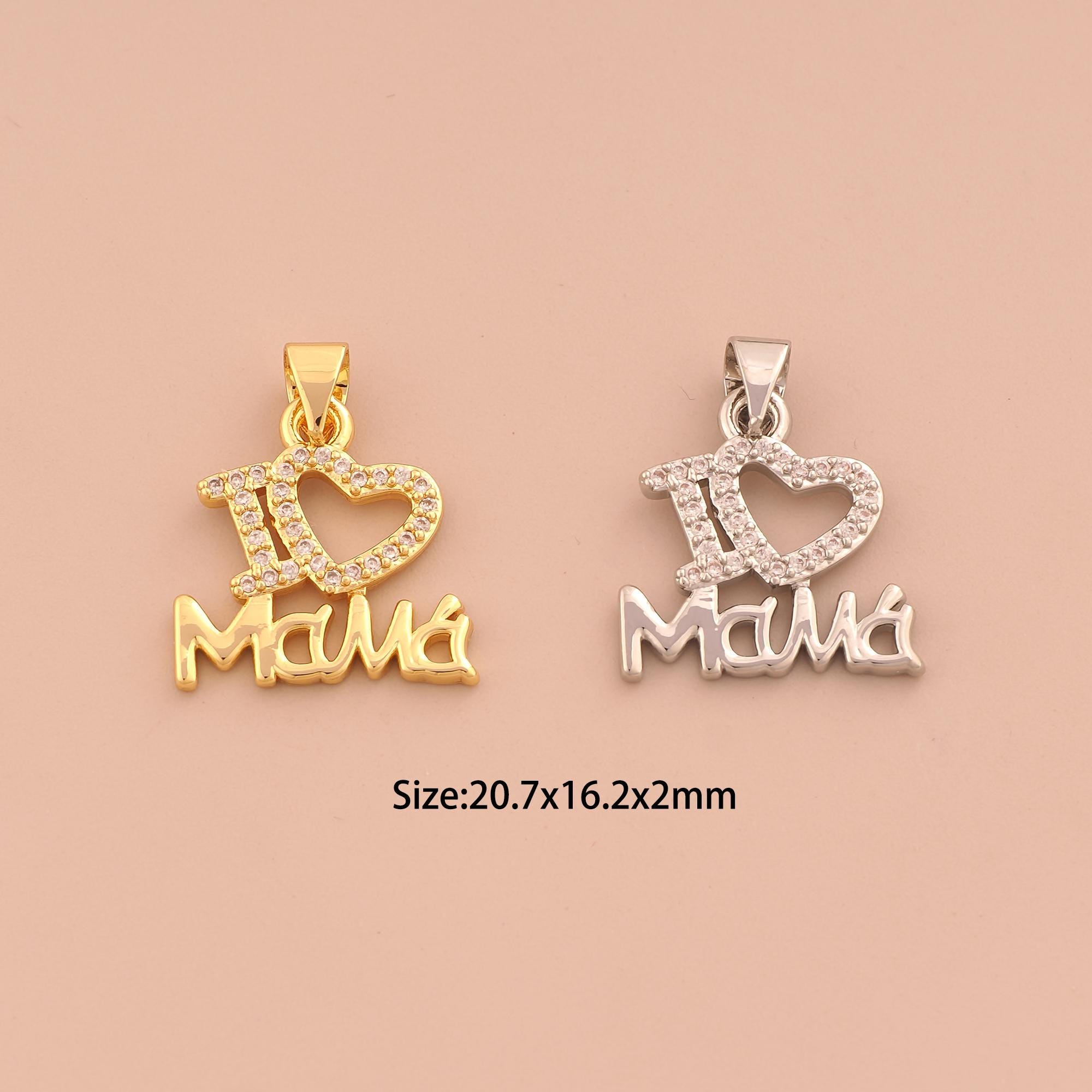 18K Gold I Love MAMA Charms,CZ Pave Heart Charms Pendants,Letter Charm for DIY Jewelry Making Supply