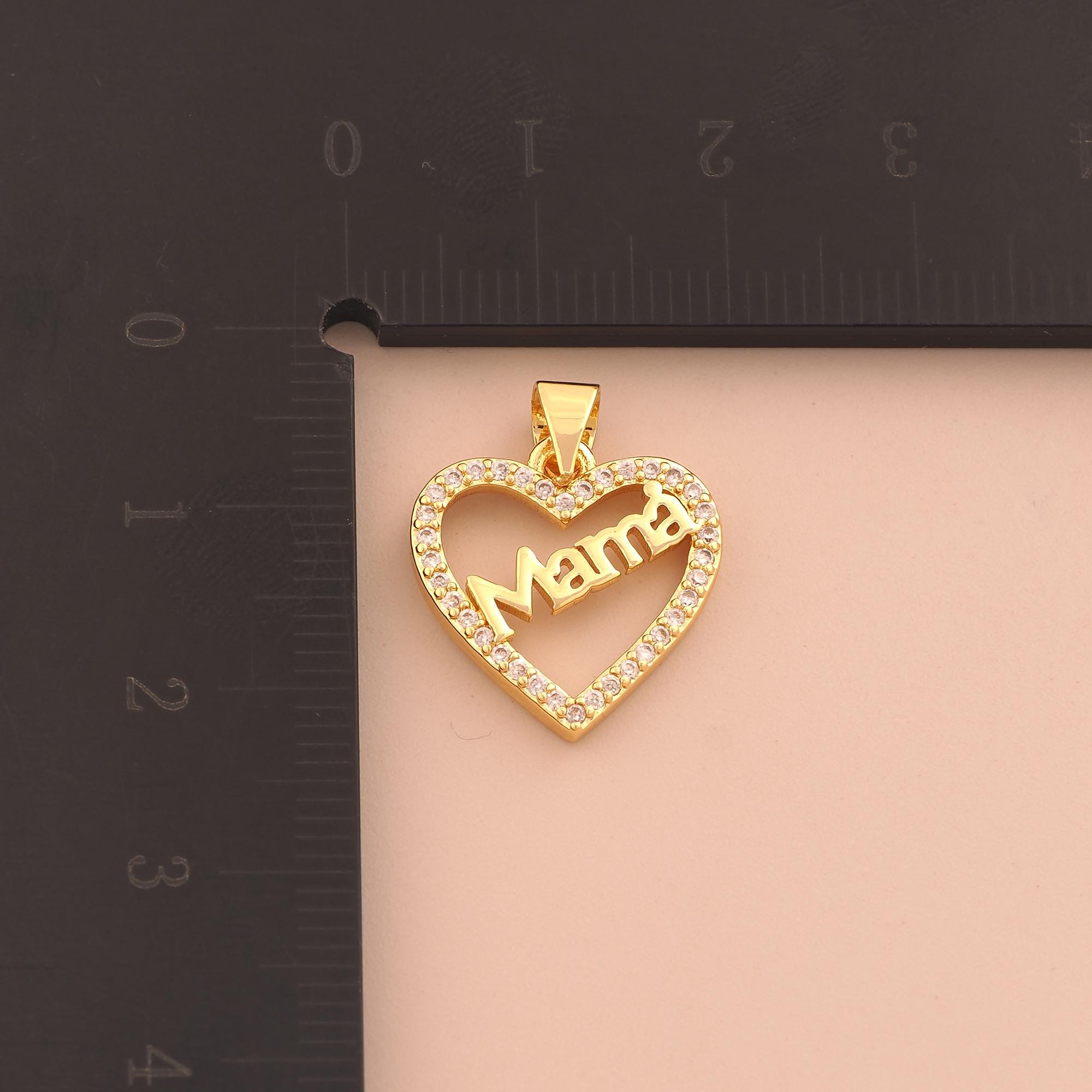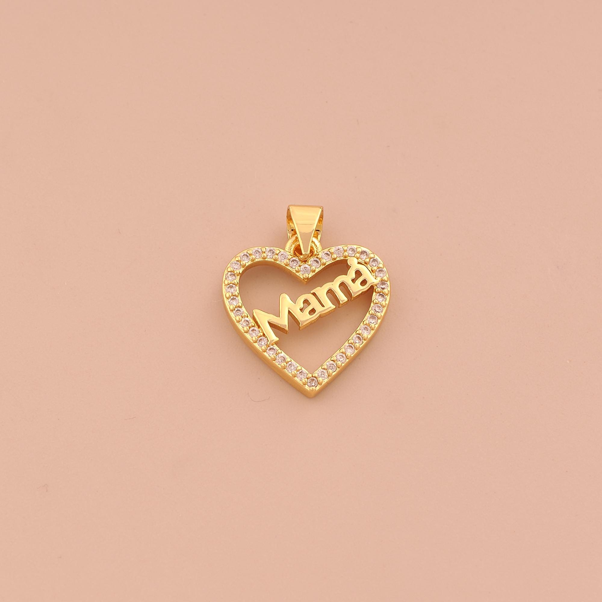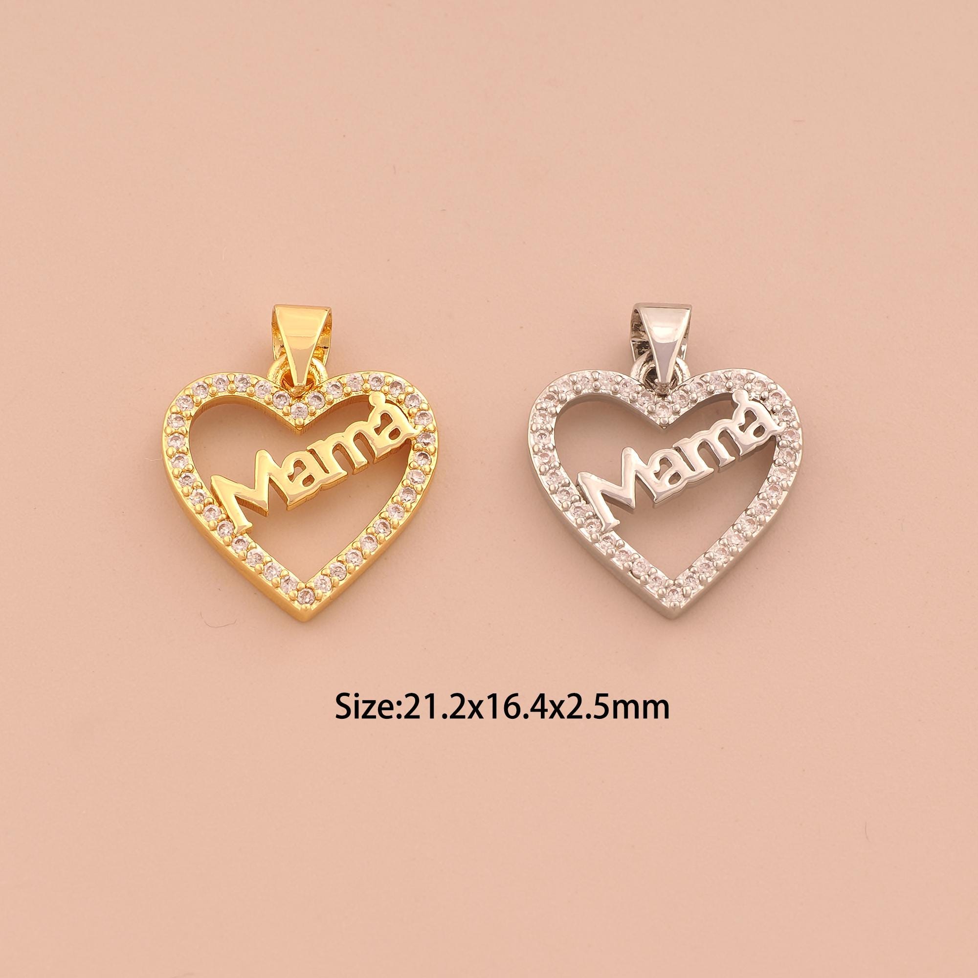 18K Gold MAMA Charms,CZ Pave Heart Charms Pendants,Letter Charm for DIY Jewelry Making Supply