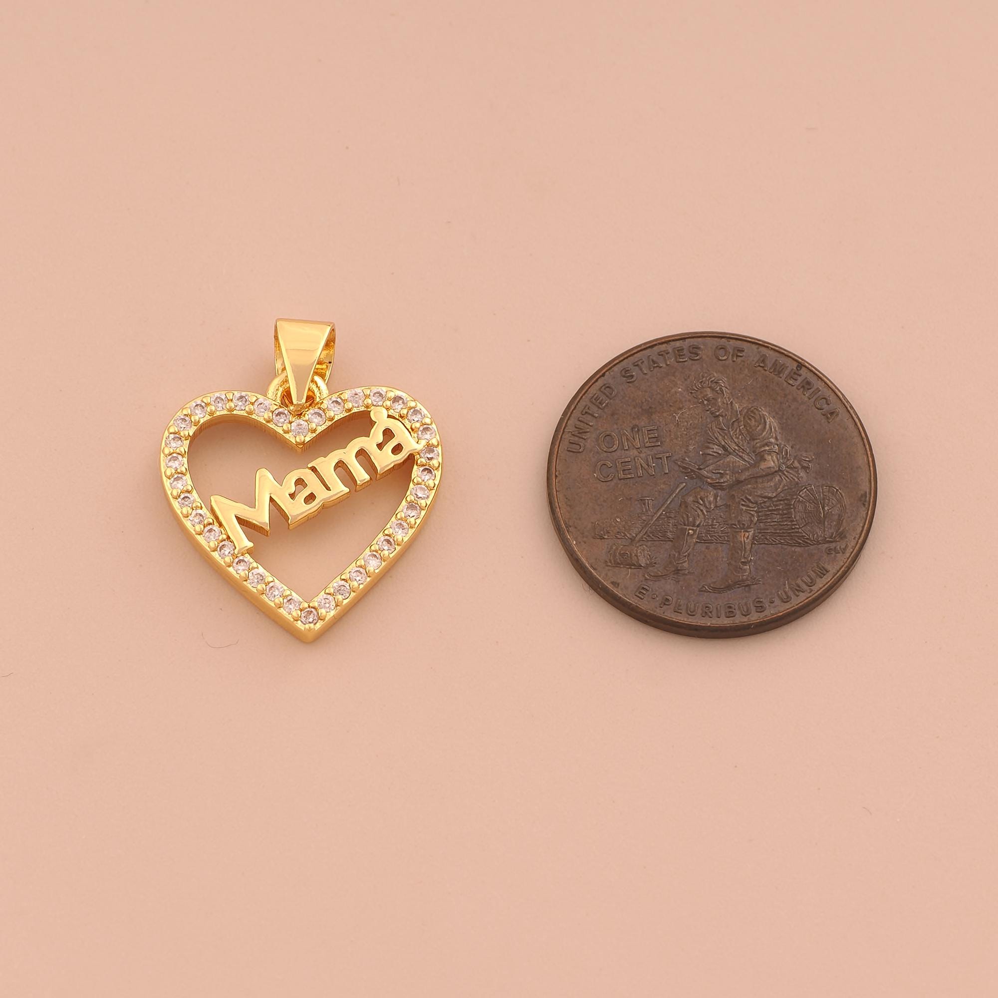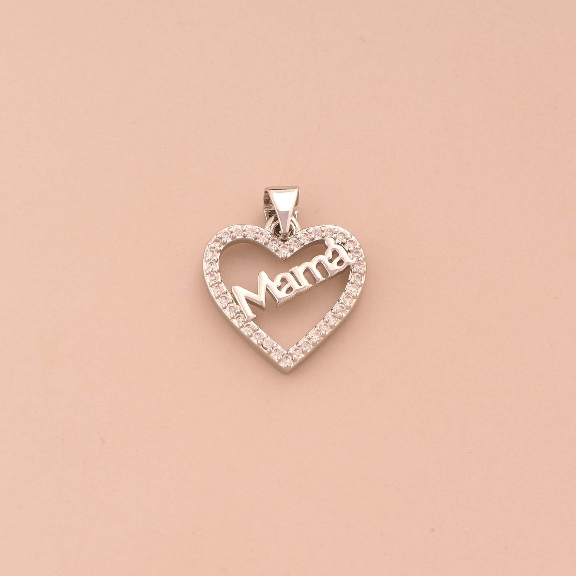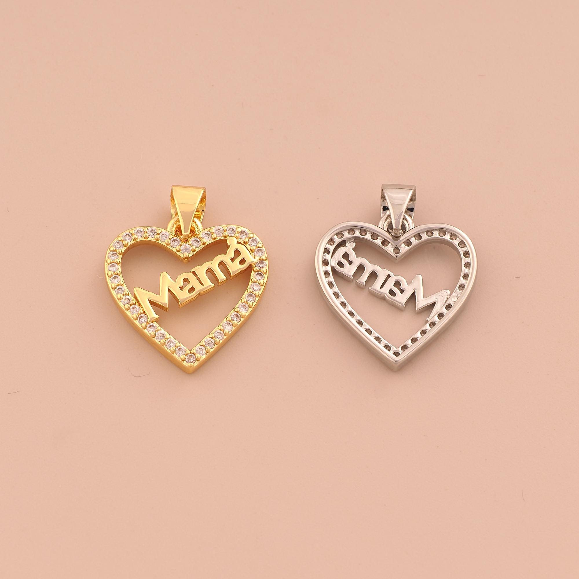 18K Gold MAMA Charms,CZ Pave Heart Charms Pendants,Letter Charm for DIY Jewelry Making Supply